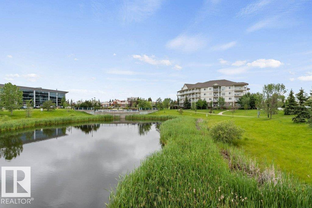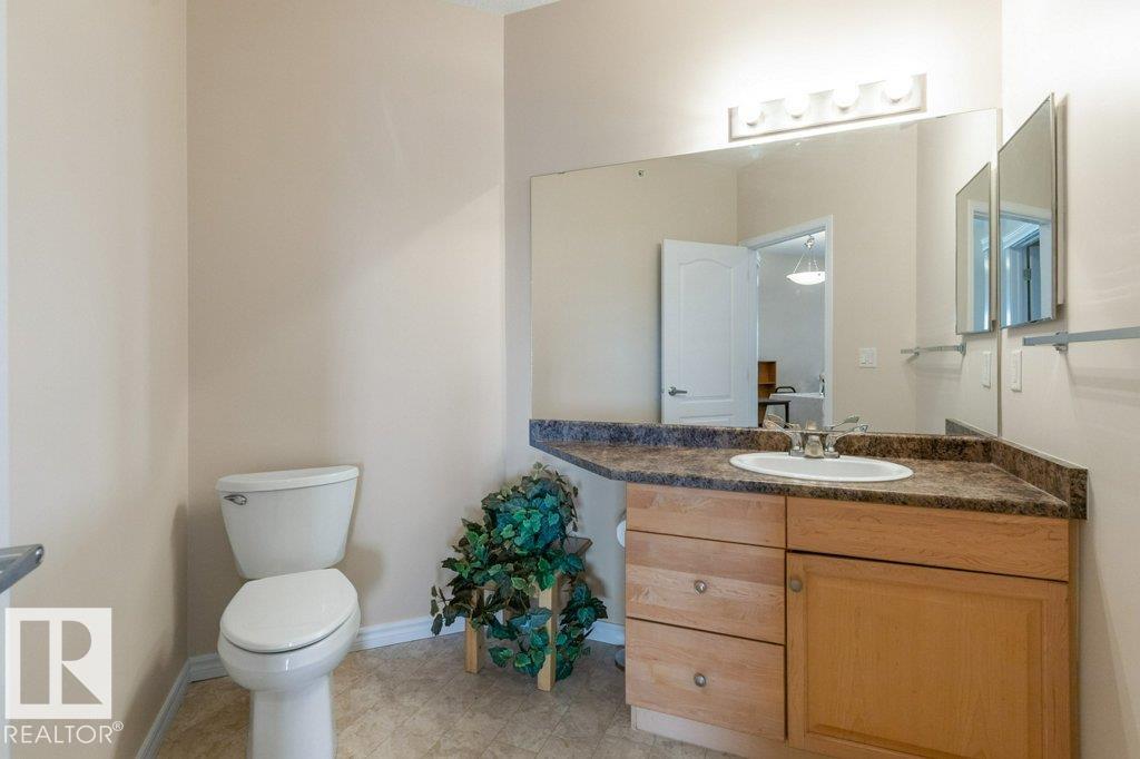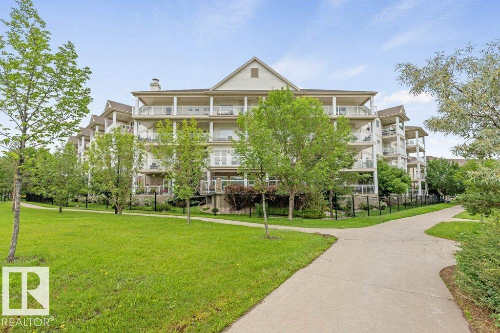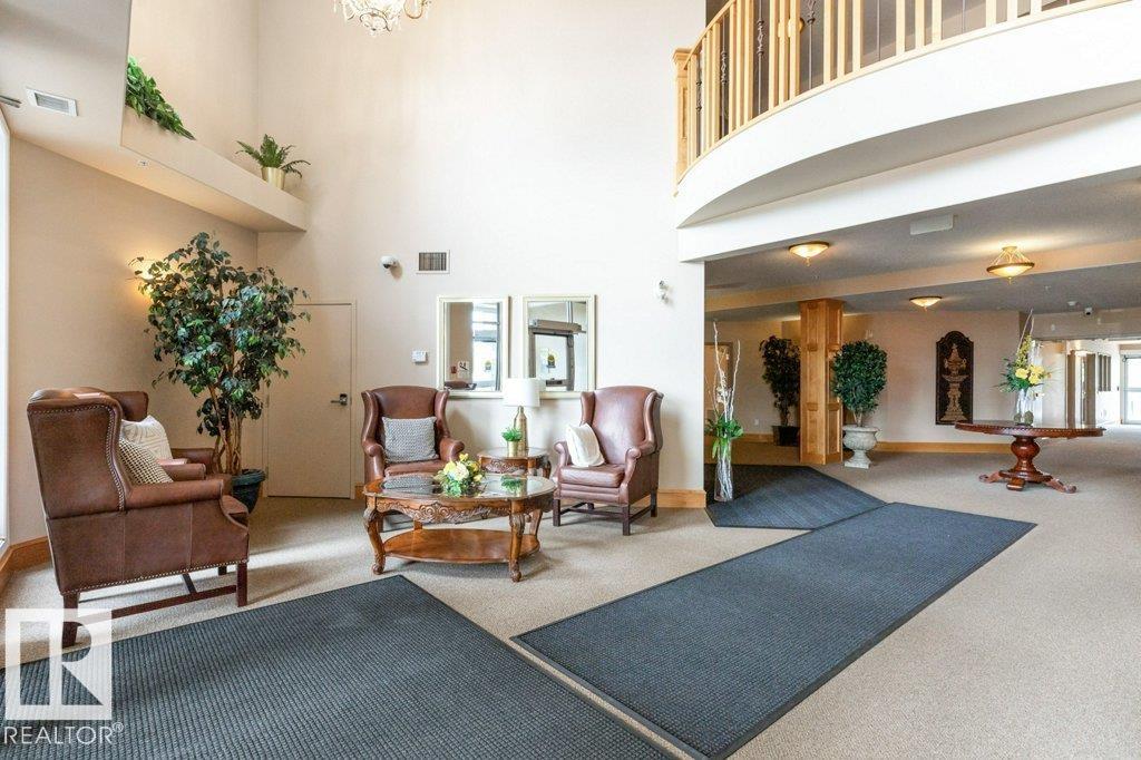 Looking to downsize into a premier ADULT 55+ building in SE Edmonton? If so, consider this spacious, 894 sq/ft, 1-bedroom plus den/bedroom, 1.5-bath home with central A/C in The Estates at Lakeside! This Top-Floor home features an open-concept kitchen, dining, & living room floor plan. The kitchen offers ample storage & counter space, along with a convenient breakfast bar. The dining room provides space for a table & hutch, & the living area can be configured to your preferences. The primary bedroom is well-sized and includes a full en-suite bath with a separate tub & shower. The 2nd bedroom/den can accommodate a queen bed, & there is a guest suite available for owners. Enjoy direct access to a large balcony from the living room. Laundry facilities are conveniently located off the two-piece bath. The home has been recently updated with new flooring throughout & fresh paint. Several amenities, including a guest suite, car wash, theatre room, patio & internet caf‚. Please note: No Pet, No Smoking building.