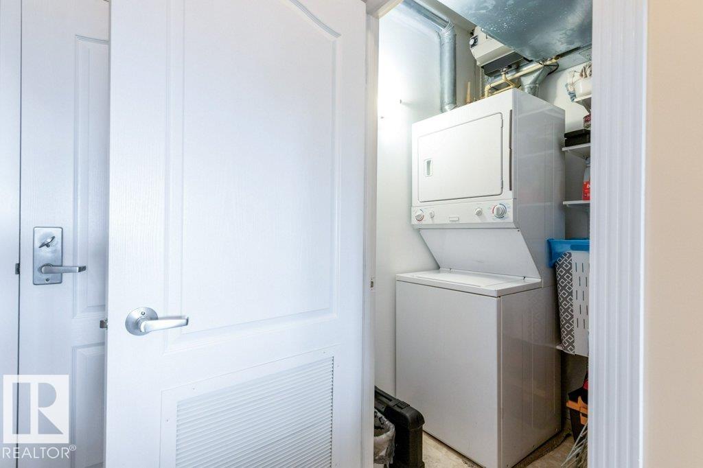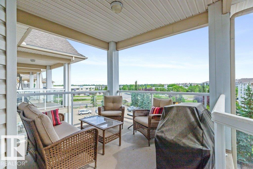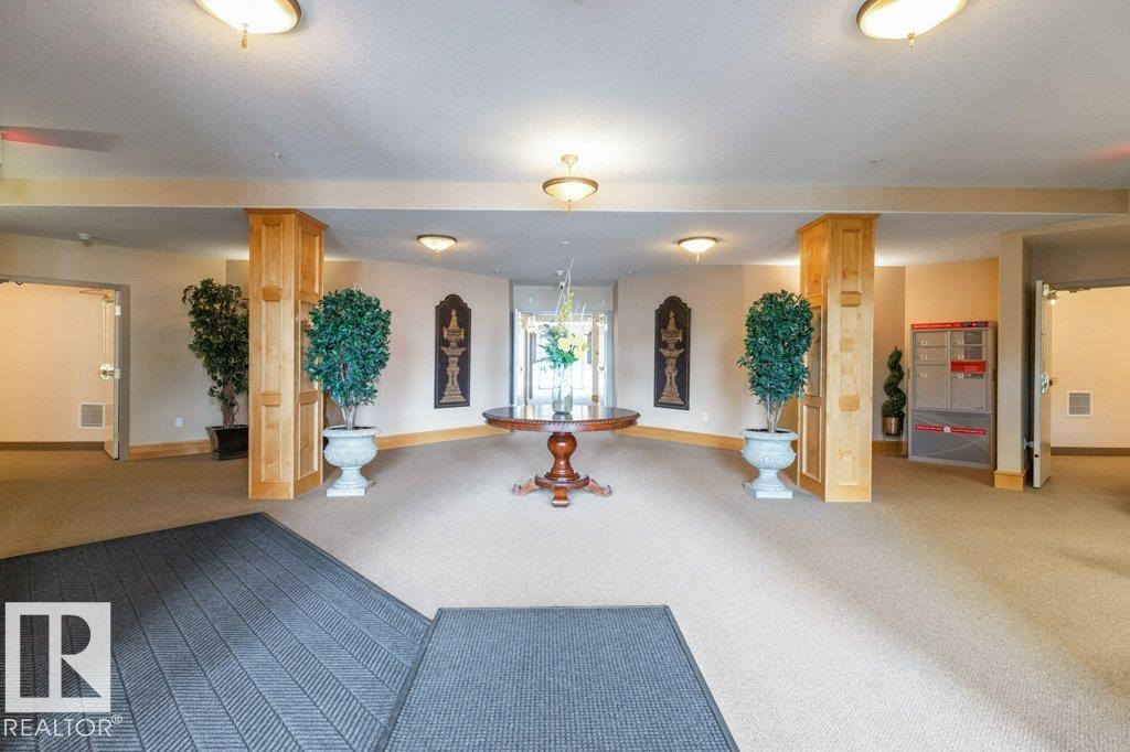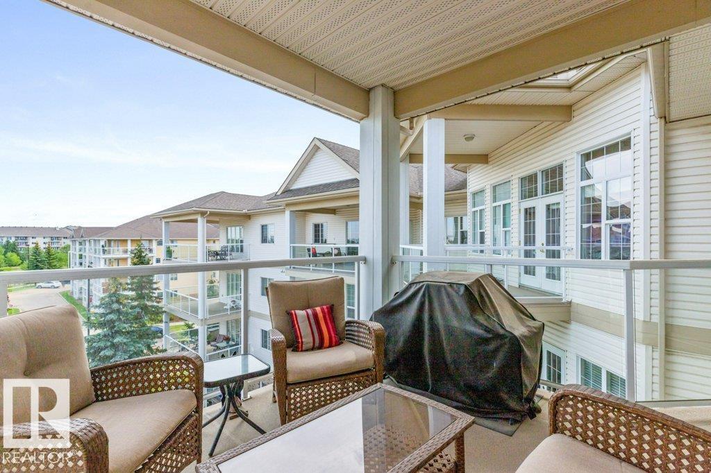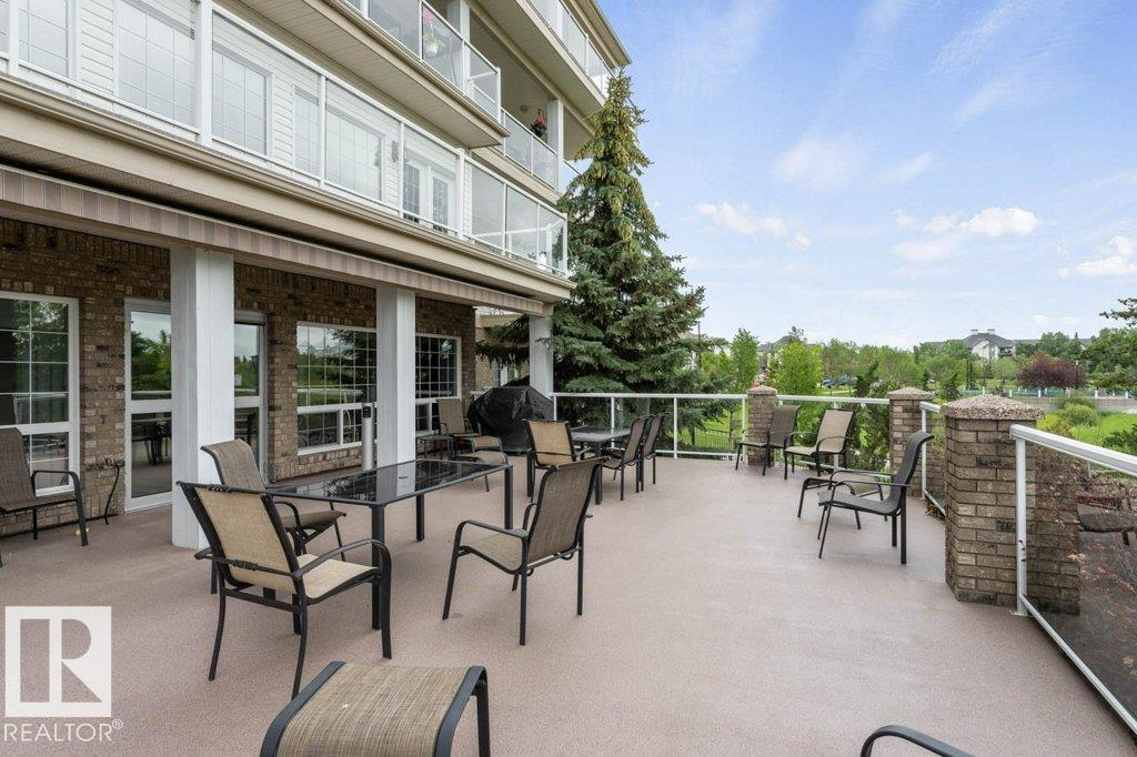 Looking to downsize into a premier ADULT 55+ building in SE Edmonton? If so, consider this spacious, 894 sq/ft, 1-bedroom plus den/bedroom, 1.5-bath home with central A/C in The Estates at Lakeside! This Top-Floor home features an open-concept kitchen, dining, & living room floor plan. The kitchen offers ample storage & counter space, along with a convenient breakfast bar. The dining room provides space for a table & hutch, & the living area can be configured to your preferences. The primary bedroom is well-sized and includes a full en-suite bath with a separate tub & shower. The 2nd bedroom/den can accommodate a queen bed, & there is a guest suite available for owners. Enjoy direct access to a large balcony from the living room. Laundry facilities are conveniently located off the two-piece bath. The home has been recently updated with new flooring throughout & fresh paint. Several amenities, including a guest suite, car wash, theatre room, patio & internet caf‚. Please note: No Pet, No Smoking building.