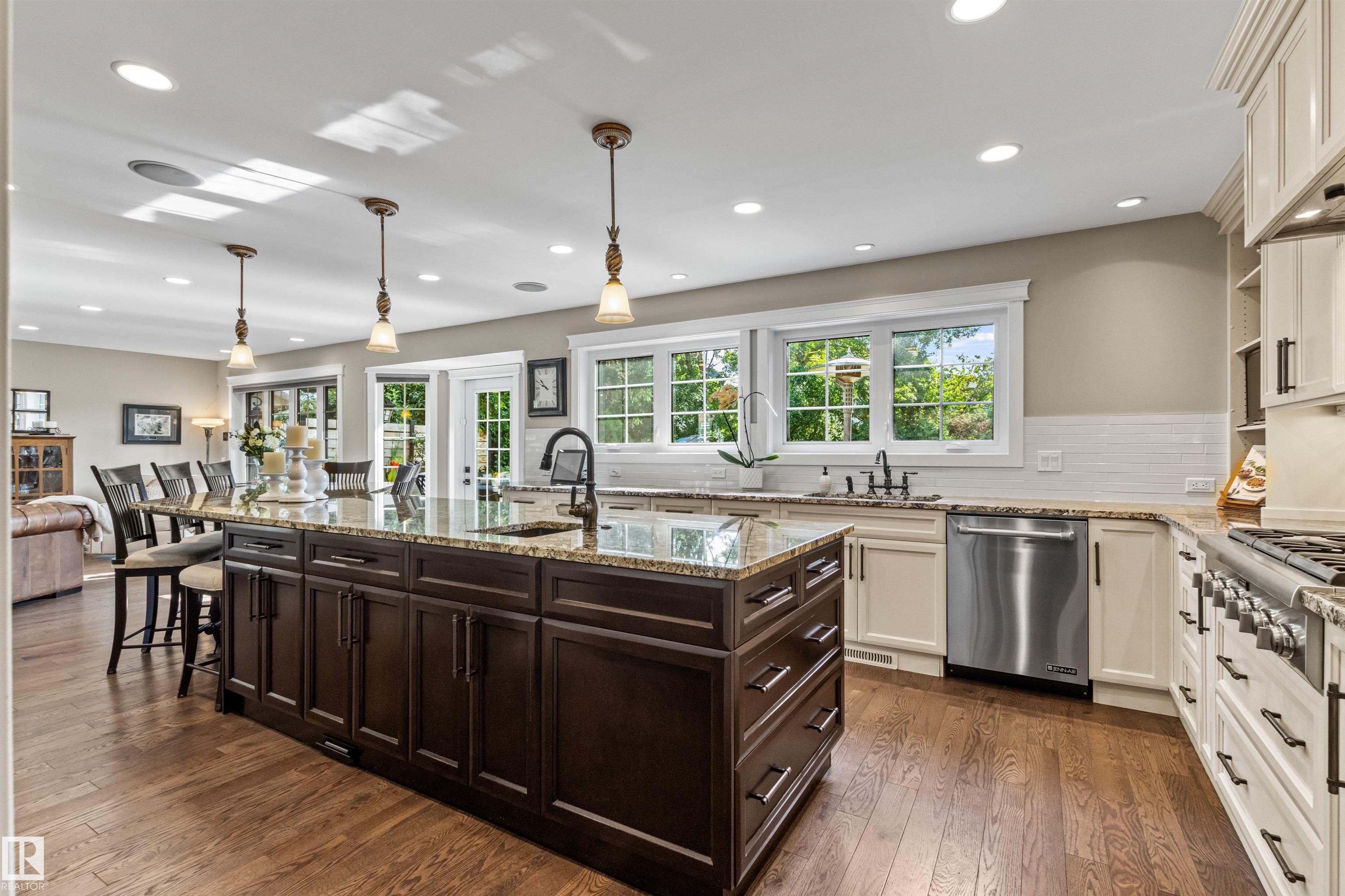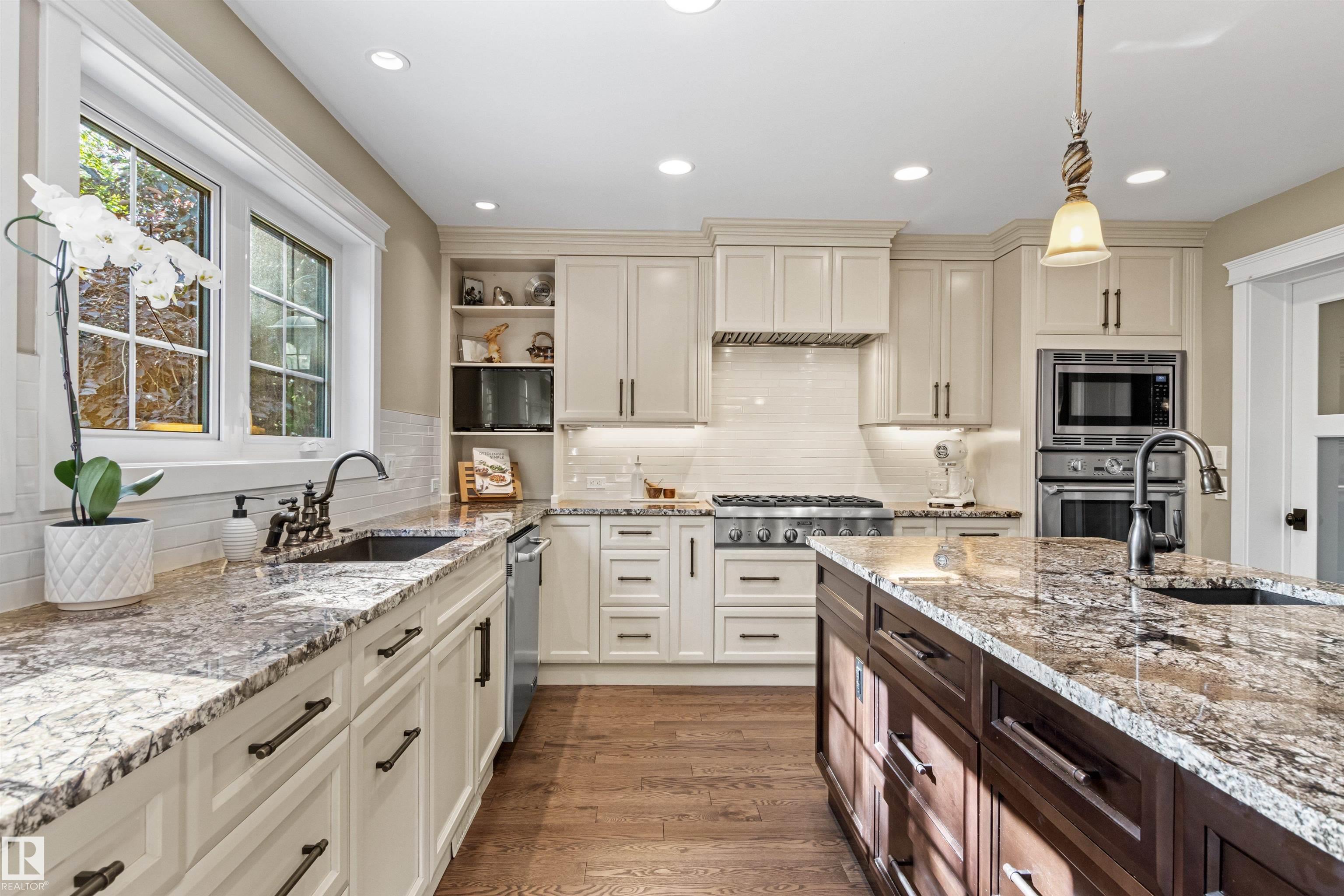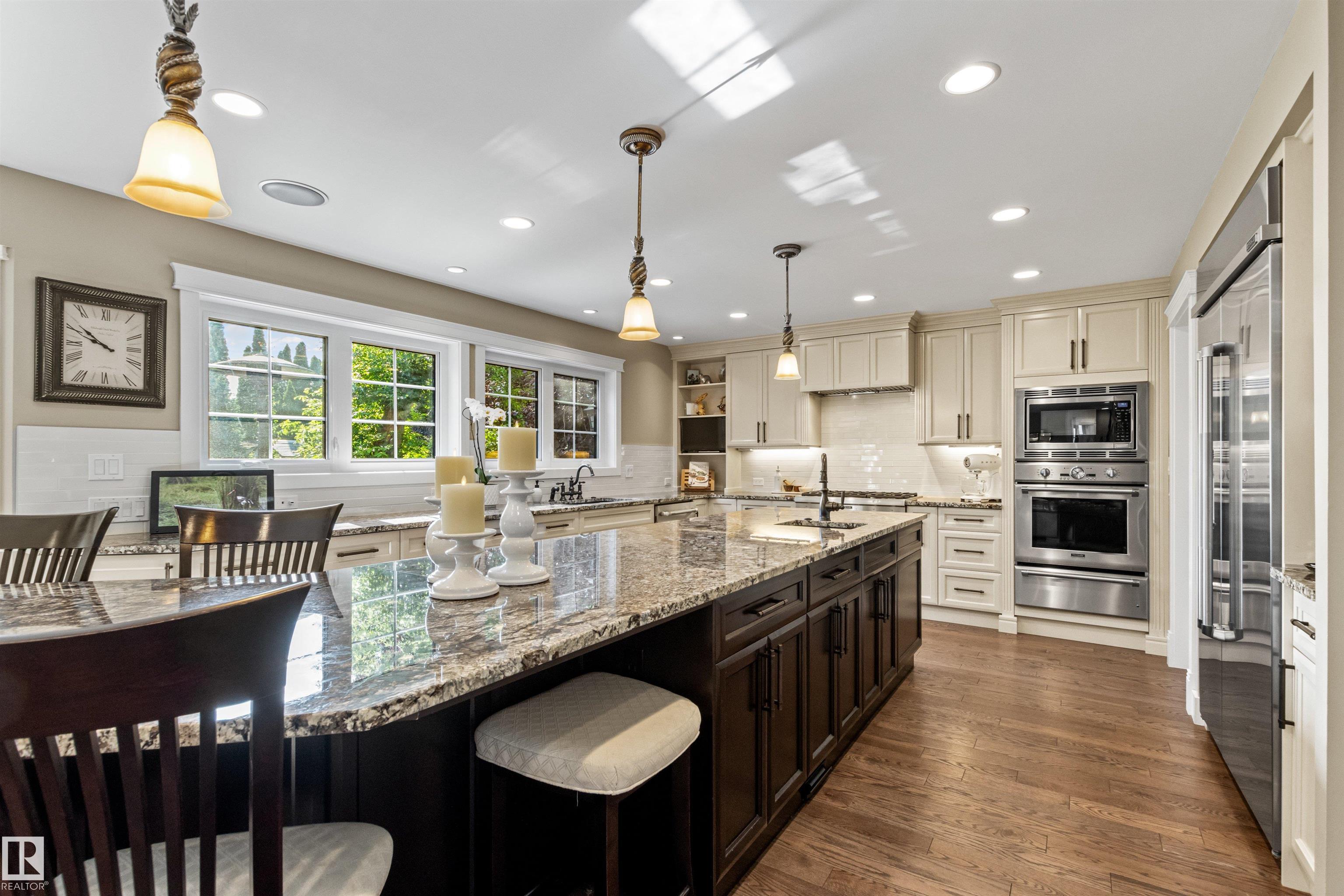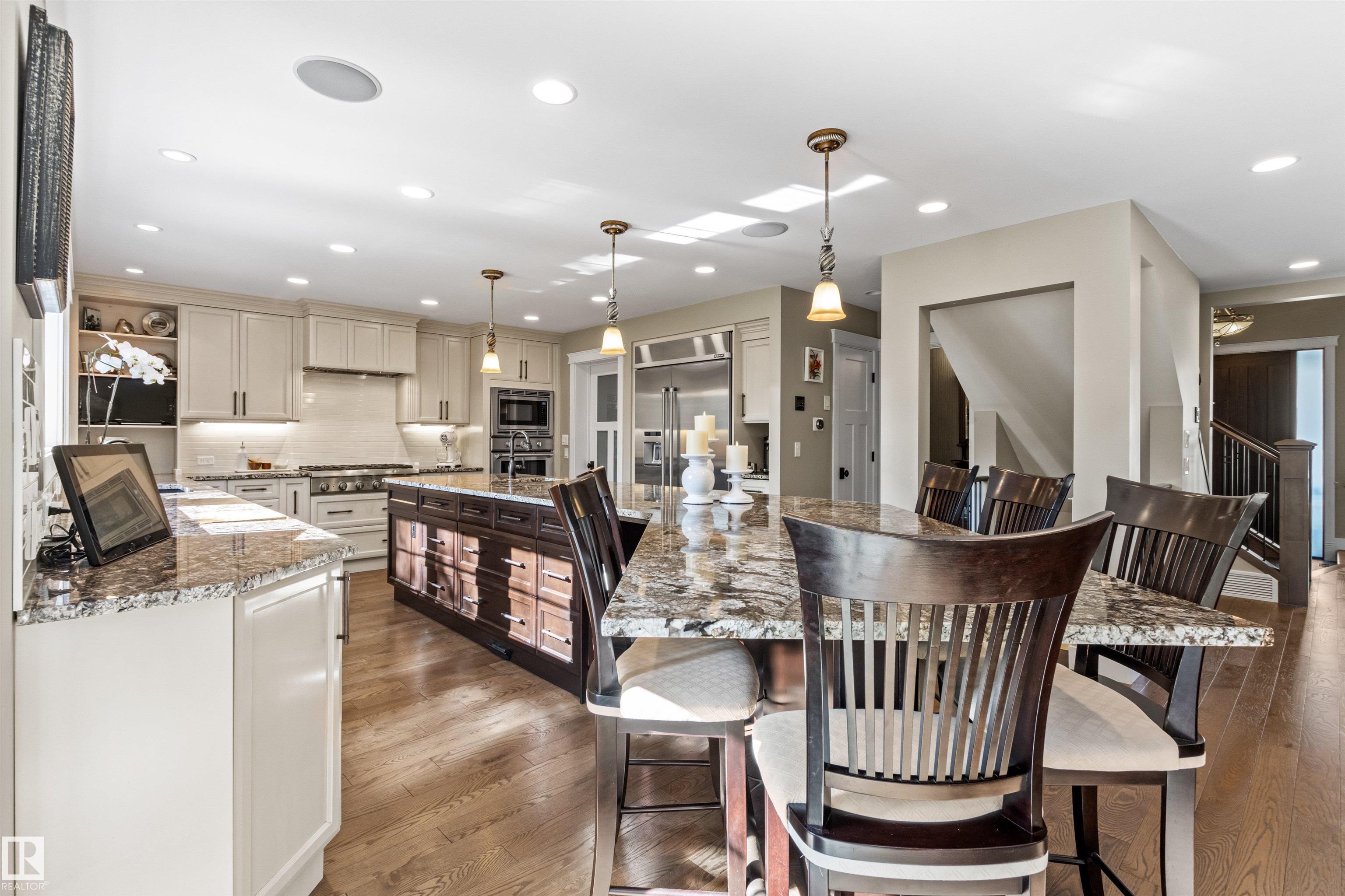 Ideally located just steps from Wolf Willow Ravine and Country Club Golf Community,this stunning two-storey home offers over 3,300 sq ft of total living space that has been completely renovated from top to bottom. The gorgeous stone exterior & beautifully manicured landscaping create instant curb appeal. Inside, you'll find a light-filled open-concept main floor anchored by a showpiece kitchen w/ granite counters, high-end appliances & large 17' island. The spacious living room features a stone fireplace & seamless access to the backyard, perfect for indoor-outdoor entertaining. Upstairs, the expansive primary suite includes a walk-in closet & luxurious ensuite w/ freestanding soaker tub, heated floors & travertine steam shower. Two additional bdrms, a full bath & dedicated laundry room complete this level. The professionally finished basement includes a gym area, rec room, bdrm & full bath. From elegant finishes to practical design, this home offers a blend of outdoor natural beauty and upscale living.