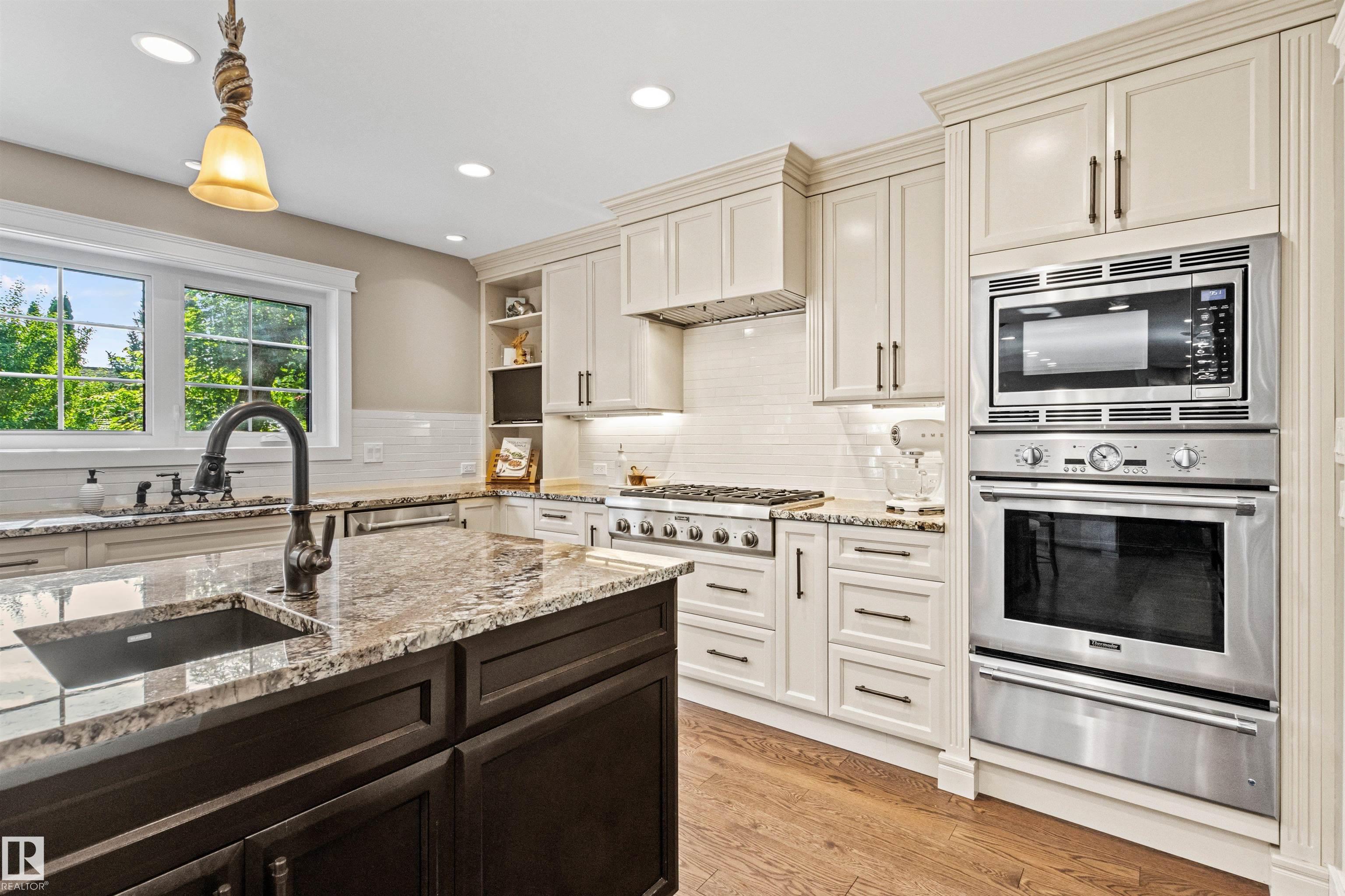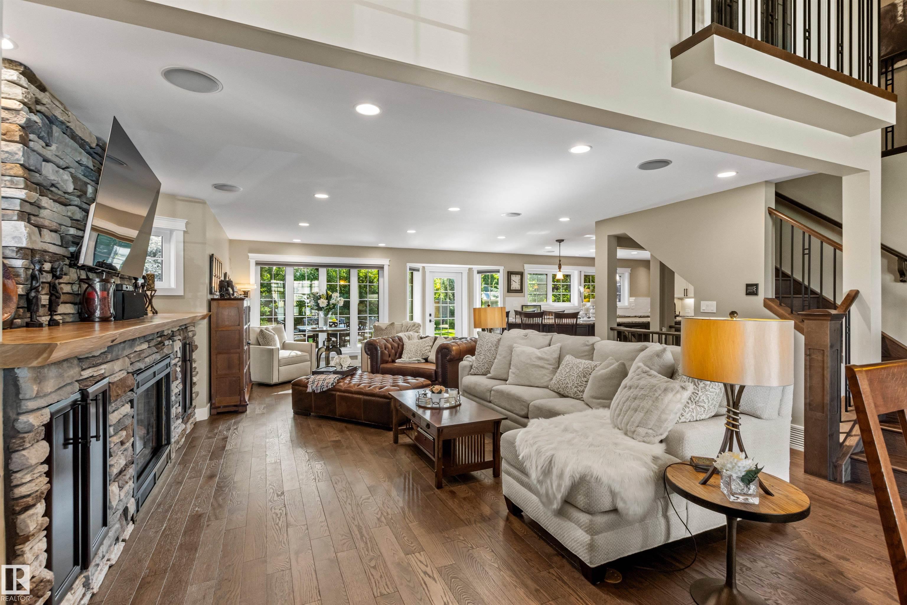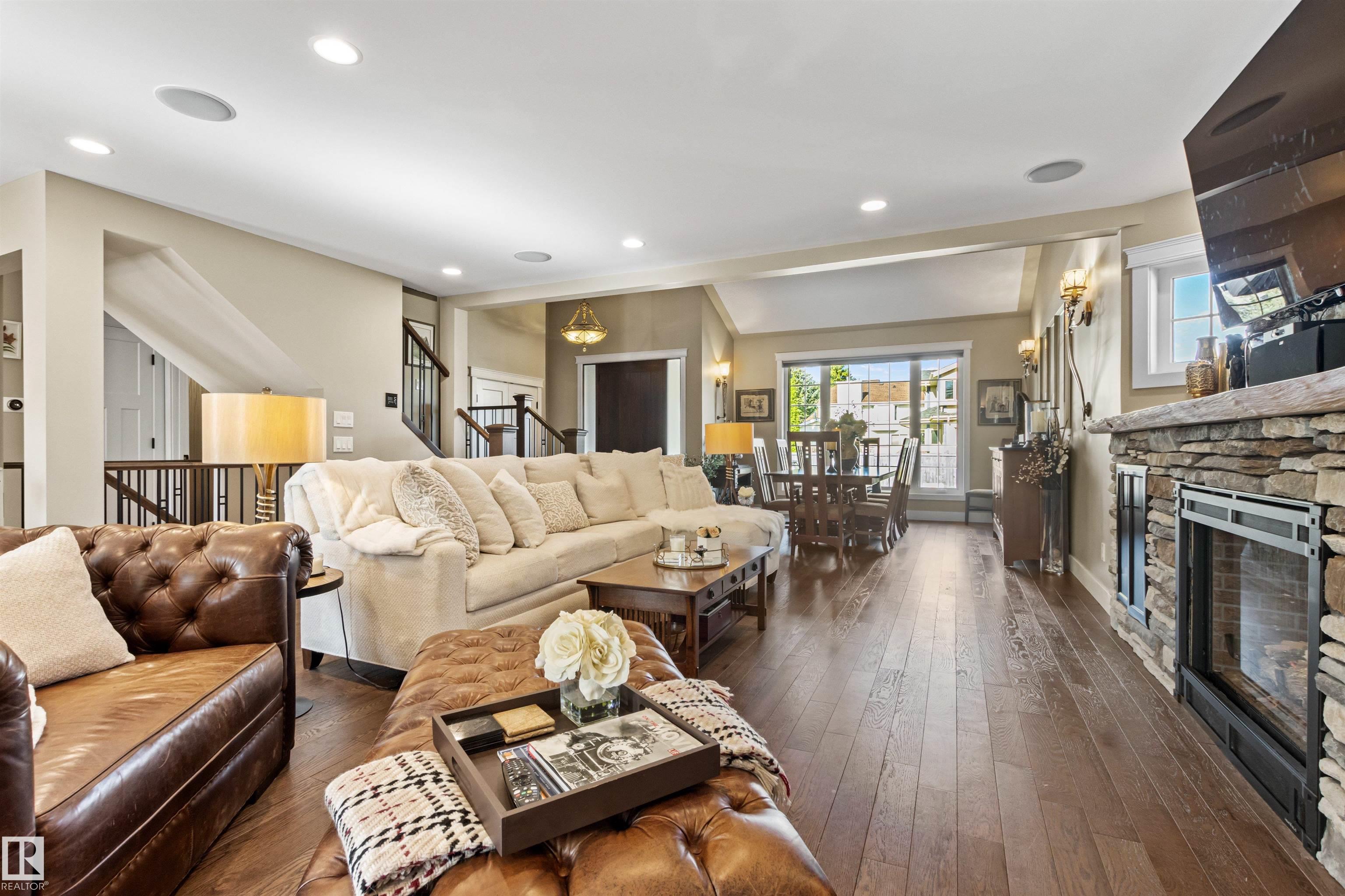 Ideally located just steps from Wolf Willow Ravine and Country Club Golf Community,this stunning two-storey home offers over 3,300 sq ft of total living space that has been completely renovated from top to bottom. The gorgeous stone exterior & beautifully manicured landscaping create instant curb appeal. Inside, you'll find a light-filled open-concept main floor anchored by a showpiece kitchen w/ granite counters, high-end appliances & large 17' island. The spacious living room features a stone fireplace & seamless access to the backyard, perfect for indoor-outdoor entertaining. Upstairs, the expansive primary suite includes a walk-in closet & luxurious ensuite w/ freestanding soaker tub, heated floors & travertine steam shower. Two additional bdrms, a full bath & dedicated laundry room complete this level. The professionally finished basement includes a gym area, rec room, bdrm & full bath. From elegant finishes to practical design, this home offers a blend of outdoor natural beauty and upscale living.