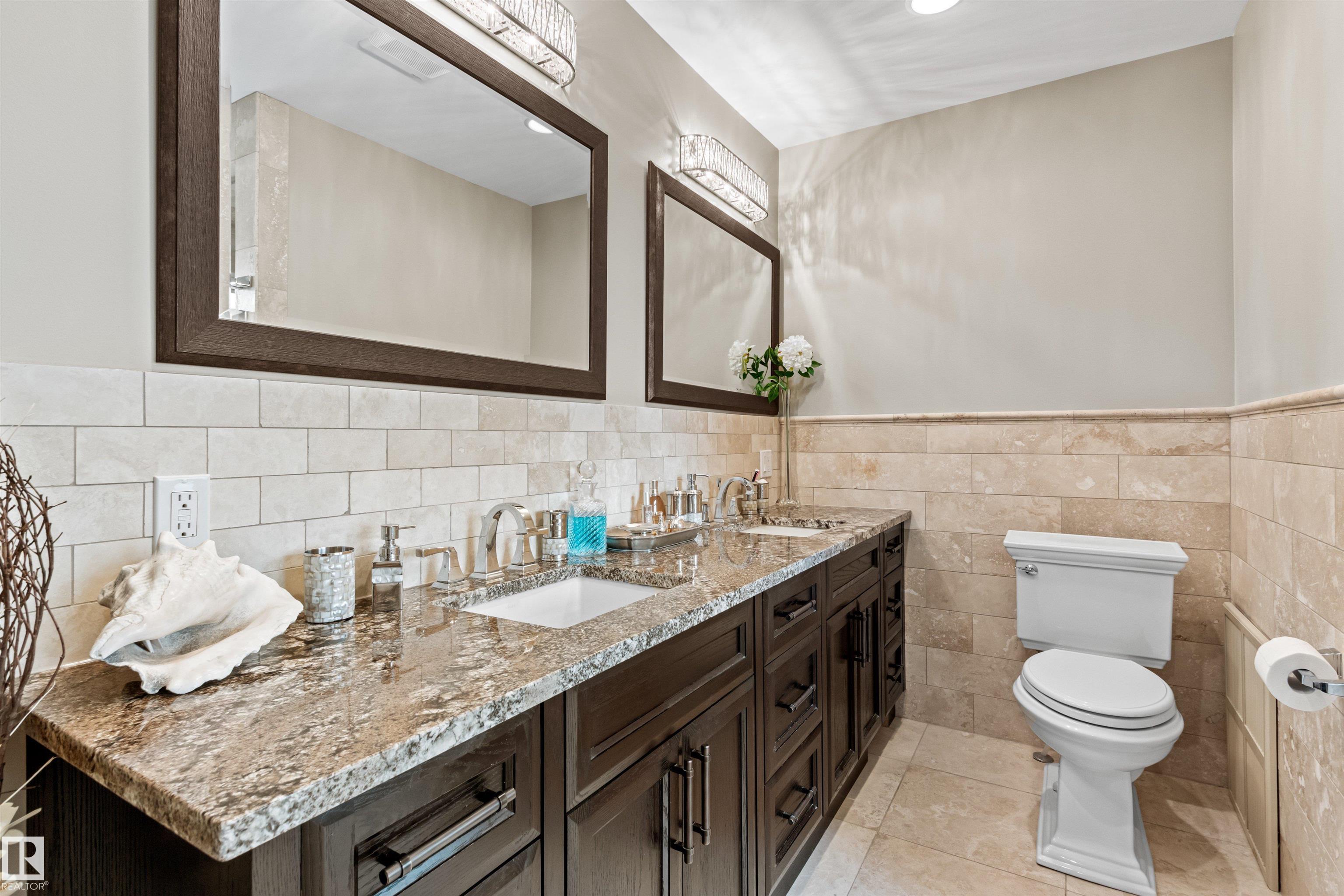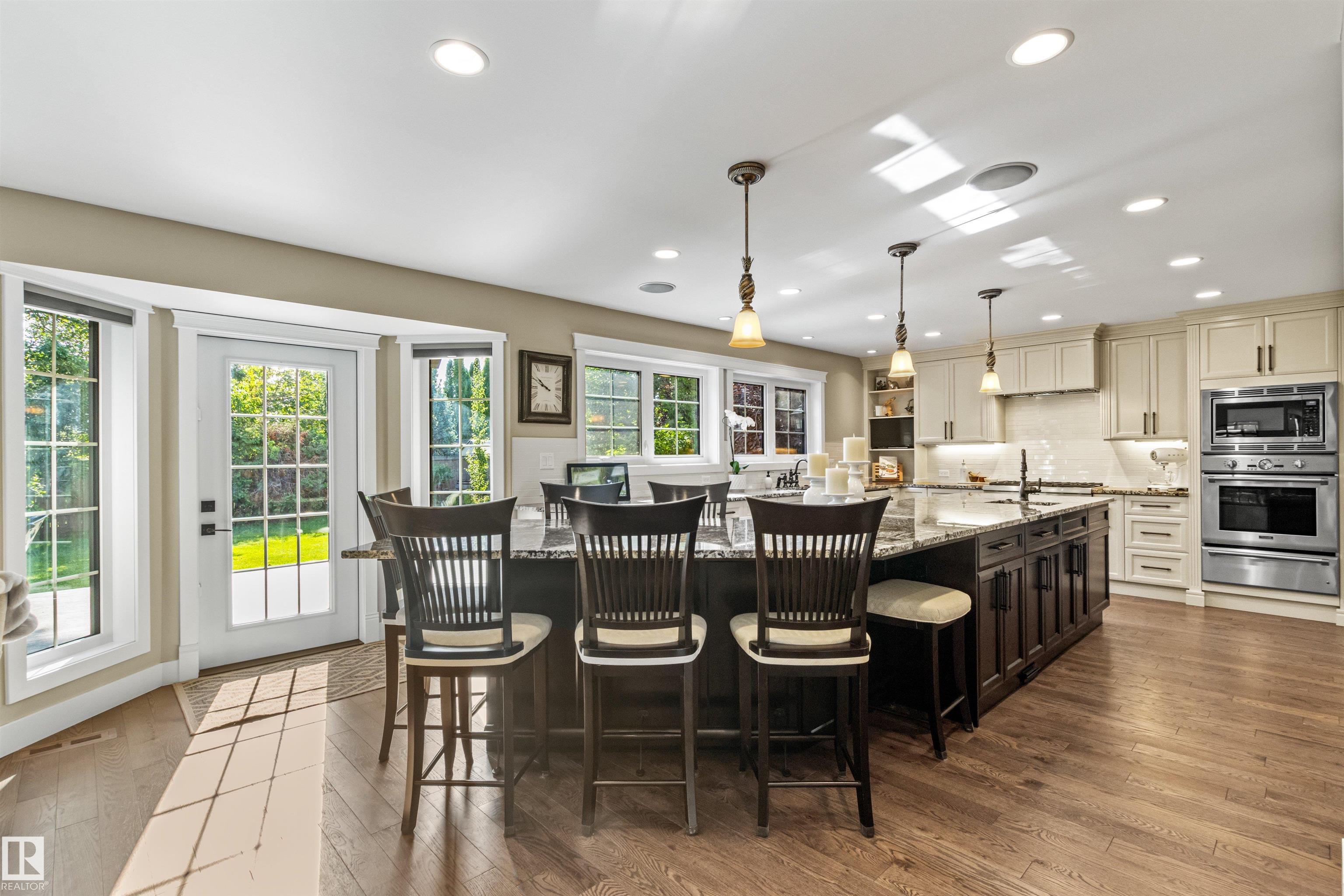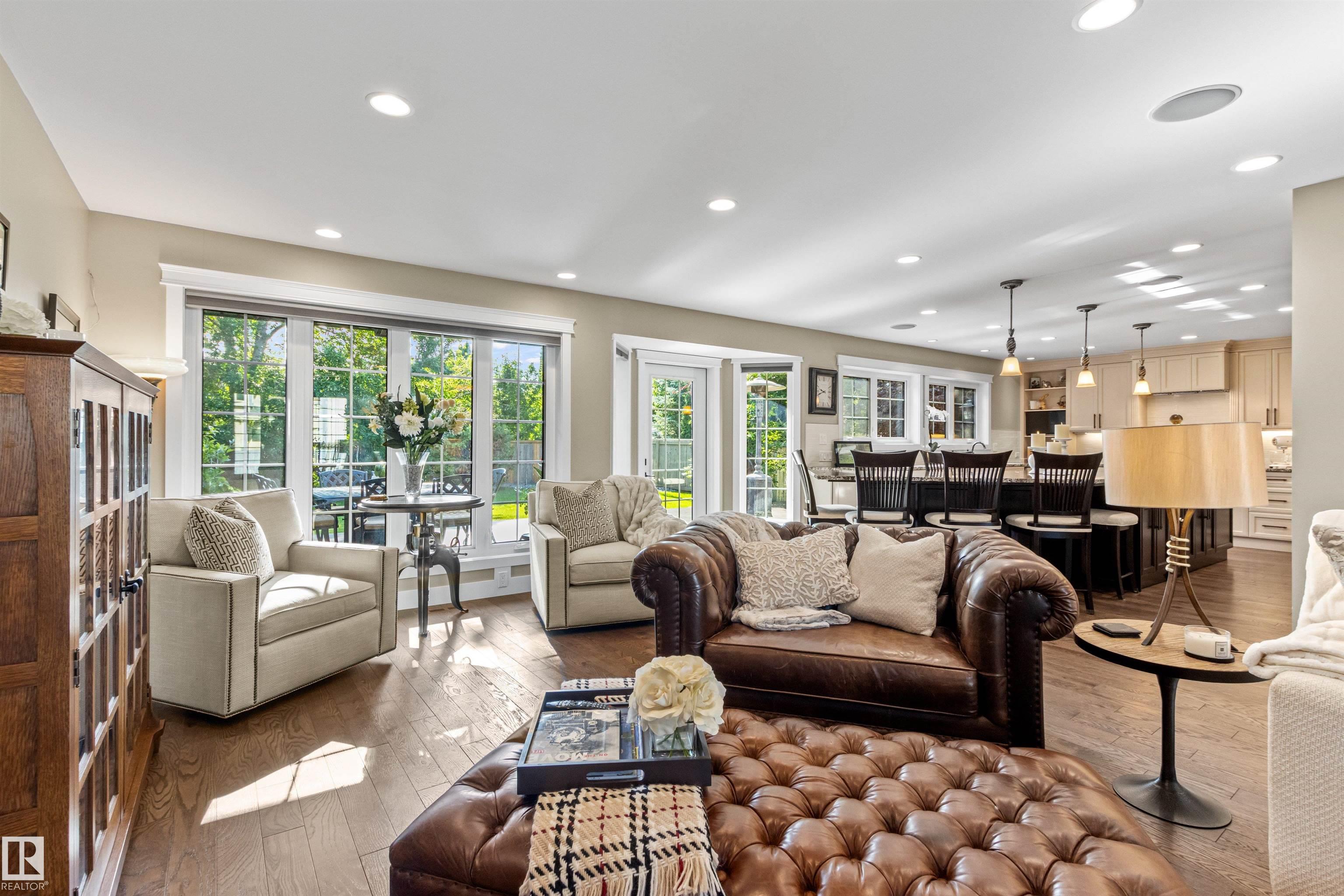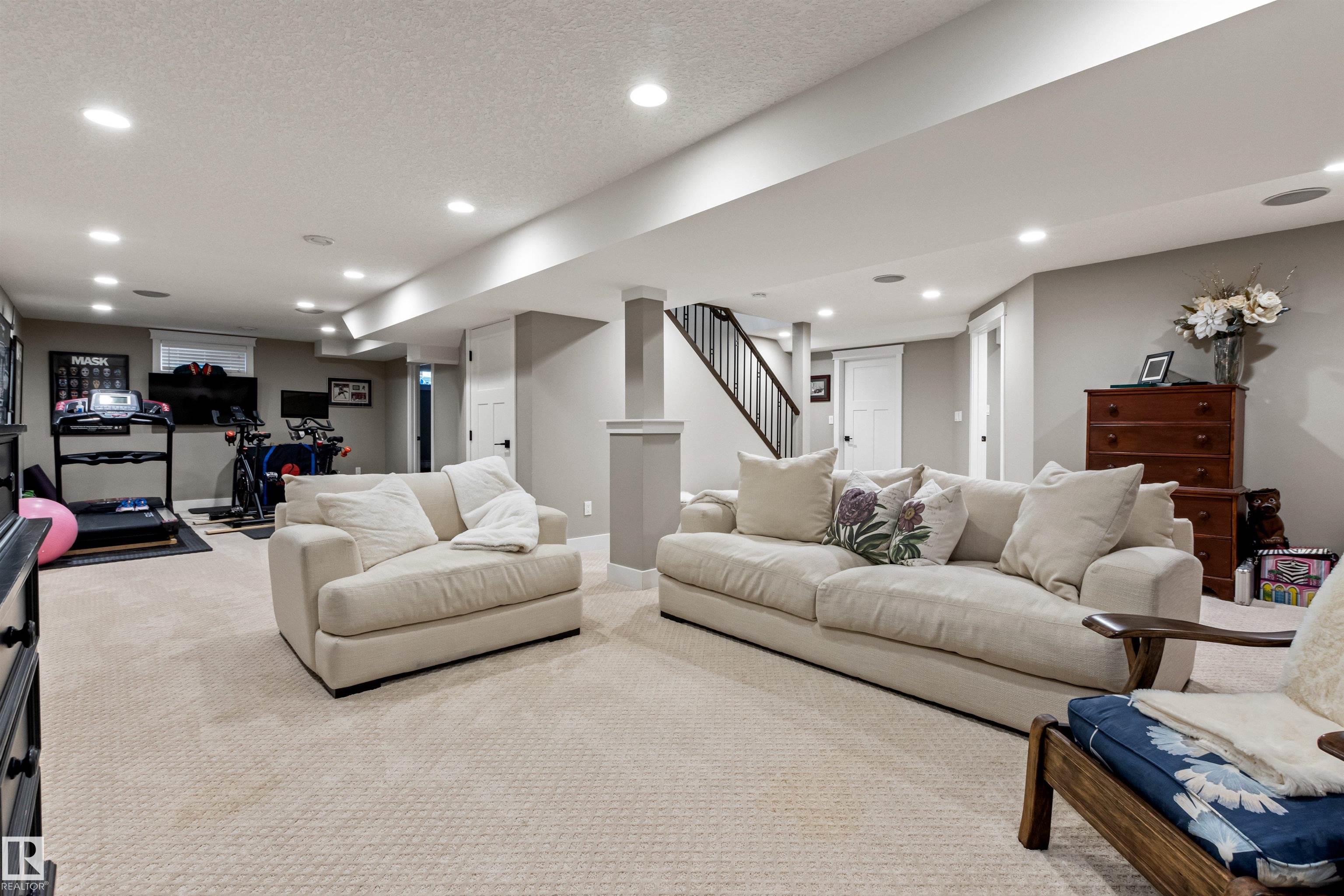 Ideally located just steps from Wolf Willow Ravine and Country Club Golf Community,this stunning two-storey home offers over 3,300 sq ft of total living space that has been completely renovated from top to bottom. The gorgeous stone exterior & beautifully manicured landscaping create instant curb appeal. Inside, you'll find a light-filled open-concept main floor anchored by a showpiece kitchen w/ granite counters, high-end appliances & large 17' island. The spacious living room features a stone fireplace & seamless access to the backyard, perfect for indoor-outdoor entertaining. Upstairs, the expansive primary suite includes a walk-in closet & luxurious ensuite w/ freestanding soaker tub, heated floors & travertine steam shower. Two additional bdrms, a full bath & dedicated laundry room complete this level. The professionally finished basement includes a gym area, rec room, bdrm & full bath. From elegant finishes to practical design, this home offers a blend of outdoor natural beauty and upscale living.