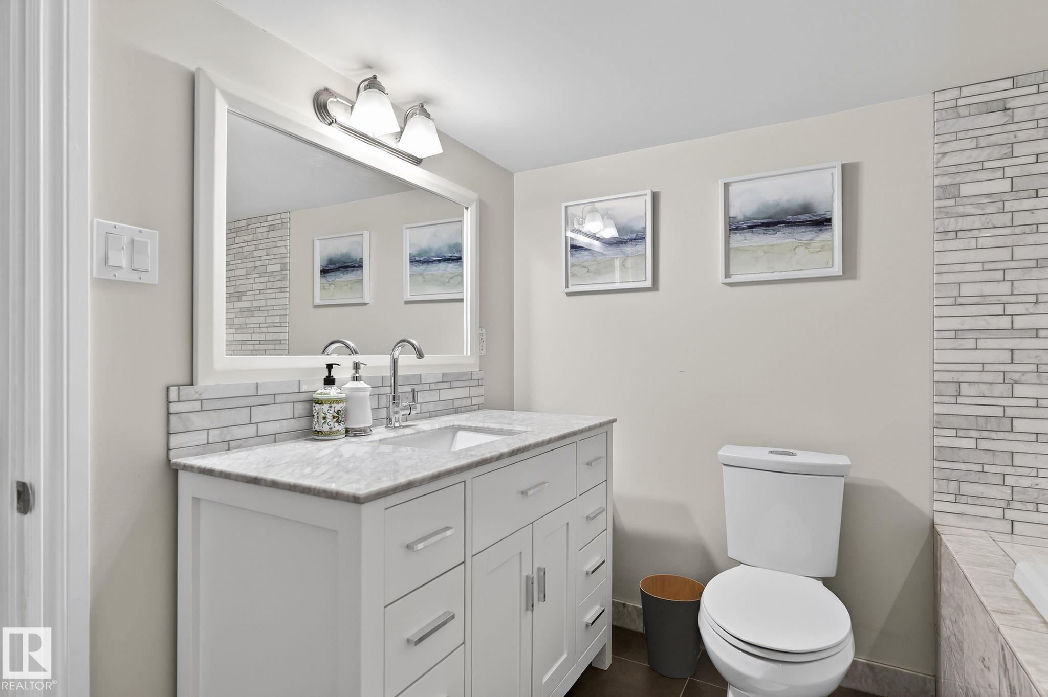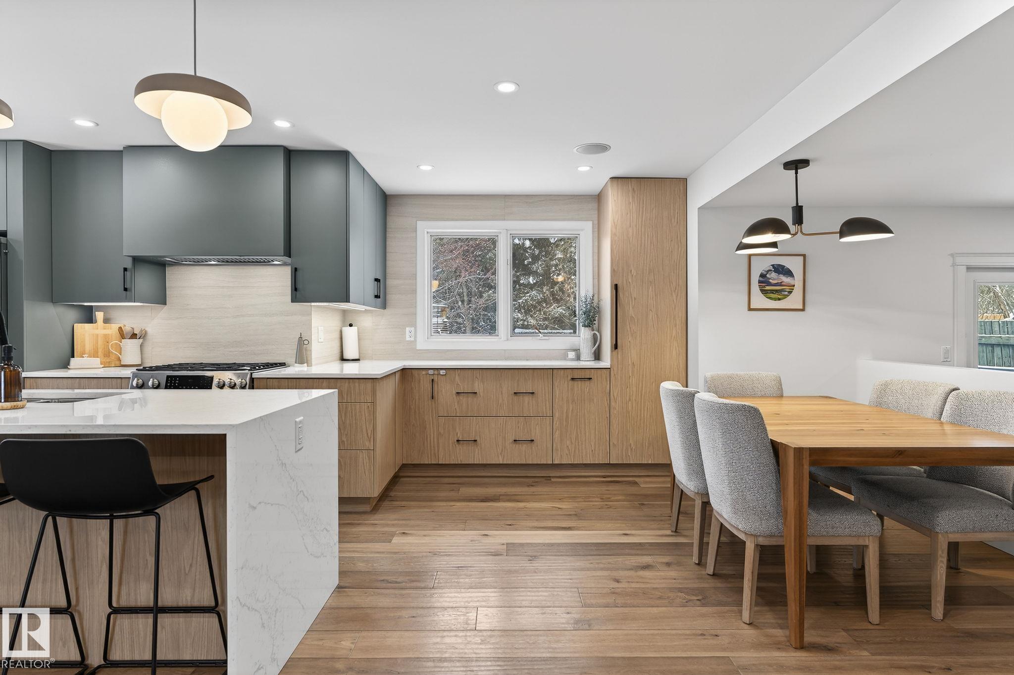 Rarely does a gem like this come available in the highly sought-after Country Club/Wolf Willow community! This extensively renovated 4-bedroom 3.5 bath home offers over 2100sqft of stylish, move-in-ready living. A 2023 main floor Professional Renovation transformed it to Open Concept w/ White Oak Hardwood, Custom Cabinetry from Essence Cabinets, Quartz waterfall island, Lighting & Premium Bosch Appliances incl Gas Range. A finished basement w/ rec space, wet-bar & spa. The MASSIVE Private & Sunny South-West backyard retreat, mature trees & landscaping create a spectacular space to relax or entertain. Major upgrades: NEW SHINGLES(2020), NEW HIGH EFF FURNACES (2016) & AIR CONDITIONER, NEW GAS FIREPLACE (2021), NEW COMPOSITE DECK & Pressure-treated FENCE & GAS BBQ LINE, Built-In Speakers. Turnkey living, the perfect place to call home, enjoy w/ family & friends steps from ravine trails, parks, tennis/pickleball courts, skating rinks & more, this is your chance to live in one of Edmonton's finest communities.