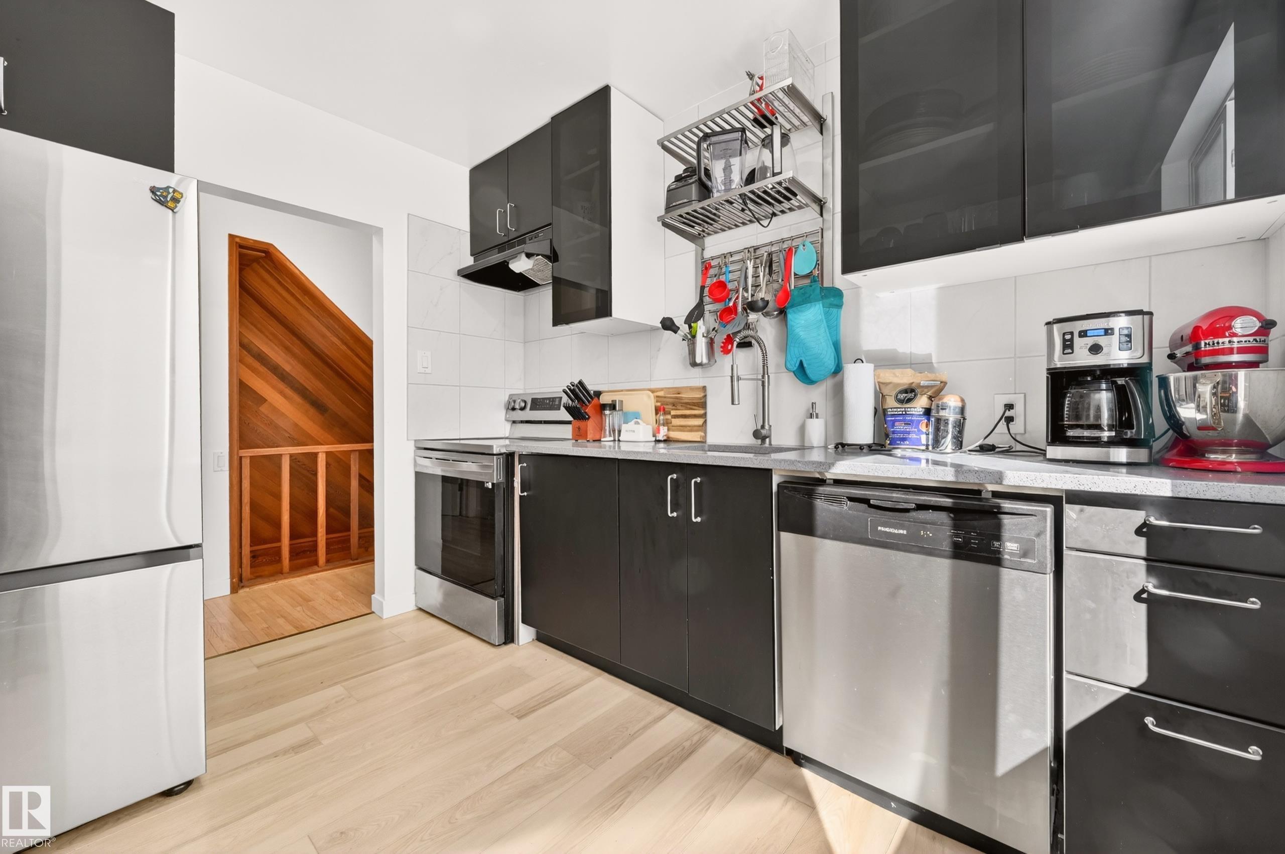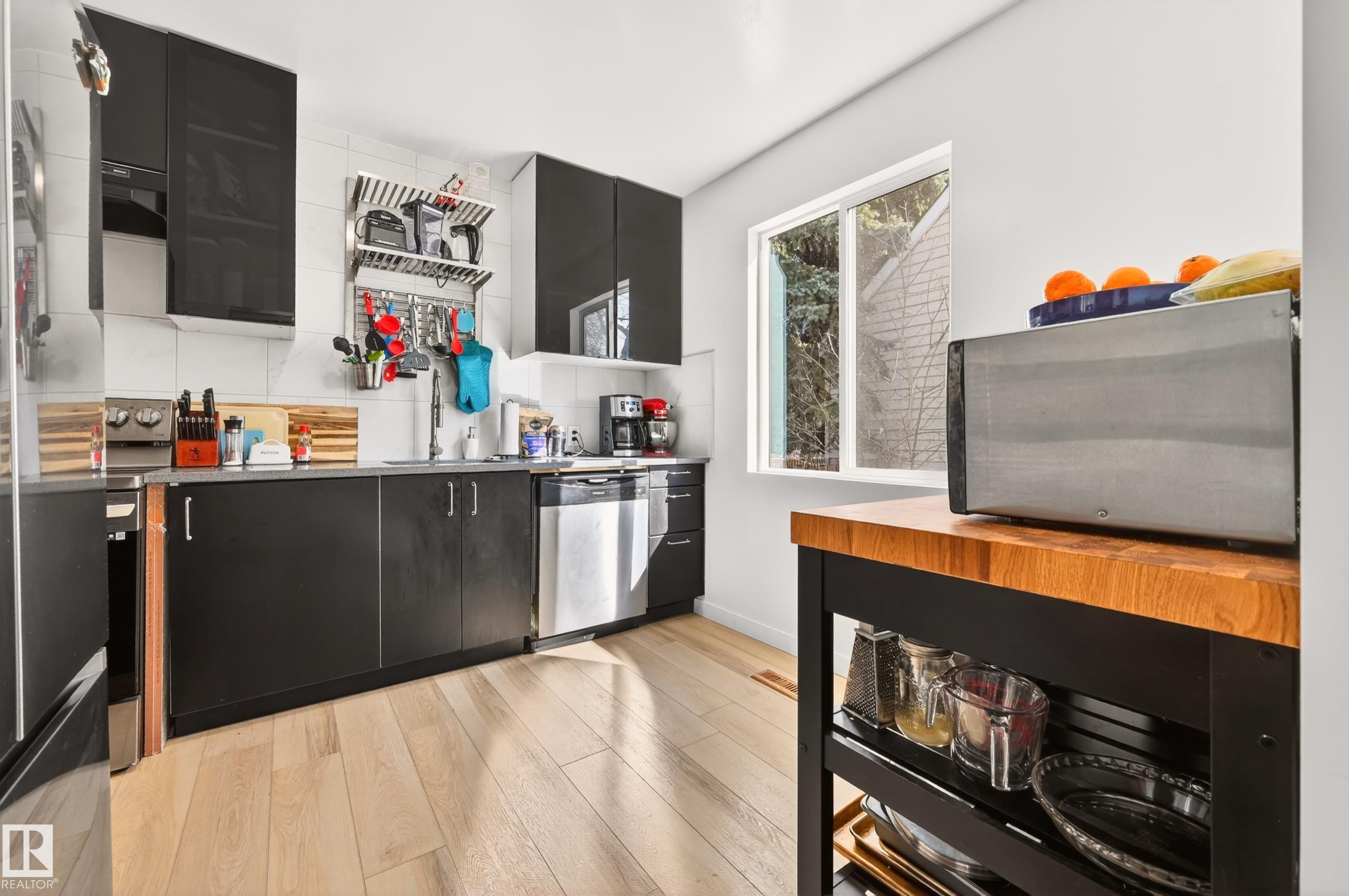 Welcome to the desirable and family friendly community of Parkallen! This extensively updated home offers exceptional functionality ideal for extended family, guests, or added flexibility. Upper level has 3 well-sized bedrooms with great natural light. A bright main floor kitchen, dining and living areas, a spacious family room, and an updated 4PC bath. The fully finished basement offers a second kitchen, large rec room, bedroom, 3PC bath, and laundry. Recent upgrades include: furnace (2021), HWT (2021), backflow valve (2011), sewer/drain work (2022), roof (2022), exterior updates (2022), plus newer deck, porch, siding, windows, and fence. Refinished hardwood throughout. Spacious yard beautifully landscaped with flower and vegetable boxes perfect for gardening enthusiasts. Updated single garage meeting city standards. Steps to Parkallen School, LRT, U of A, Whyte Ave, and Southgate.