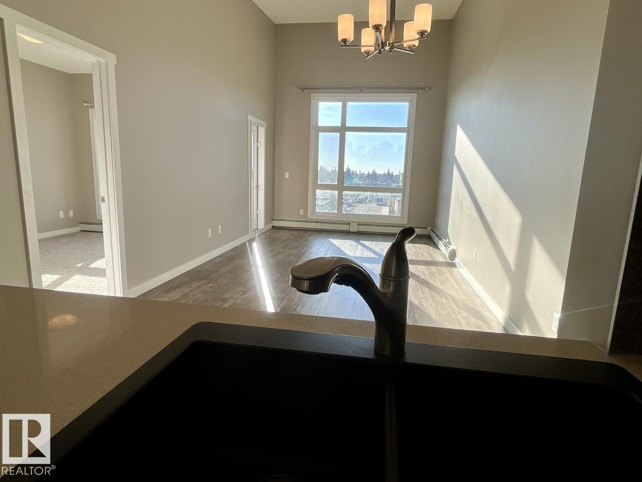 Welcome to Aloft Skyview, the hottest addition to Northwest Edmonton! This stunning penthouse suite offers 735 sqft of bright, open-concept, luxurious living with 2 bedrooms, 9' ceilings, and a spectacular 12' vaulted living room creating an airy, upscale feel. Enjoy an elegant kitchen with upgraded, ceiling-height cabinets, quartz countertops, tile backsplash, and LED lighting perfect for entertaining. The open layout flows to a 10x10 south-facing balcony with breathtaking city skyline views. Built in 2016 and lovingly maintained by its original owner, this home is spotless, quiet, and move-in ready. Includes in-suite laundry and titled underground heated parking. Located steps from 127 St & 137 Ave, you're across from grocery stores, restaurants, and daily conveniences, with easy access to Yellowhead Trail, North Edmonton Common, St. Albert, and CFB Edmonton. Enjoy Aloft Skyview's exclusive rooftop patio--a rare luxury in this area. Come see why this is Northwest Edmonton's premier address!
