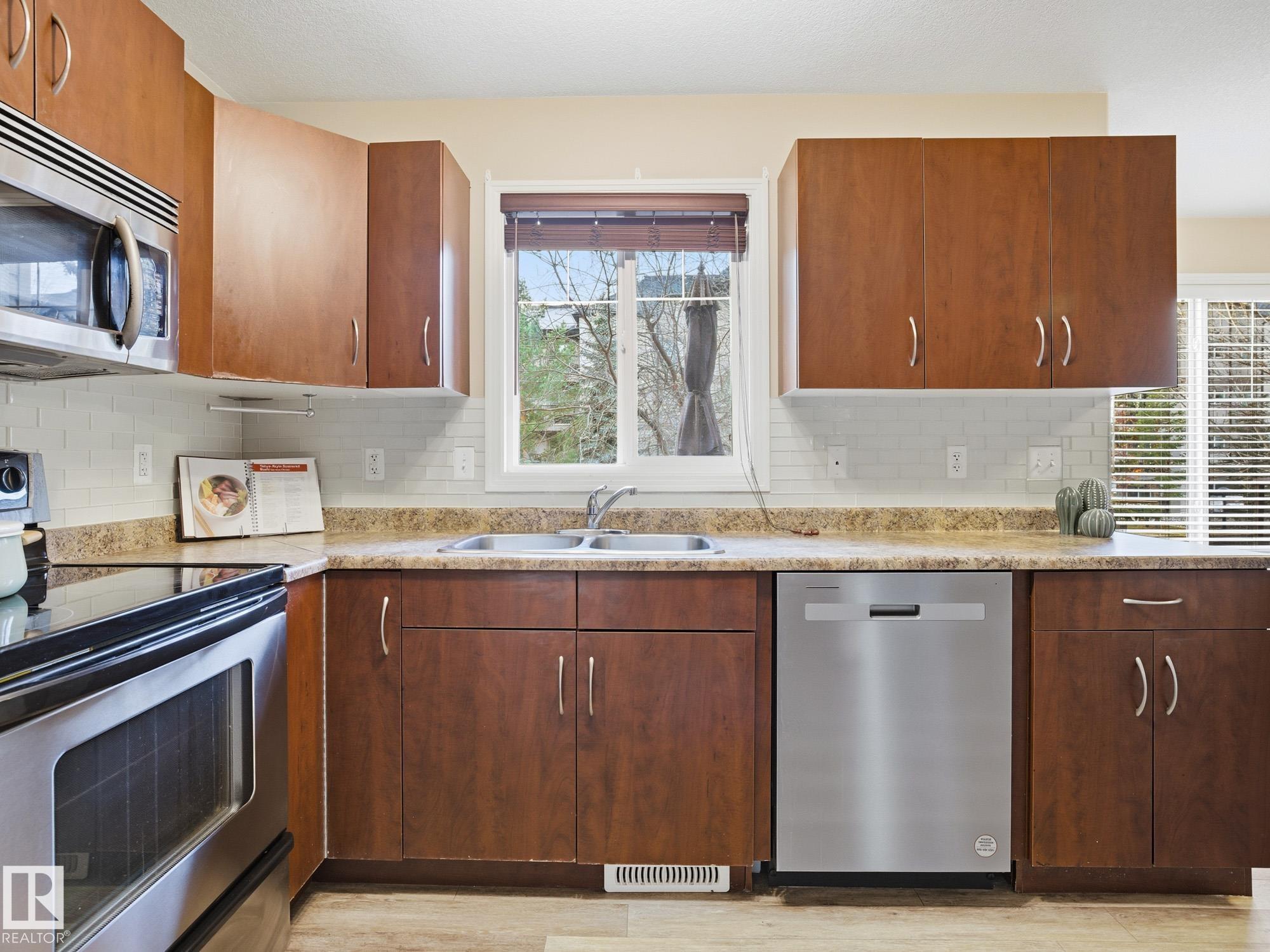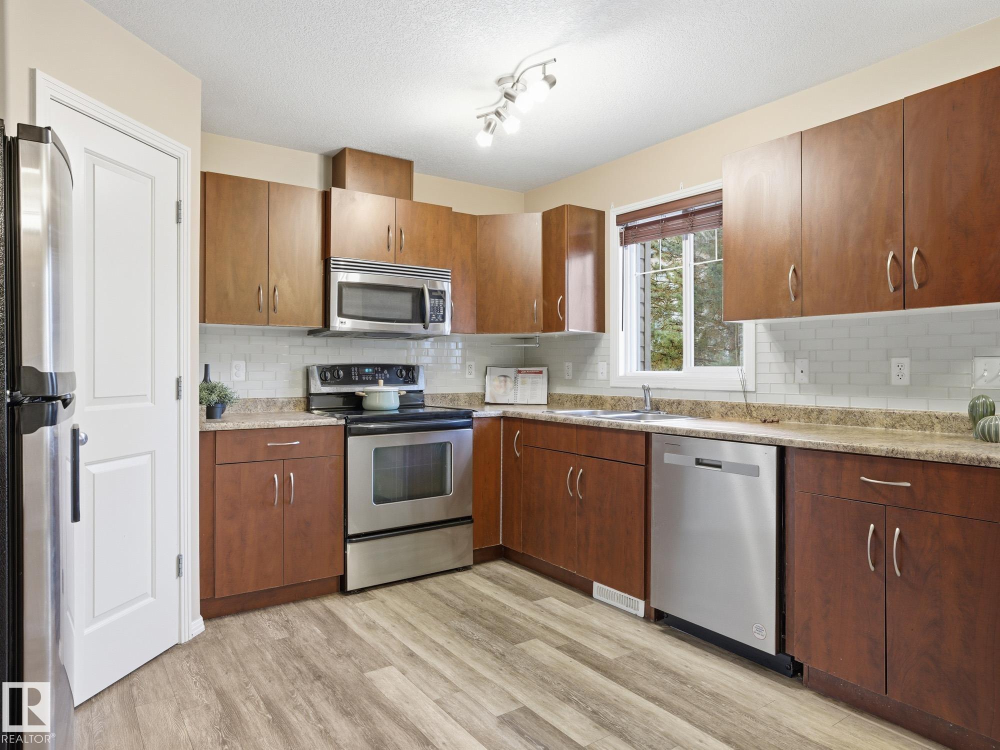 GORGEOUS!!! No better way to get into home ownership than this beautiful 3 bed 2.5 bath townhouse in the heart of all the action on the north side. This well maintained home has had fantastic upgrades over the last few years including laminate floors, HWT (3 years), Dishwasher (2 years), and a brand new washer and dryer this year! Combine this with the already amazing stainless steel appliances, gas fireplace and full dining area and you've got a winner. Upstairs is 3 ample bedrooms, 2 full baths and aforementioned laundry. Downstairs you'll get a large closet and a separate storage room along with access to the garage. The garage on this one is very unique its currently a single with a very neat flex room/gym/office but can easily be converted back to a double by removing one wall. This complex is very well run, healthy, and close to Walmart, MOVATI, Henday, and various restaurants and shopping