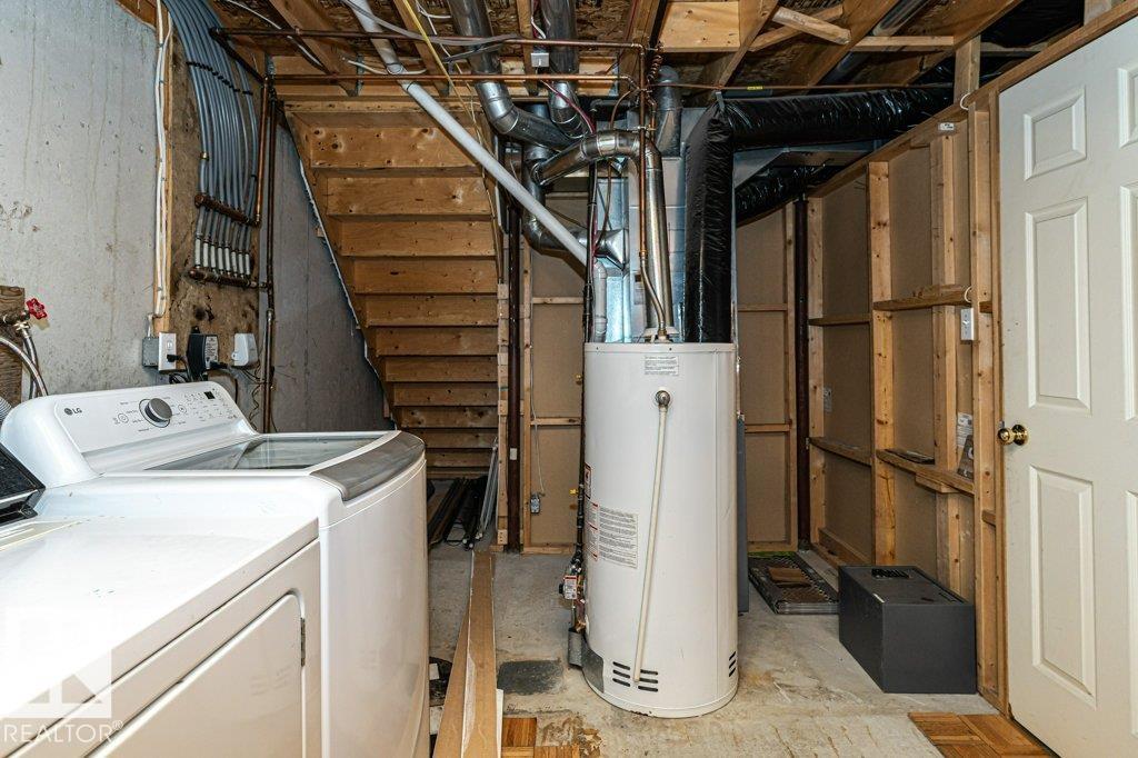 Cute as a button and renovated1100+ SqFt 2 story condo located in this Pollard Meadows neighborhood with low condo fees, $200! The main floor features a East facing living area letting in loads of natural light, corner Gas Fireplace, Newer Flooring in Kitchen and Bathroom area, functional kitchen with white cabinetry, and a upgraded 2 piece bath. Upstairs is a upgraded 4 piece bath, 2 generous sized bedrooms, plus duel closets to complete the Primary Suite. Downstairs is a fully finished recreation room and laundry area with plenty of storage space. Outdoors the front entrance is fenced and has space for lounging. Additional upgrades through the years include laminate floors, light fixtures, hot water tank and more. Perfectly located near schools, shopping, public transportation, and more and is a quick access to the Anthony Henday for added convenience. Move in ready!