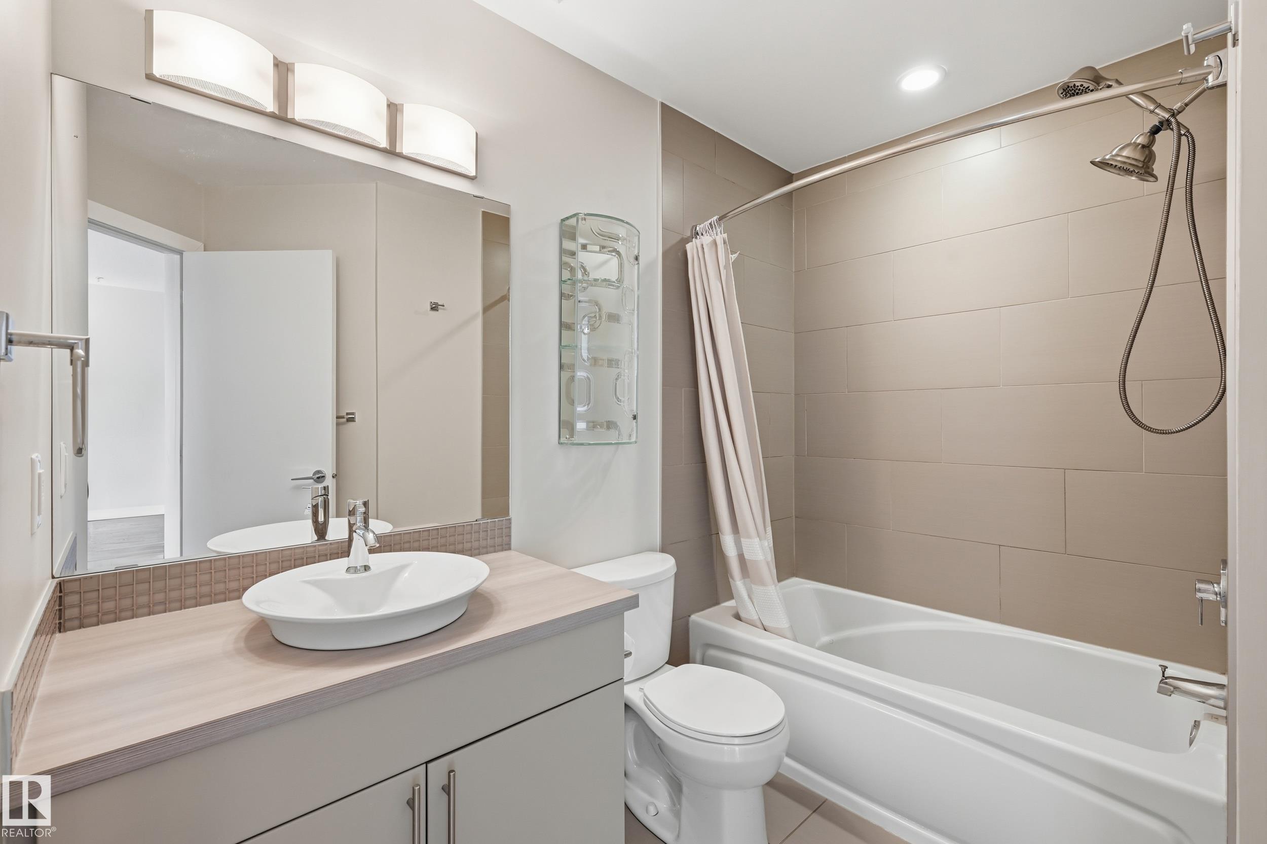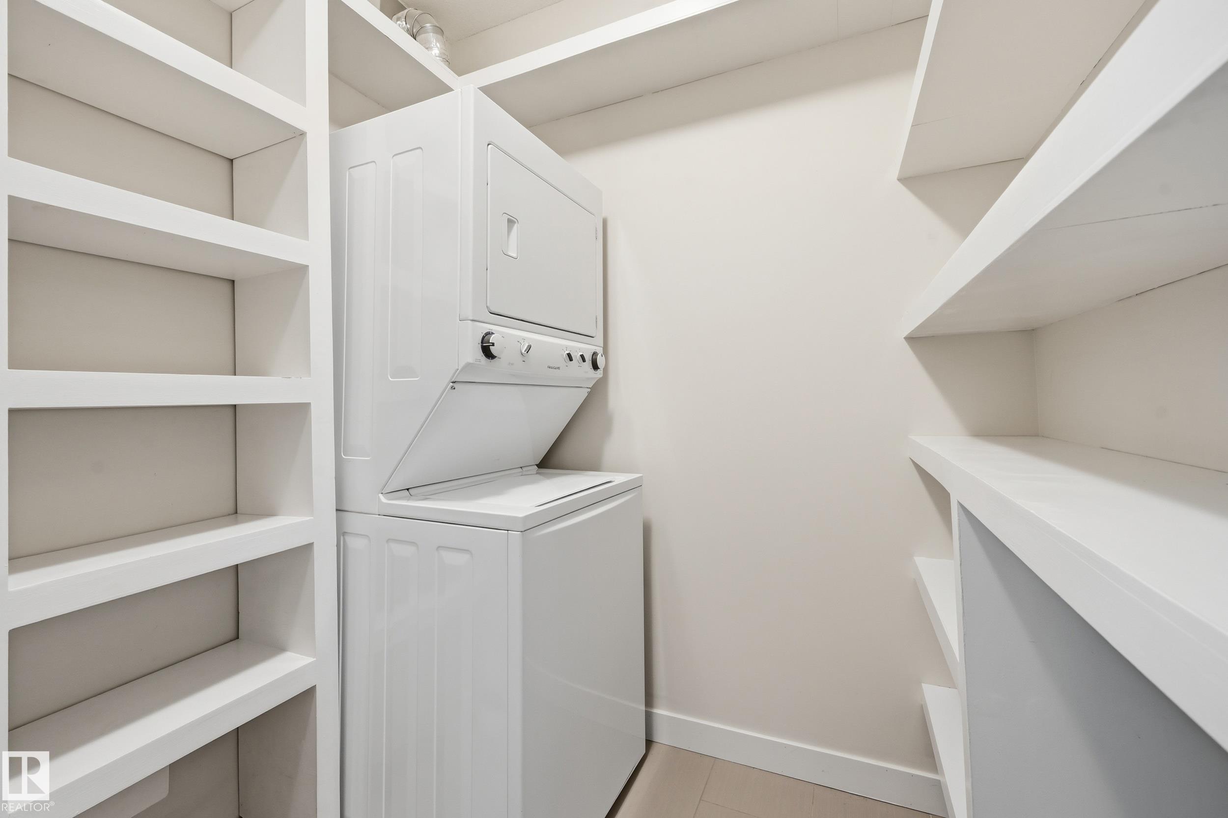 Experience urban living at its finest in Studio Ed. This gorgeous Two Bed, Two Bath, 3rd Floor Condo offers modern comfort just minutes from 104th Avenue, the Brewery District, and the Ice District. Featuring underground parking and a west facing balcony, this bright and stylish home boasts an open concept floor plan with a beautifully upgraded kitchen complete with an eat-up peninsula island, glass tile backsplash, stainless steel appliances, and sleek contemporary cabinetry. The spacious living and dining area easily accommodates both lounge and dining furniture, with patio doors leading to a private balcony perfect for barbecuing or relaxing while enjoying evening sunsets. The Master bedroom includes a thoughtfully designed walk through closet and a modern ensuite bathroom. Even the laundry room has been upgraded with custom cabinetry and shelving for added convenience. Move-in ready and located in one of Edmonton's most desirable urban neighborhoods.