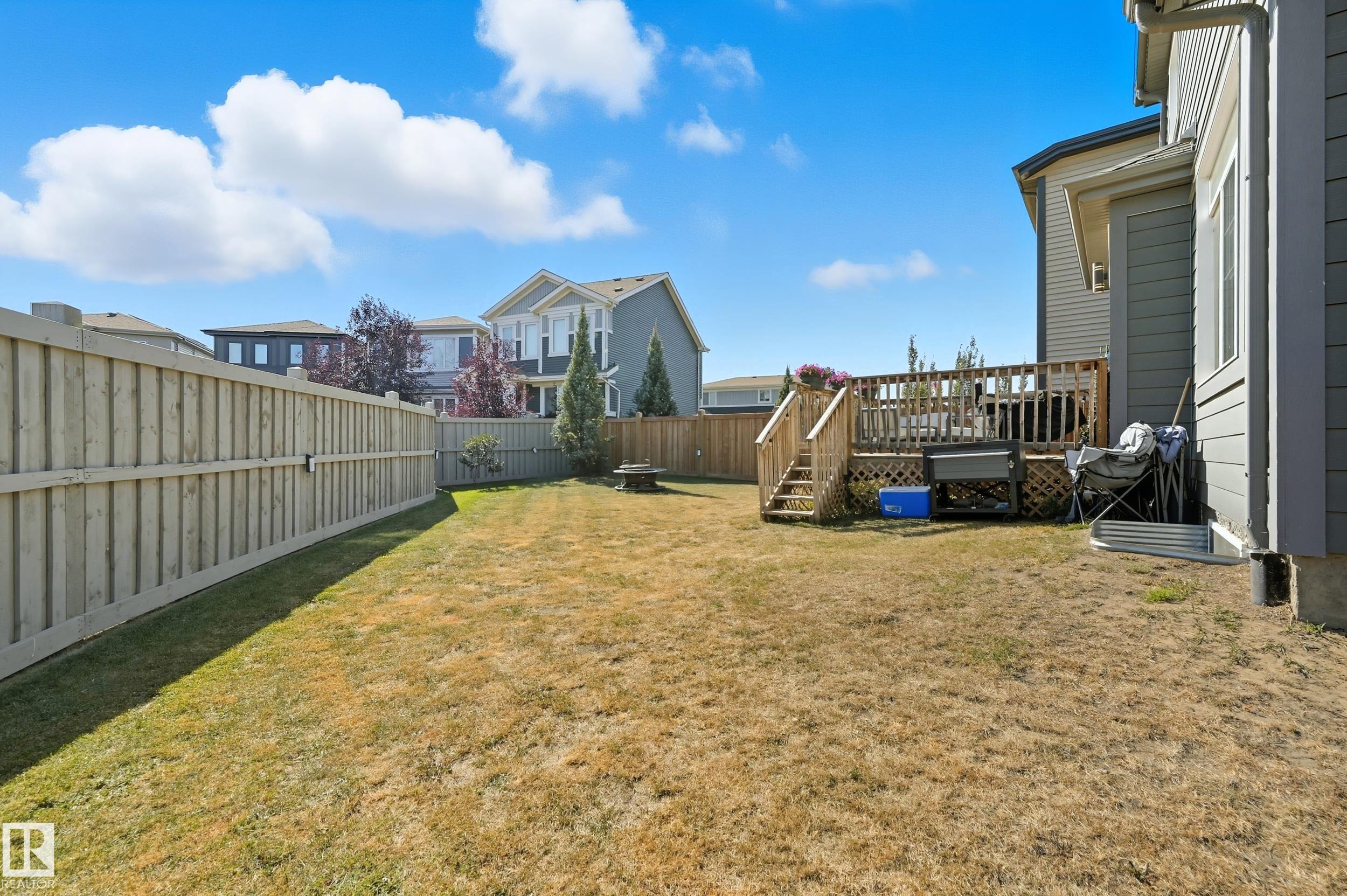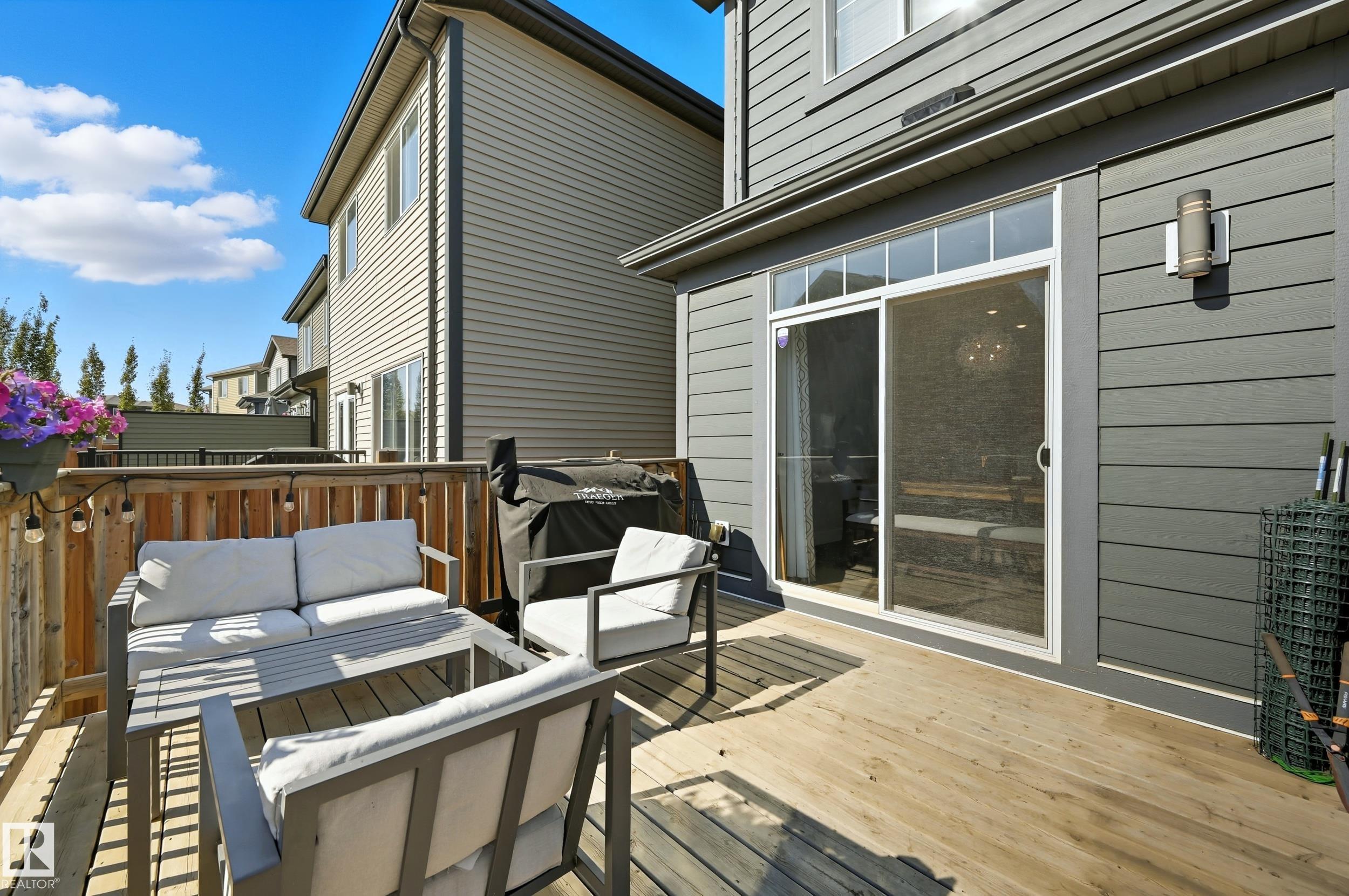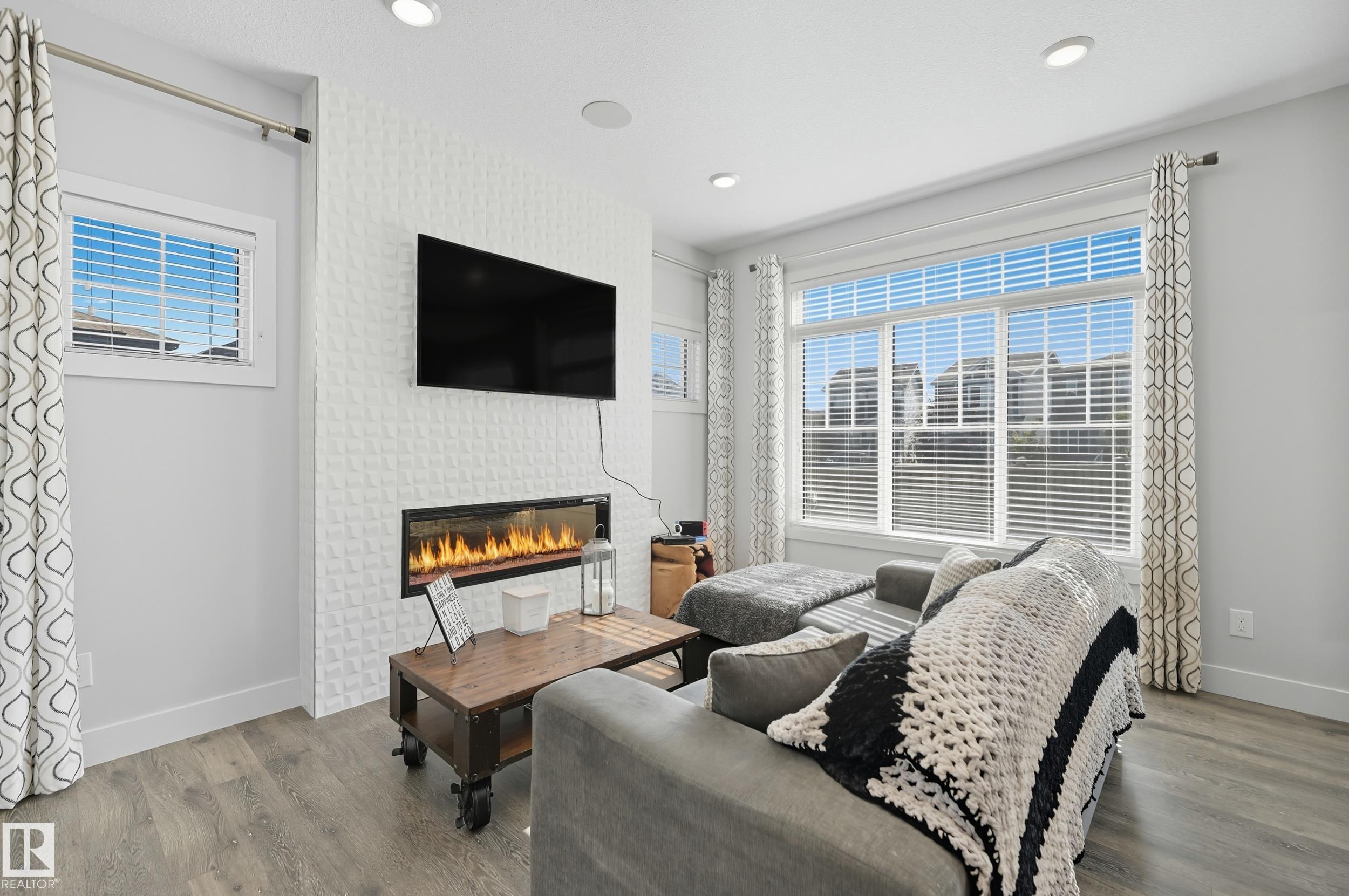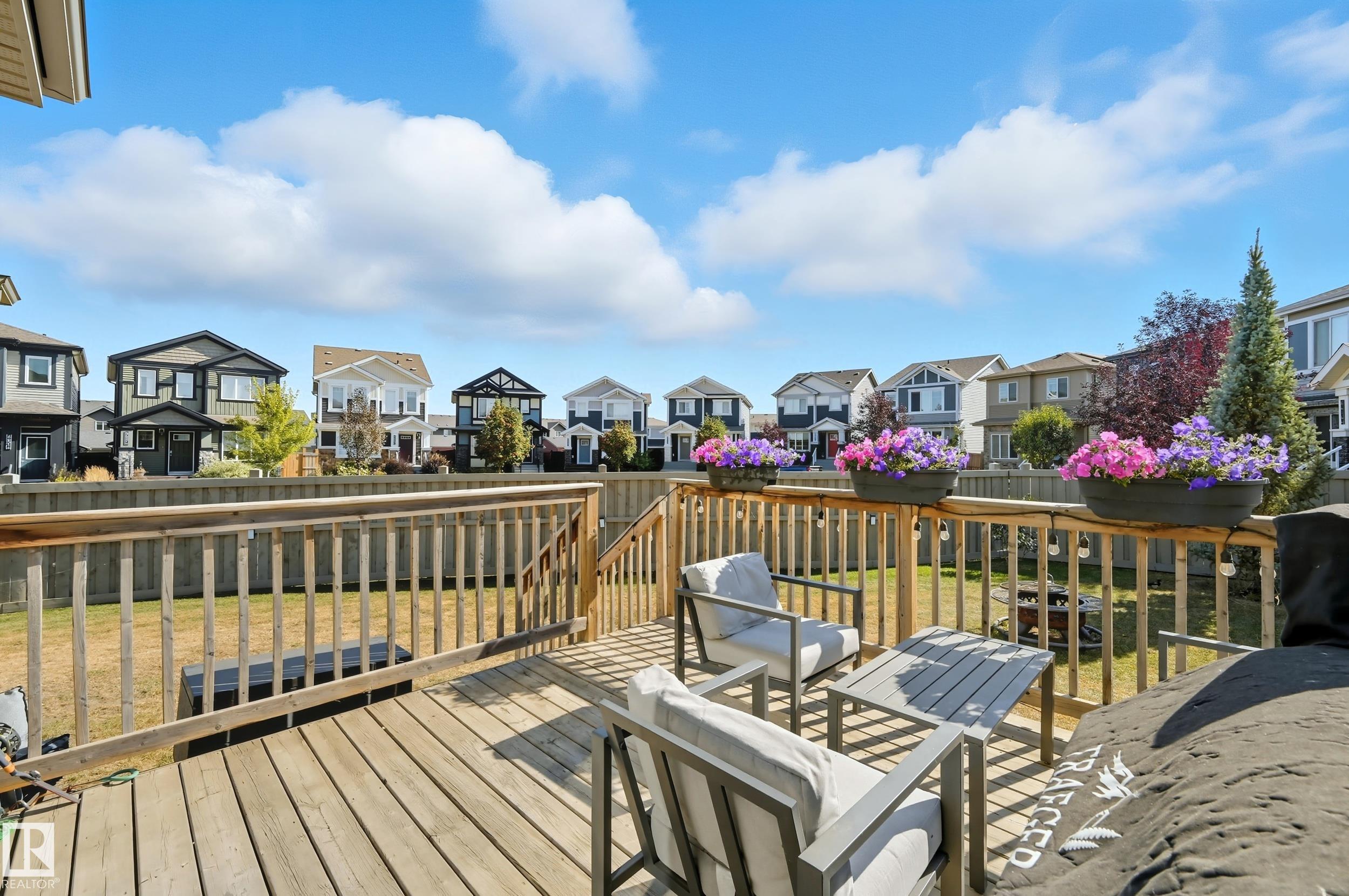 Former Showhome in Rosenthal! This High Efficiency 1586 Sq ft 2 storey, sits on a desirable corner lot in one of West Edmonton's most sought-after communities. Designed to impress, this spacious family home features high-end finishes, designer touches, and thoughtful upgrades throughout. The open-concept main floor offers a generous living area, large windows, and a stylish kitchen with stainless steel appliances, modern cabinetry, and a central working island - perfect for entertaining. Upstairs you'll find 3 sizeable bedrooms (1 could be a bonus room), including a primary suite with walk-in closet and a private 4 piece ensuite, plus the convenience of upstairs laundry. Enjoy year-round comfort with CENTRAL AC and appreciate the double attached garage with HEATED FLOORS -a rare luxury in Edmonton winters. The fully fenced yard, and landscaped lot with a back deck add function and curb appeal. Located close to schools, parks, golfing, and quick access to the Anthony Henday, this home is a must see!