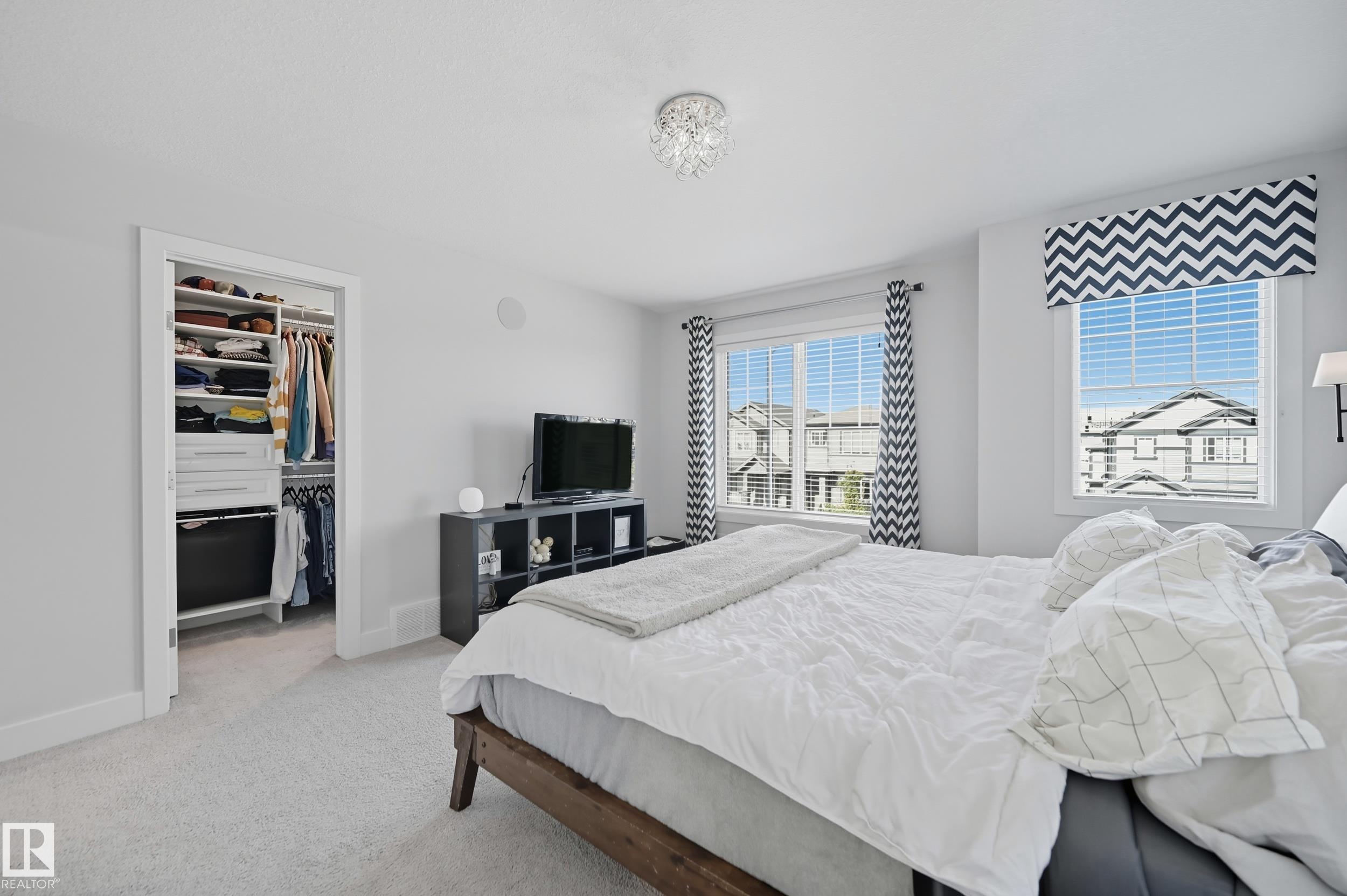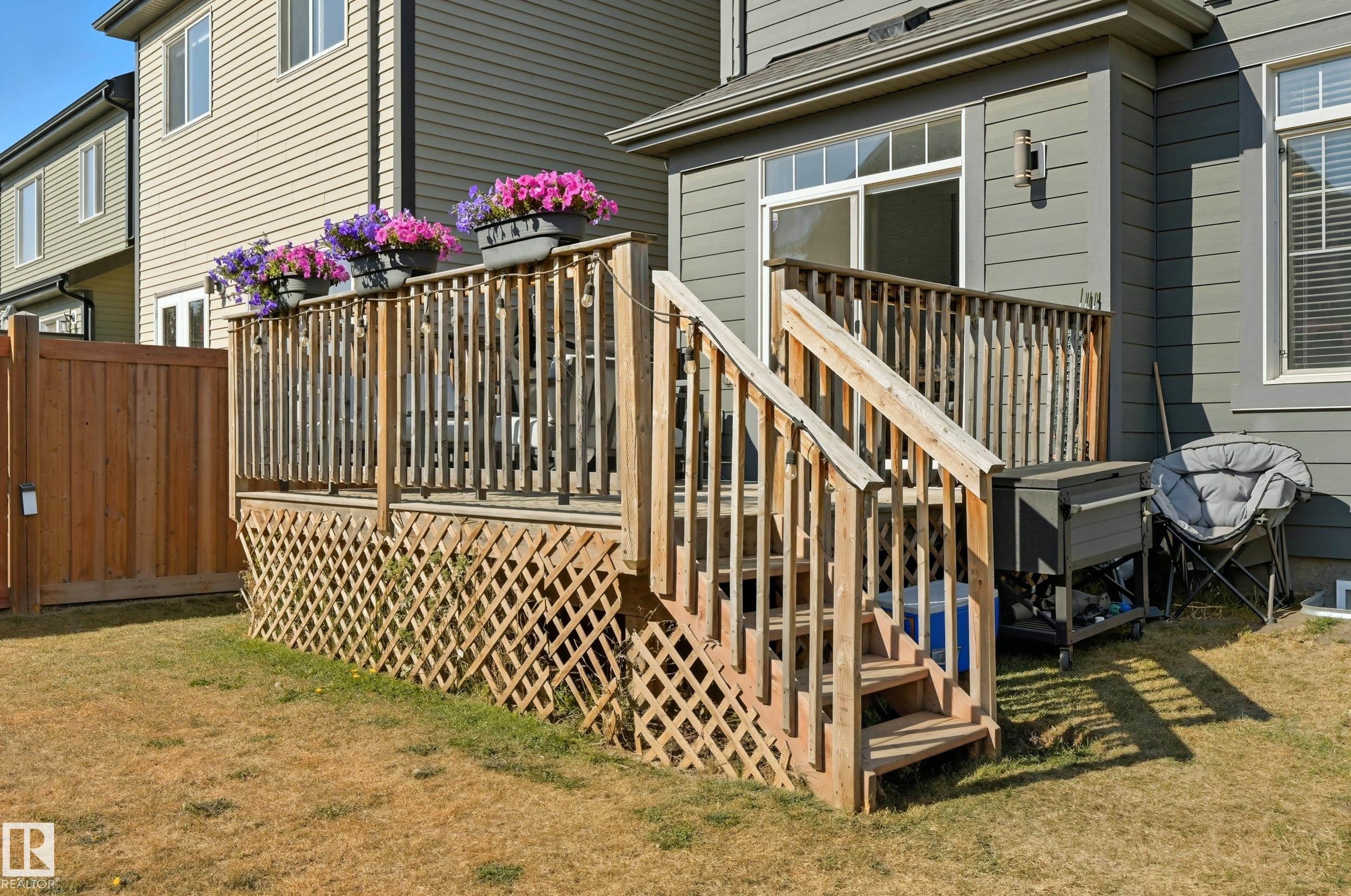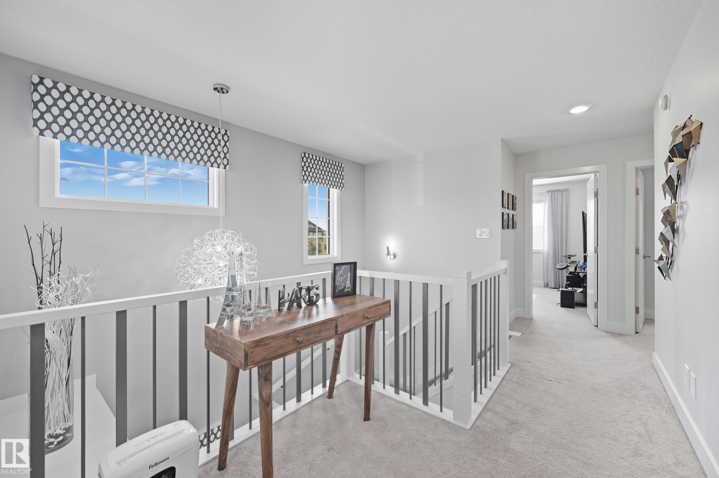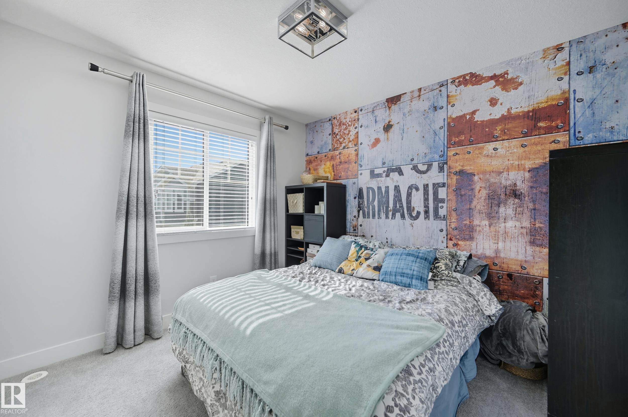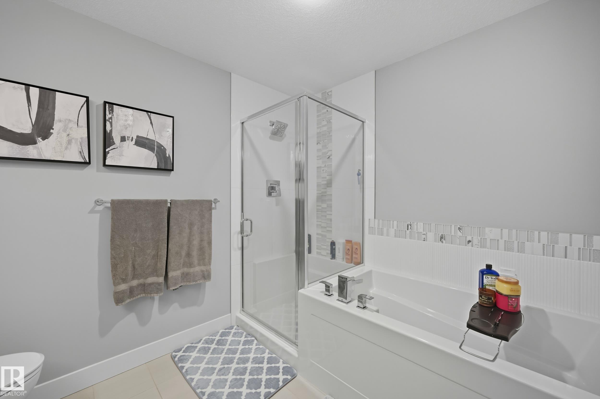 Former Showhome in Rosenthal! This High Efficiency 1586 Sq ft 2 storey, sits on a desirable corner lot in one of West Edmonton's most sought-after communities. Designed to impress, this spacious family home features high-end finishes, designer touches, and thoughtful upgrades throughout. The open-concept main floor offers a generous living area, large windows, and a stylish kitchen with stainless steel appliances, modern cabinetry, and a central working island - perfect for entertaining. Upstairs you'll find 3 sizeable bedrooms (1 could be a bonus room), including a primary suite with walk-in closet and a private 4 piece ensuite, plus the convenience of upstairs laundry. Enjoy year-round comfort with CENTRAL AC and appreciate the double attached garage with HEATED FLOORS -a rare luxury in Edmonton winters. The fully fenced yard, and landscaped lot with a back deck add function and curb appeal. Located close to schools, parks, golfing, and quick access to the Anthony Henday, this home is a must see!