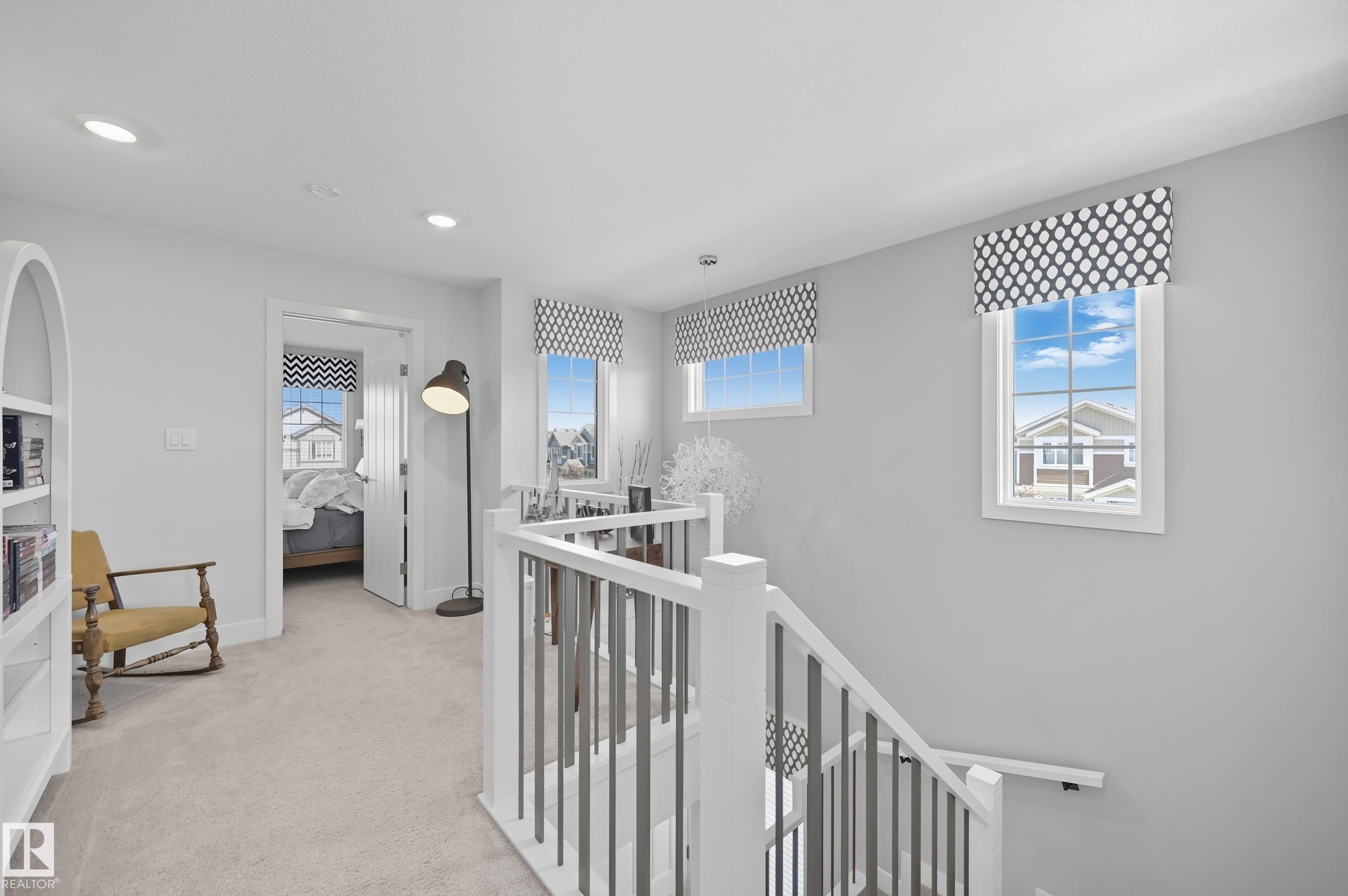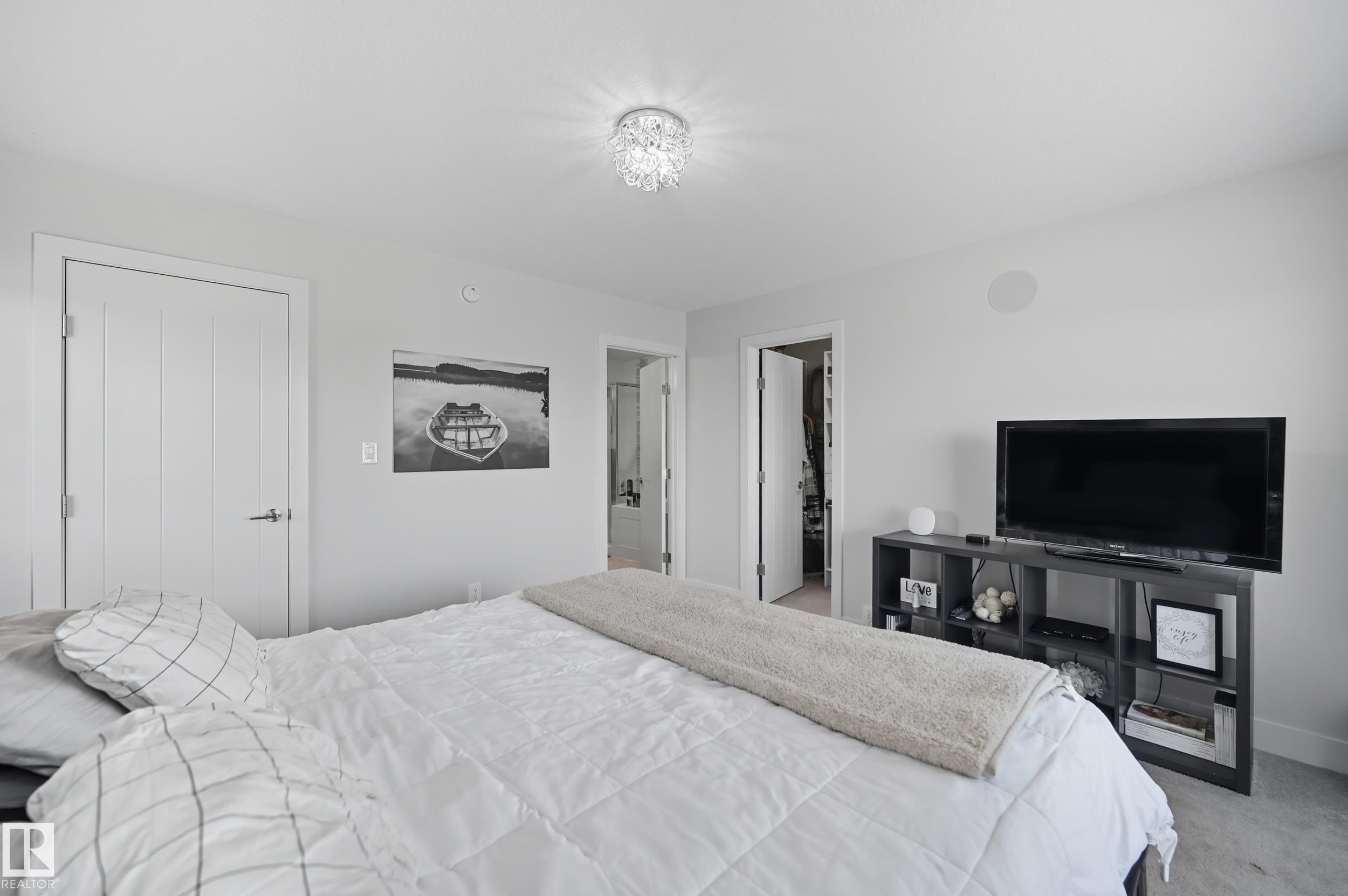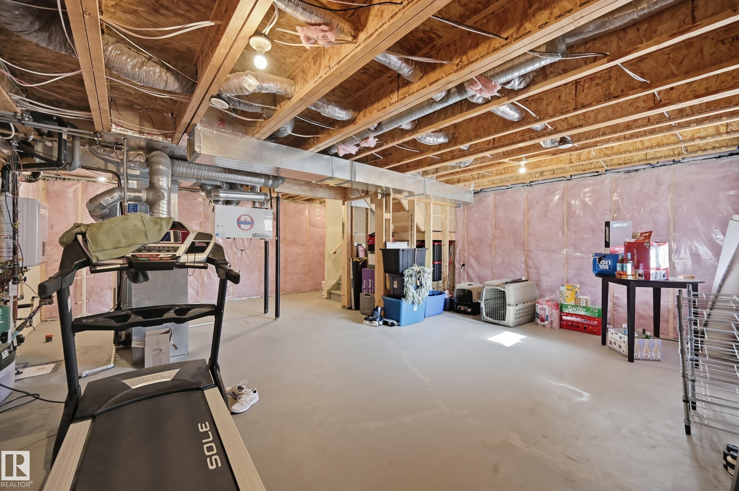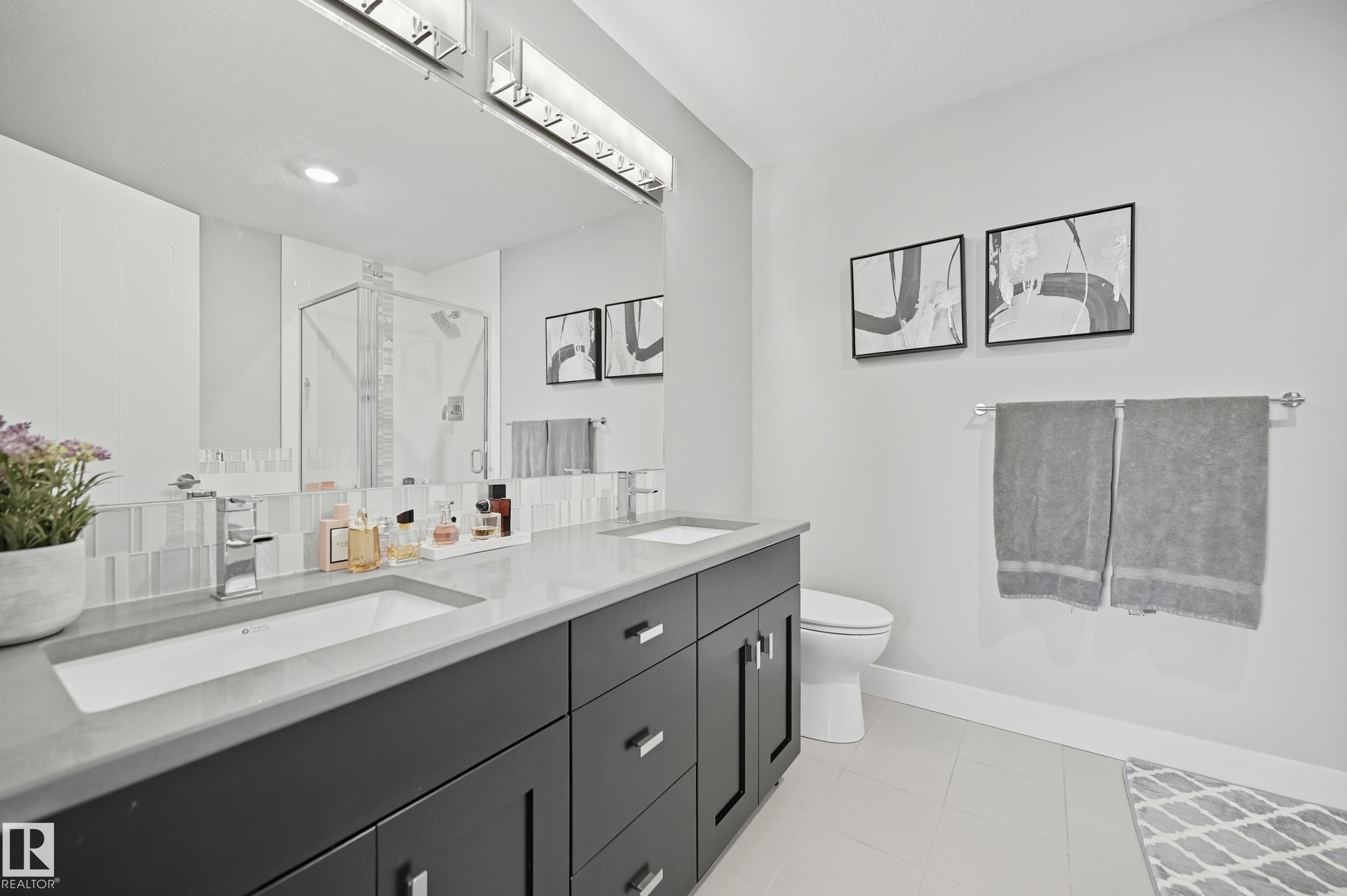 Former Showhome in Rosenthal! This High Efficiency 1586 Sq ft 2 storey, sits on a desirable corner lot in one of West Edmonton's most sought-after communities. Designed to impress, this spacious family home features high-end finishes, designer touches, and thoughtful upgrades throughout. The open-concept main floor offers a generous living area, large windows, and a stylish kitchen with stainless steel appliances, modern cabinetry, and a central working island - perfect for entertaining. Upstairs you'll find 3 sizeable bedrooms (1 could be a bonus room), including a primary suite with walk-in closet and a private 4 piece ensuite, plus the convenience of upstairs laundry. Enjoy year-round comfort with CENTRAL AC and appreciate the double attached garage with HEATED FLOORS -a rare luxury in Edmonton winters. The fully fenced yard, and landscaped lot with a back deck add function and curb appeal. Located close to schools, parks, golfing, and quick access to the Anthony Henday, this home is a must see!
