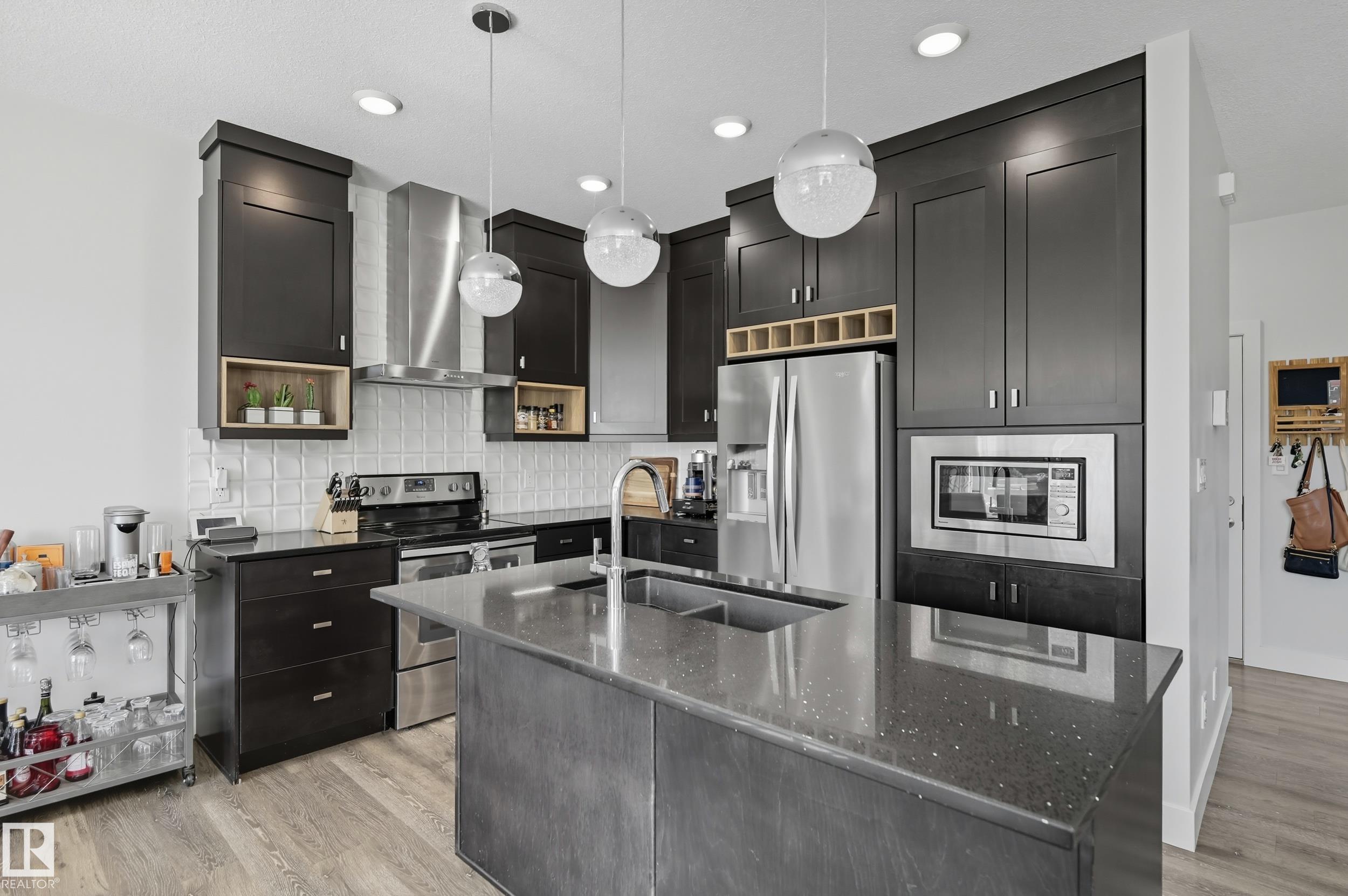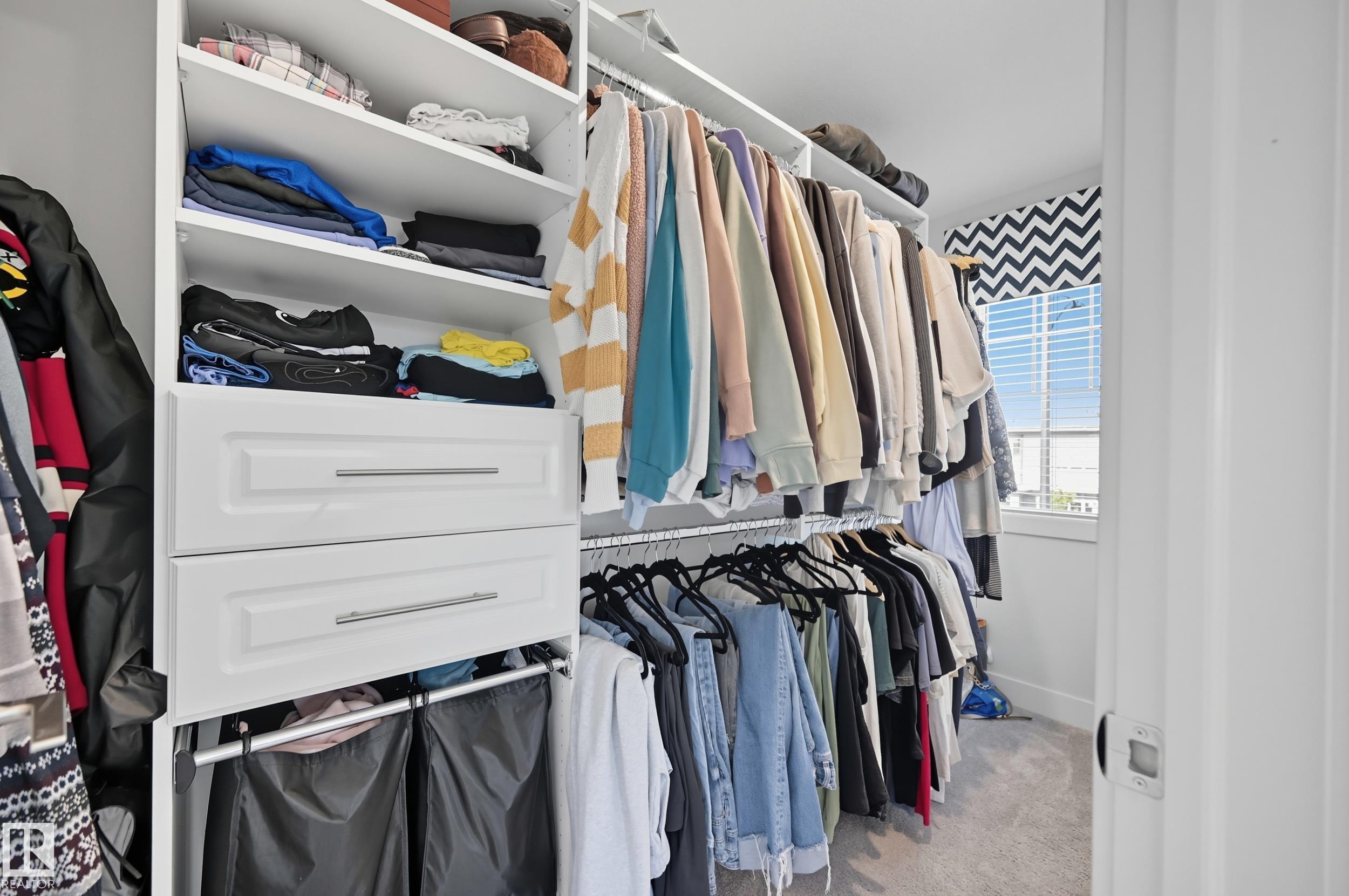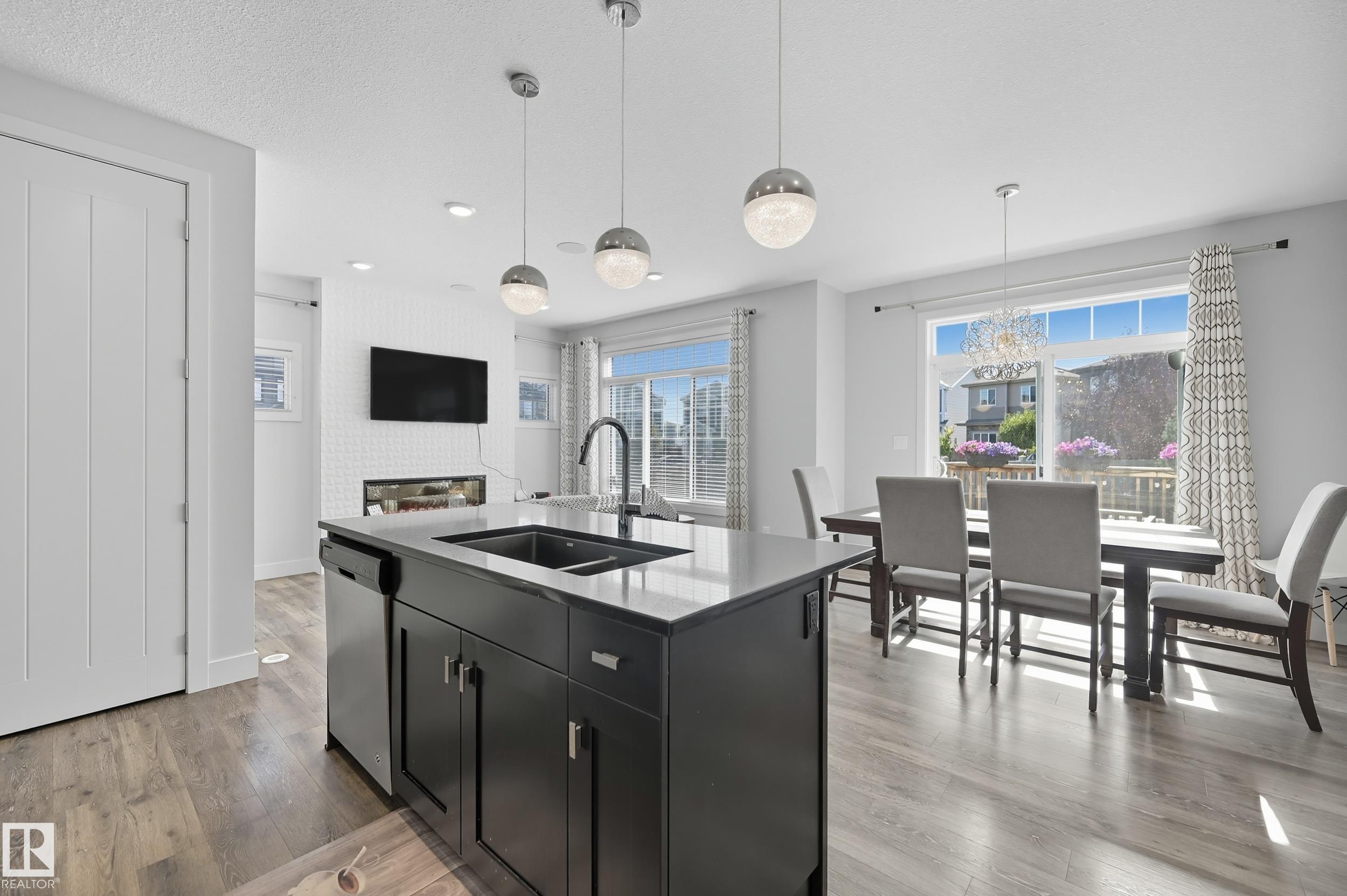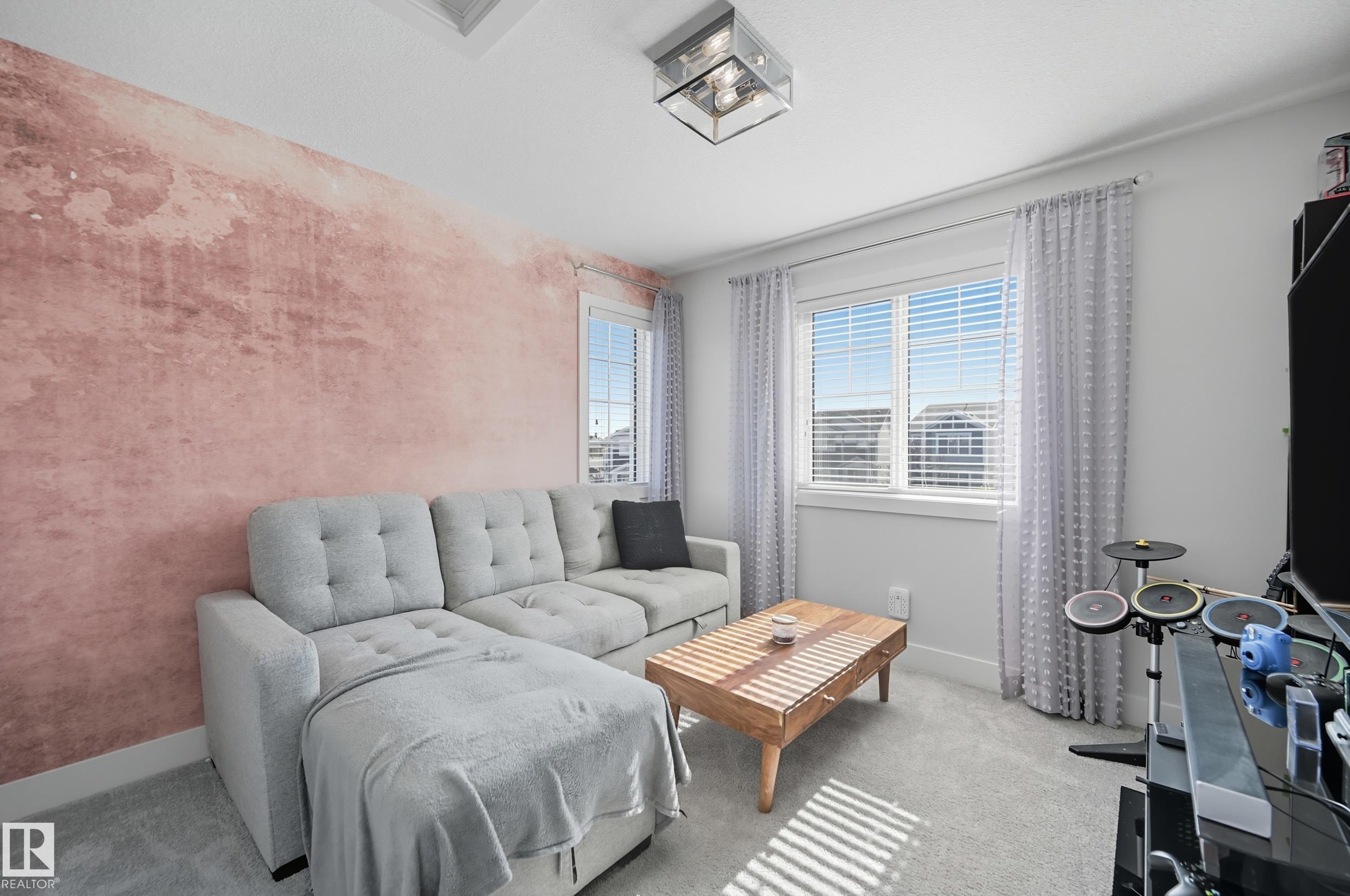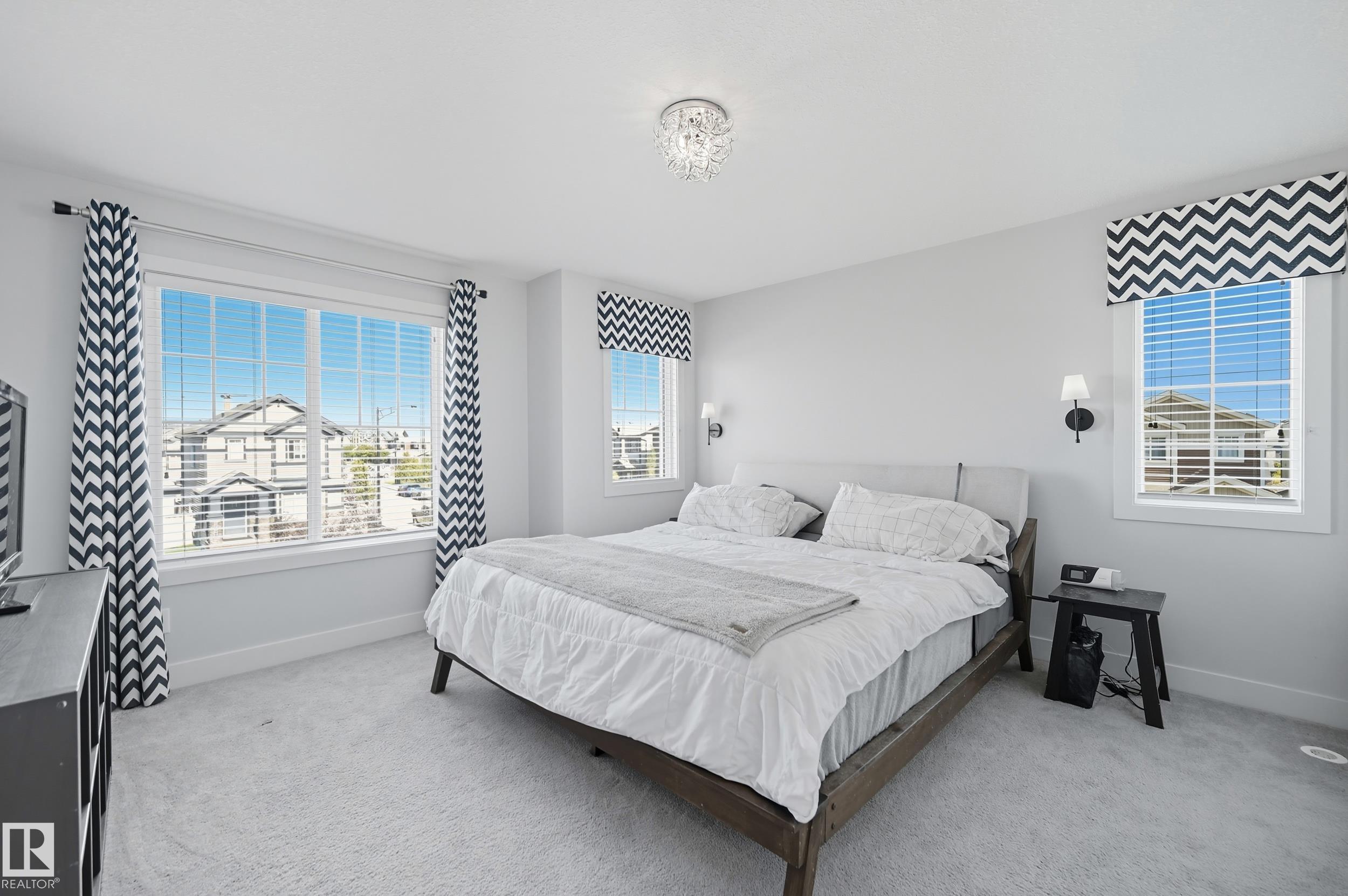 Former Showhome in Rosenthal! This High Efficiency 1586 Sq ft 2 storey, sits on a desirable corner lot in one of West Edmonton's most sought-after communities. Designed to impress, this spacious family home features high-end finishes, designer touches, and thoughtful upgrades throughout. The open-concept main floor offers a generous living area, large windows, and a stylish kitchen with stainless steel appliances, modern cabinetry, and a central working island - perfect for entertaining. Upstairs you'll find 3 sizeable bedrooms (1 could be a bonus room), including a primary suite with walk-in closet and a private 4 piece ensuite, plus the convenience of upstairs laundry. Enjoy year-round comfort with CENTRAL AC and appreciate the double attached garage with HEATED FLOORS -a rare luxury in Edmonton winters. The fully fenced yard, and landscaped lot with a back deck add function and curb appeal. Located close to schools, parks, golfing, and quick access to the Anthony Henday, this home is a must see!