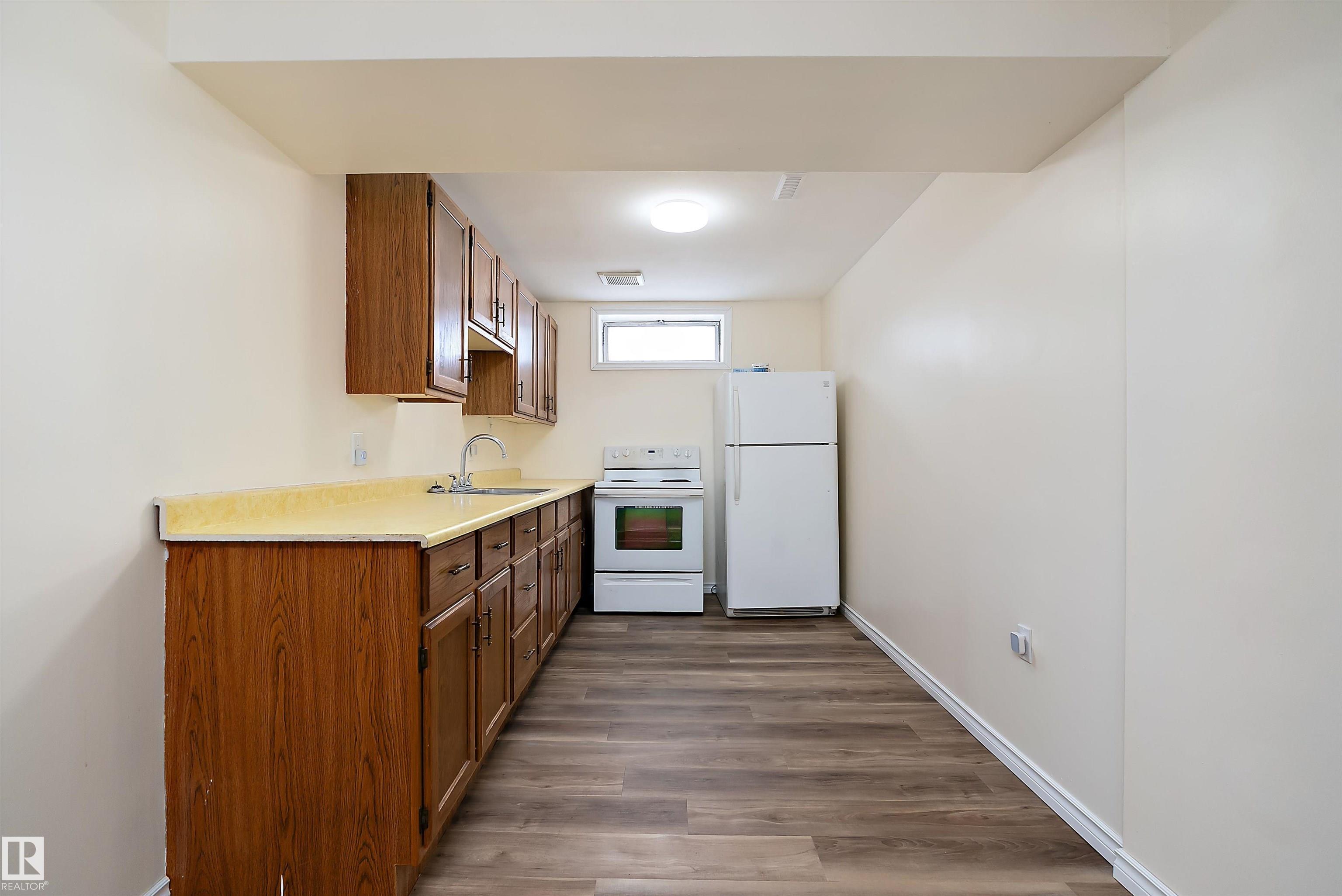 Welcome to this clean, move-in ready 4-bedroom bungalow in established Rundle Heights -- steps from the North Saskatchewan River Valley and the vibrant Rundle Park area. The main floor offers 3 bedrooms, 2 full baths and a bright open living/dining layout anchored by a functional kitchen designed for everyday comfort and connection. The finished basement adds exceptional flexibility with a spacious rec room, 4th bedroom, full bath, second kitchen and separate entrance -- ideal for extended family, shared living or future income potential. Outside, enjoy a double detached garage and a fenced yard with space to relax, garden or host gatherings. Located directly across from St. Jerome Catholic School and close to additional schools, greenspace, trails, recreation and key commuter routes, this home delivers practical layout, lifestyle access and long-term value in one of northeast Edmonton's most established neighbourhood settings.