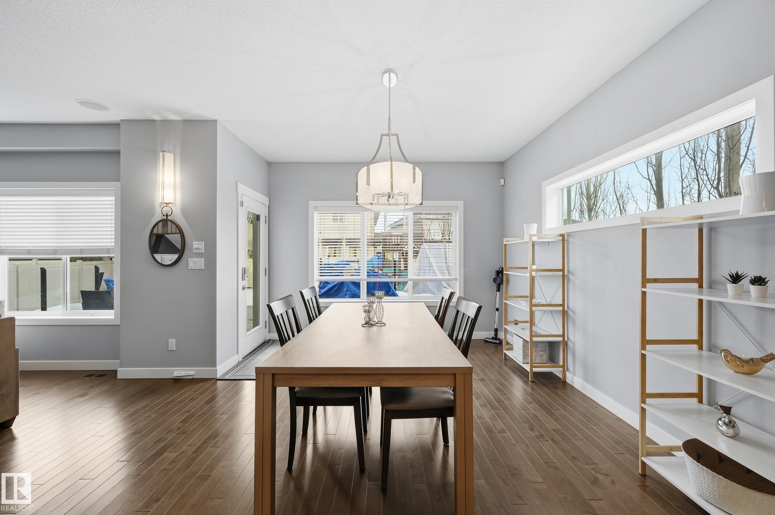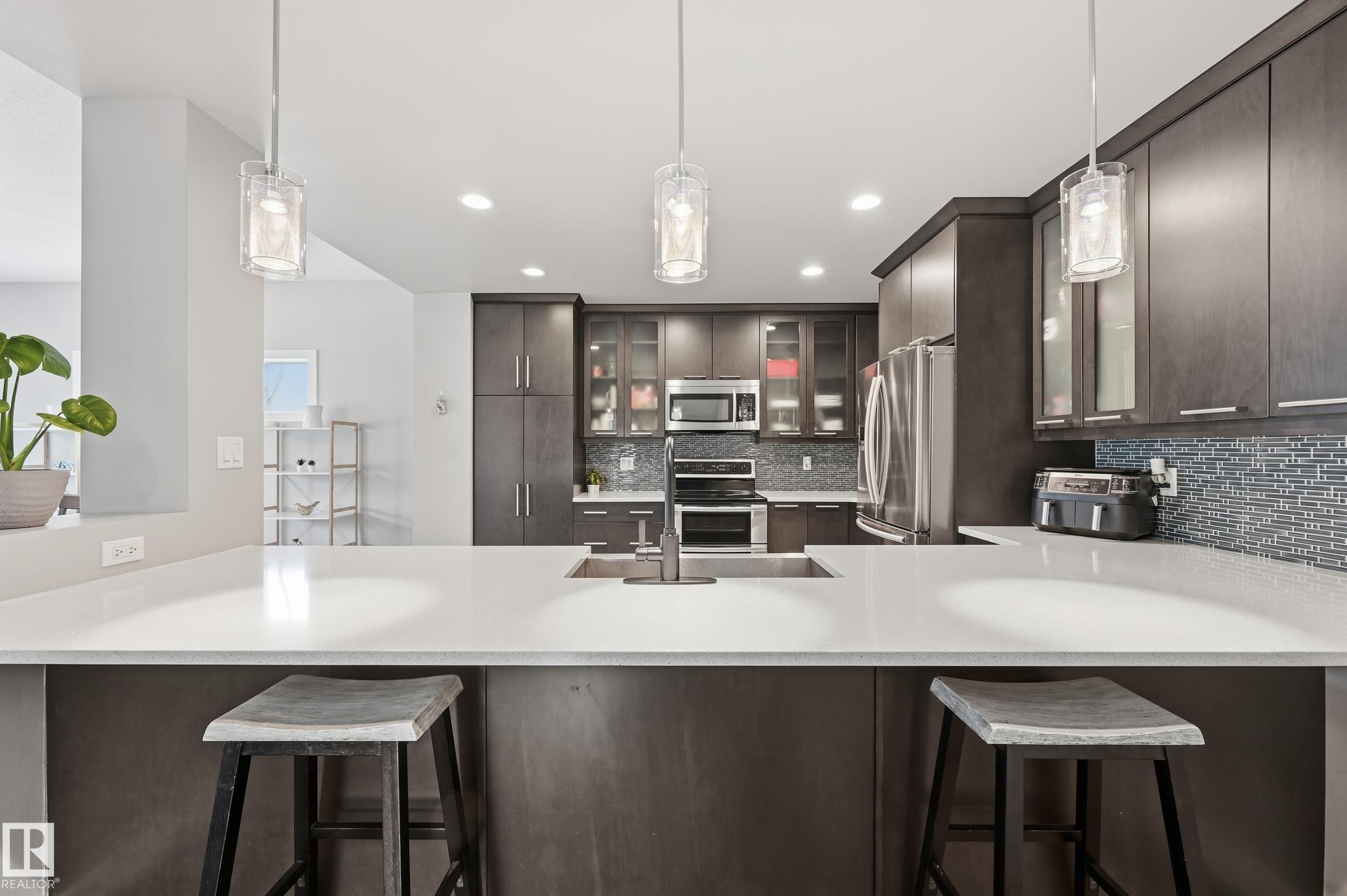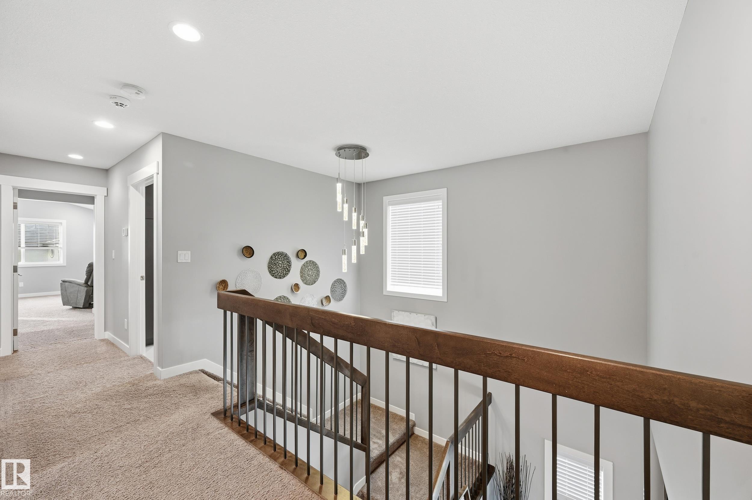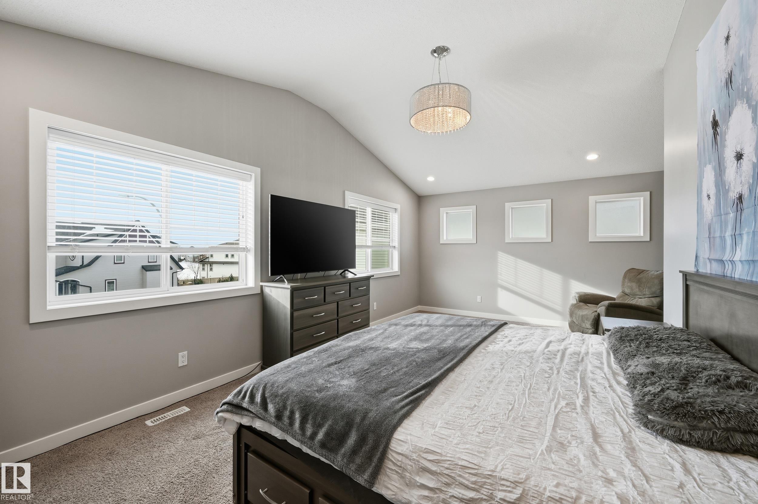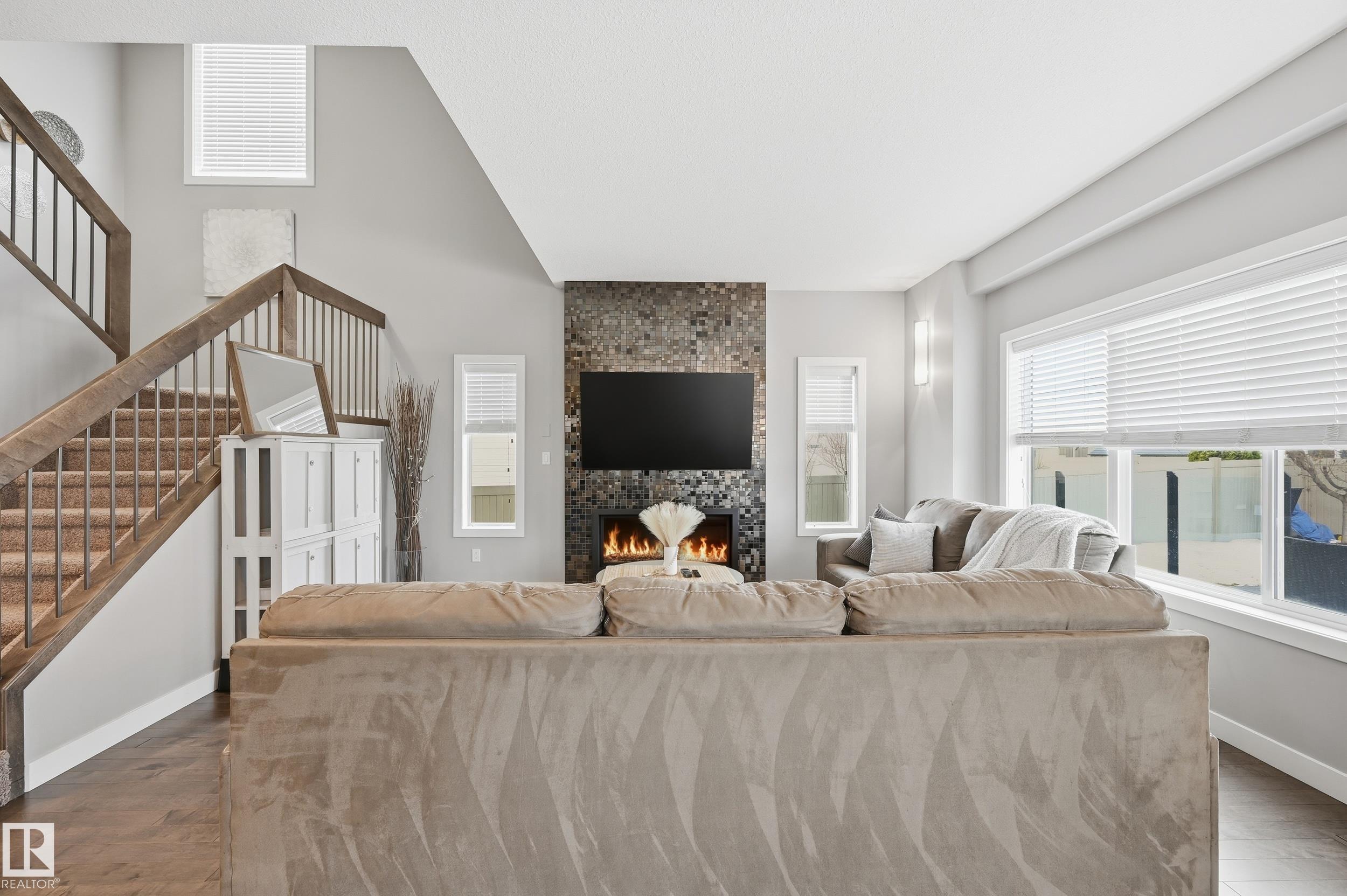 Welcome to this exceptional custom built two storey, showcasing extensive upgrades in the family friendly community of Secord. The main floor offers a sleek open concept design anchored by a chef inspired kitchen with quartz countertops, stainless steel appliances, oversized island with seating, and abundant storage. The dinette opens to a massive pie lot featuring a two tier, no maintenance deck with custom glass railings perfect for entertaining. The living room impresses with soaring ceilings, expansive windows, and a stunning mosaic tiled gas fireplace. A large office and stylish half bath complete the main level. Upstairs, enjoy a bright bonus room with surround sound, a luxurious Master retreat with walk-in closet, and a spa like ensuite featuring steam shower, heated floors, soaker tub, and dual sinks, plus two additional bedrooms and upper laundry. The fully finished basement includes two more bedrooms, gym, kitchenette, family room, and full bath. Ideally located close to schools, and shopping.