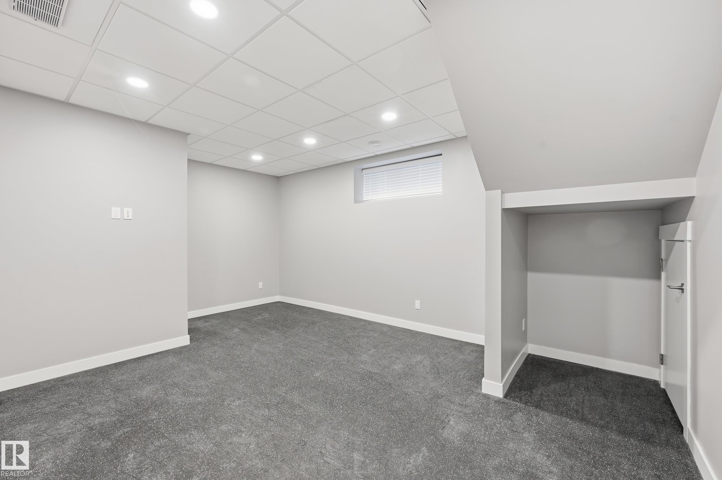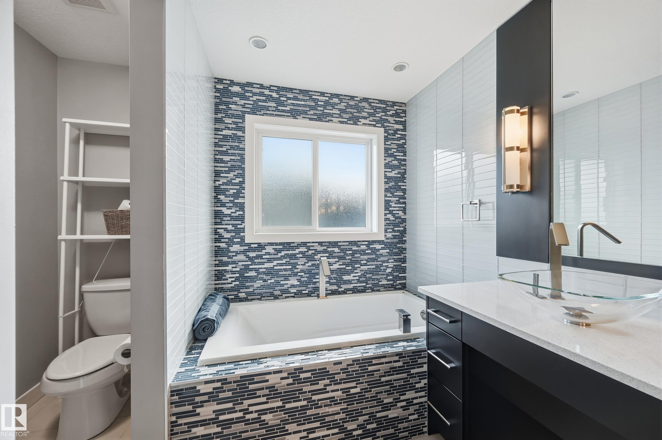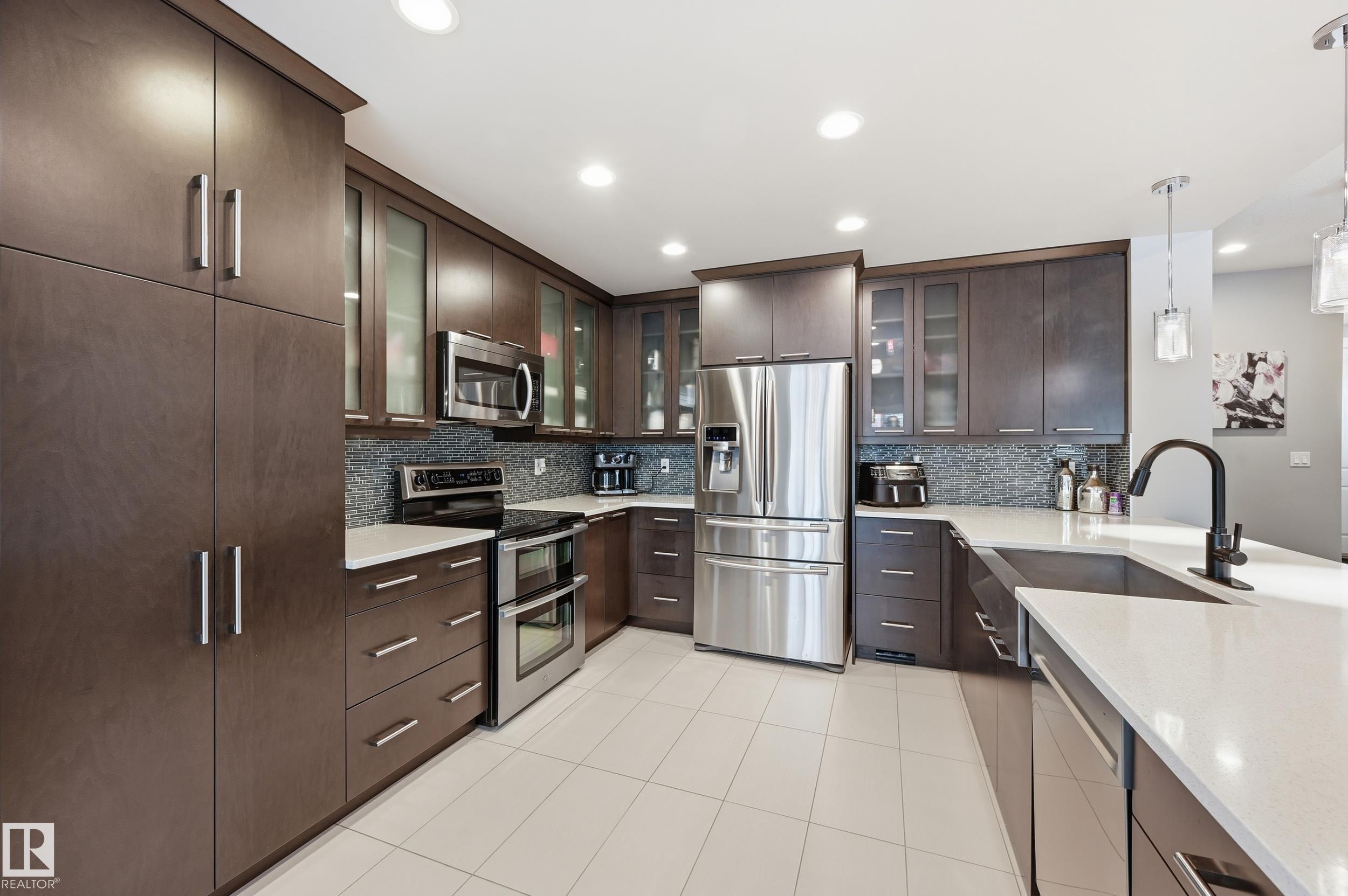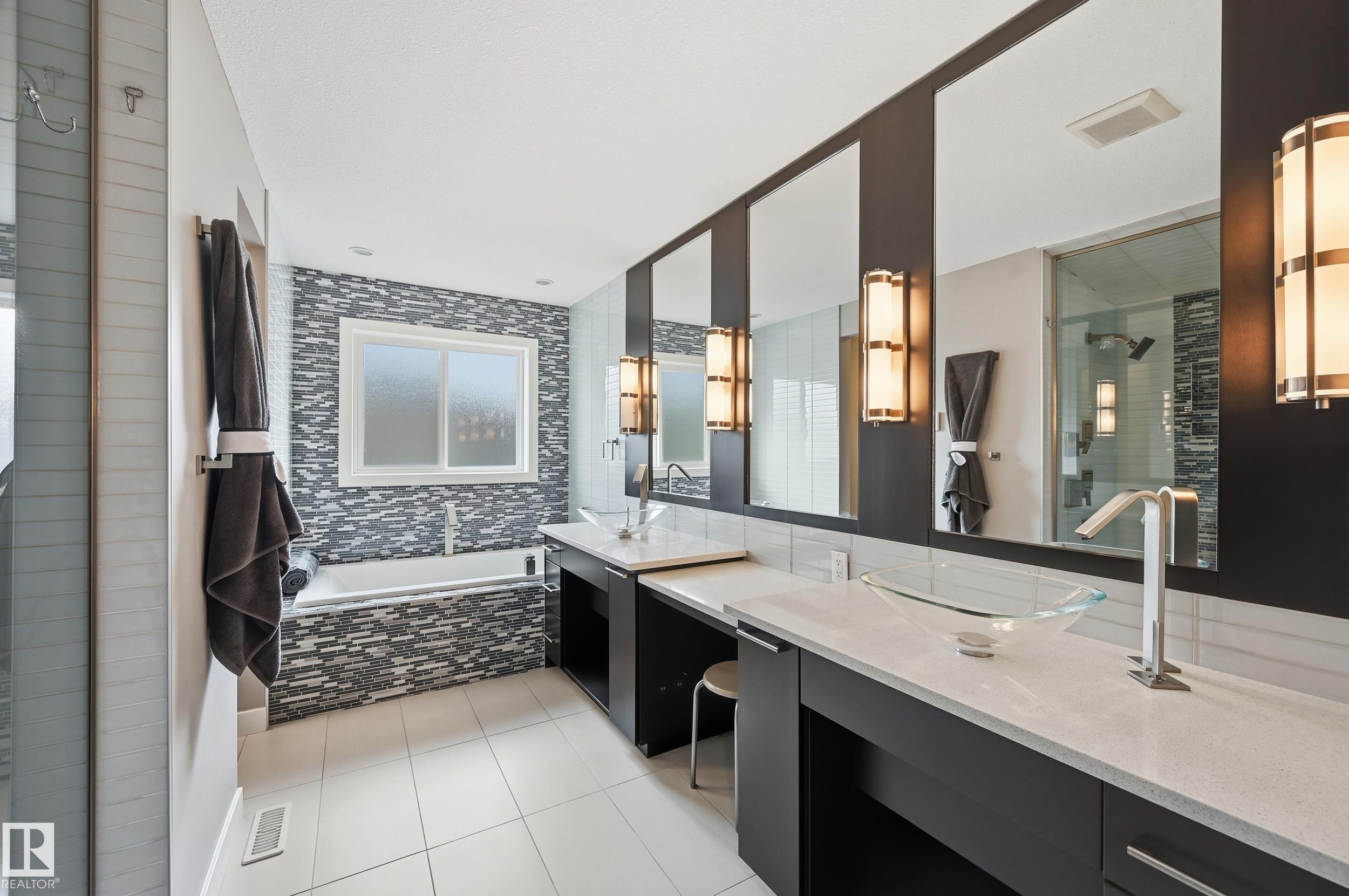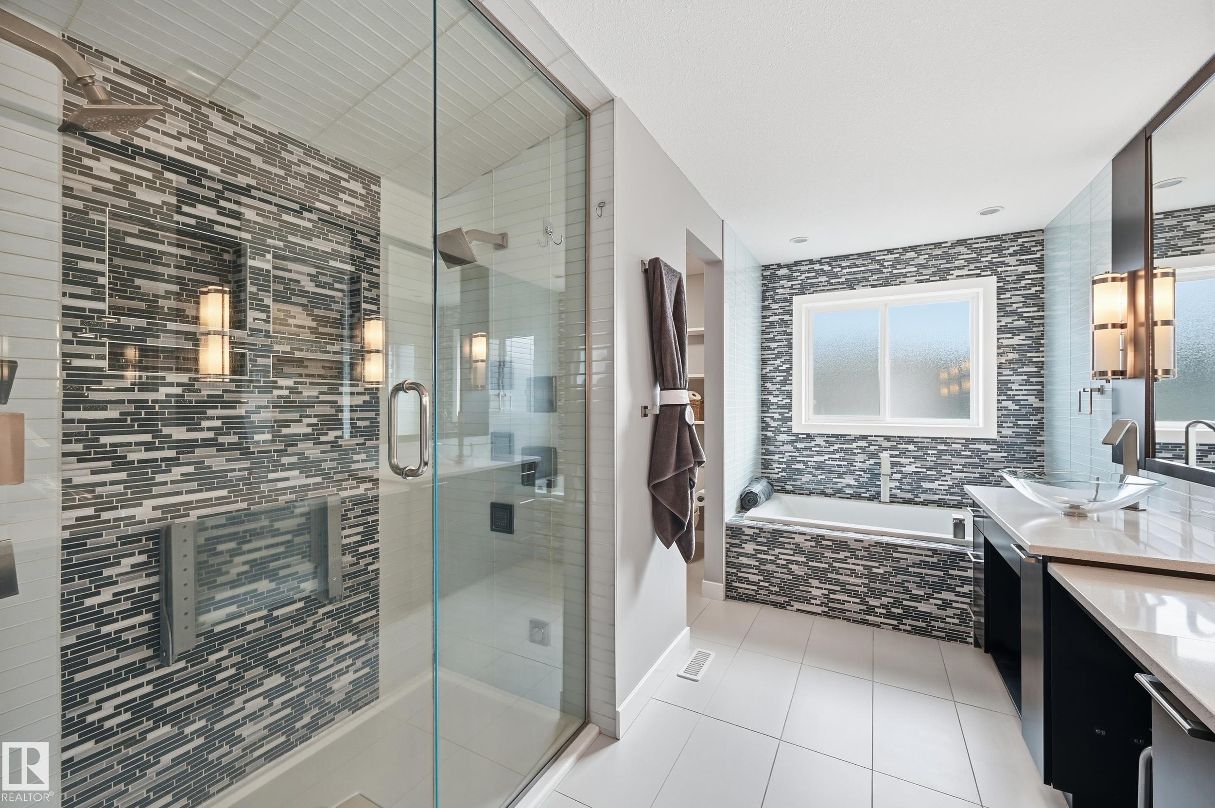 Welcome to this exceptional custom built two storey, showcasing extensive upgrades in the family friendly community of Secord. The main floor offers a sleek open concept design anchored by a chef inspired kitchen with quartz countertops, stainless steel appliances, oversized island with seating, and abundant storage. The dinette opens to a massive pie lot featuring a two tier, no maintenance deck with custom glass railings perfect for entertaining. The living room impresses with soaring ceilings, expansive windows, and a stunning mosaic tiled gas fireplace. A large office and stylish half bath complete the main level. Upstairs, enjoy a bright bonus room with surround sound, a luxurious Master retreat with walk-in closet, and a spa like ensuite featuring steam shower, heated floors, soaker tub, and dual sinks, plus two additional bedrooms and upper laundry. The fully finished basement includes two more bedrooms, gym, kitchenette, family room, and full bath. Ideally located close to schools, and shopping.