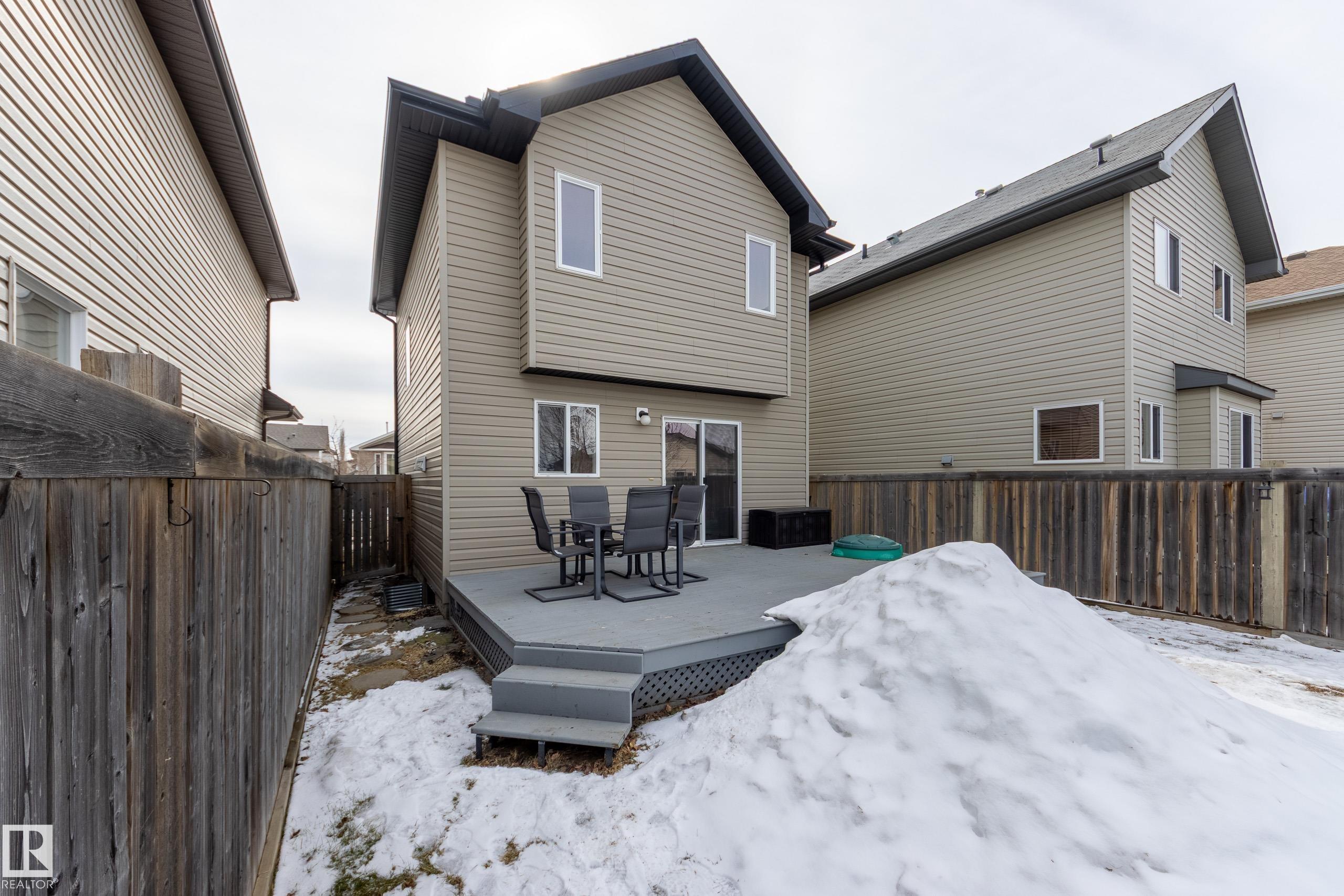 This well-kept home backs onto greenspace and a walking path! Located on a quiet street in Silver Berry, a short walk from parks, lakes and Meadows Rec Centre - perfect for an active family. Stepping into the home you'll find a smart open-concept layout, a spacious entry area and a sunny south-facing living room with big windows and modern laminate floors. The kitchen offers contemporary finishes and tons of storage, plus an adjacent dining room with a large pantry and a patio door to a spacious deck, private back yard, rear parking and greenspace beyond. A half bath completes the main floor. Upstairs you'll find an enormous primary bedroom with dual closets and direct access to a luxurious full bathroom. The 2nd bedroom is oversized as well, with its own walk-in closet. The basement is partly finished for a future family room, bedroom and full bathroom, plus laundry and storage - just needs floors and some finishing touches. Recent upgrades: fresh paint throughout, appliances, toilets and brand new HWT.