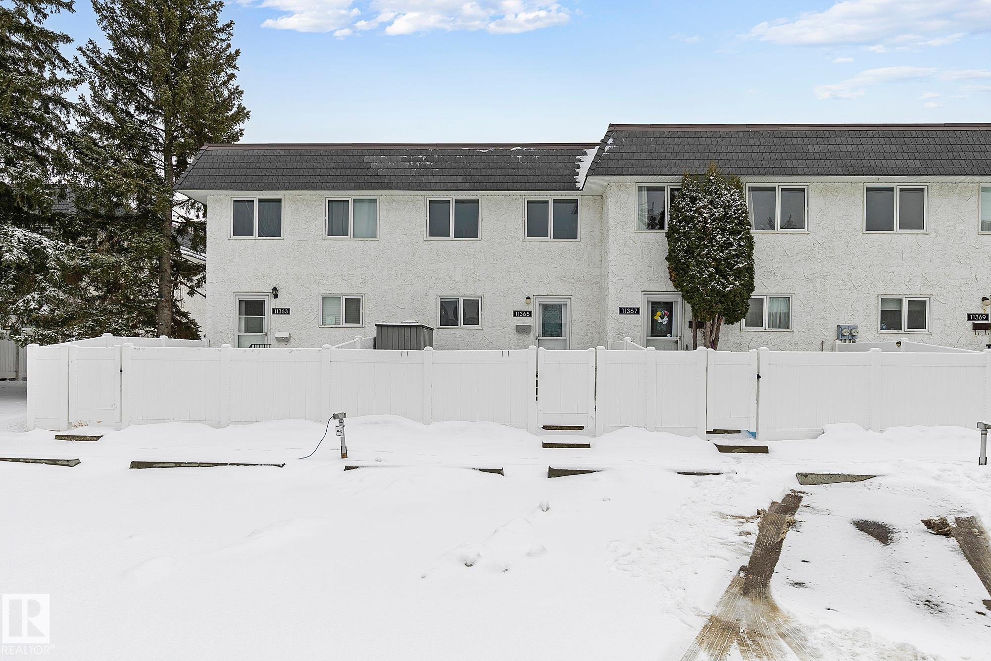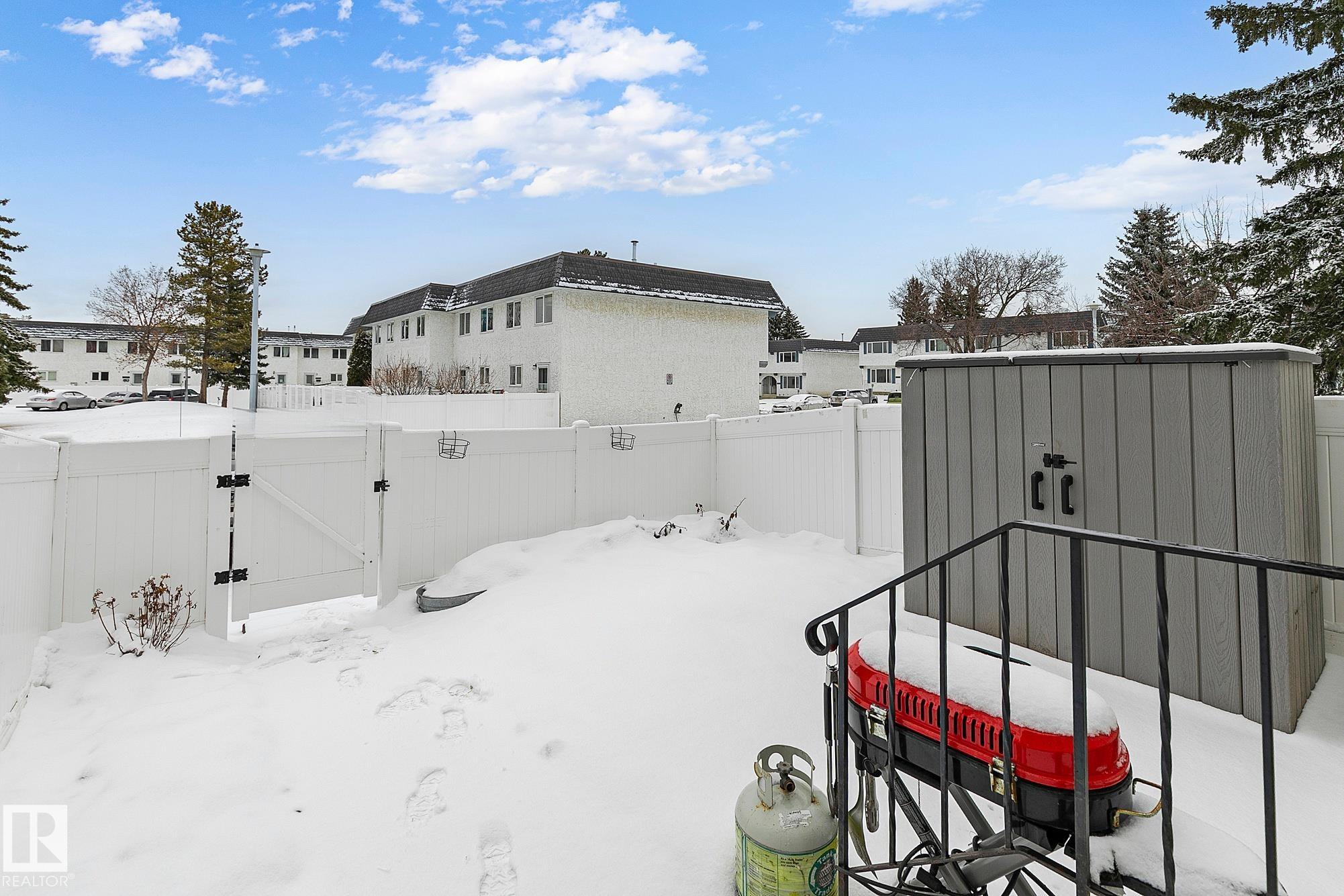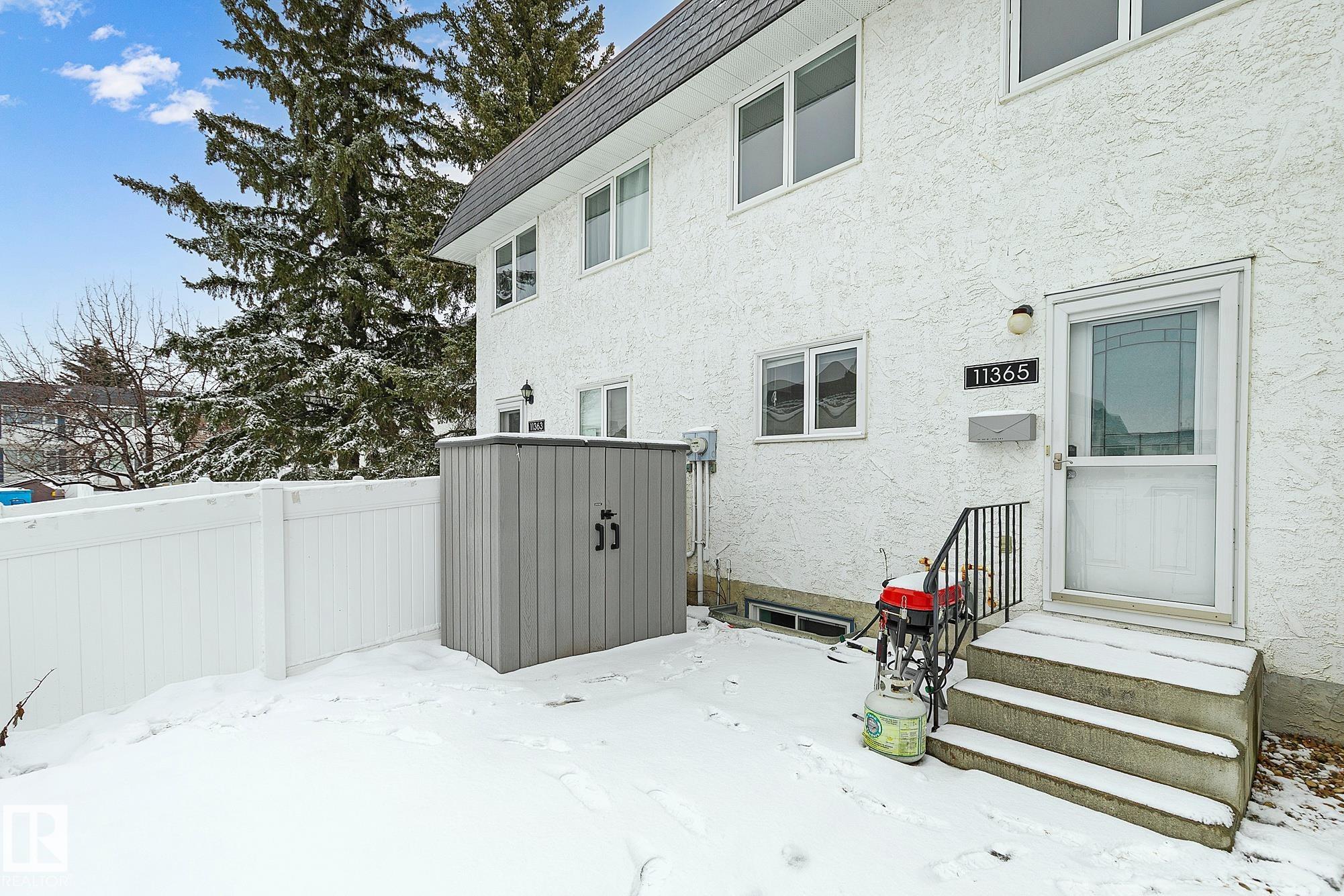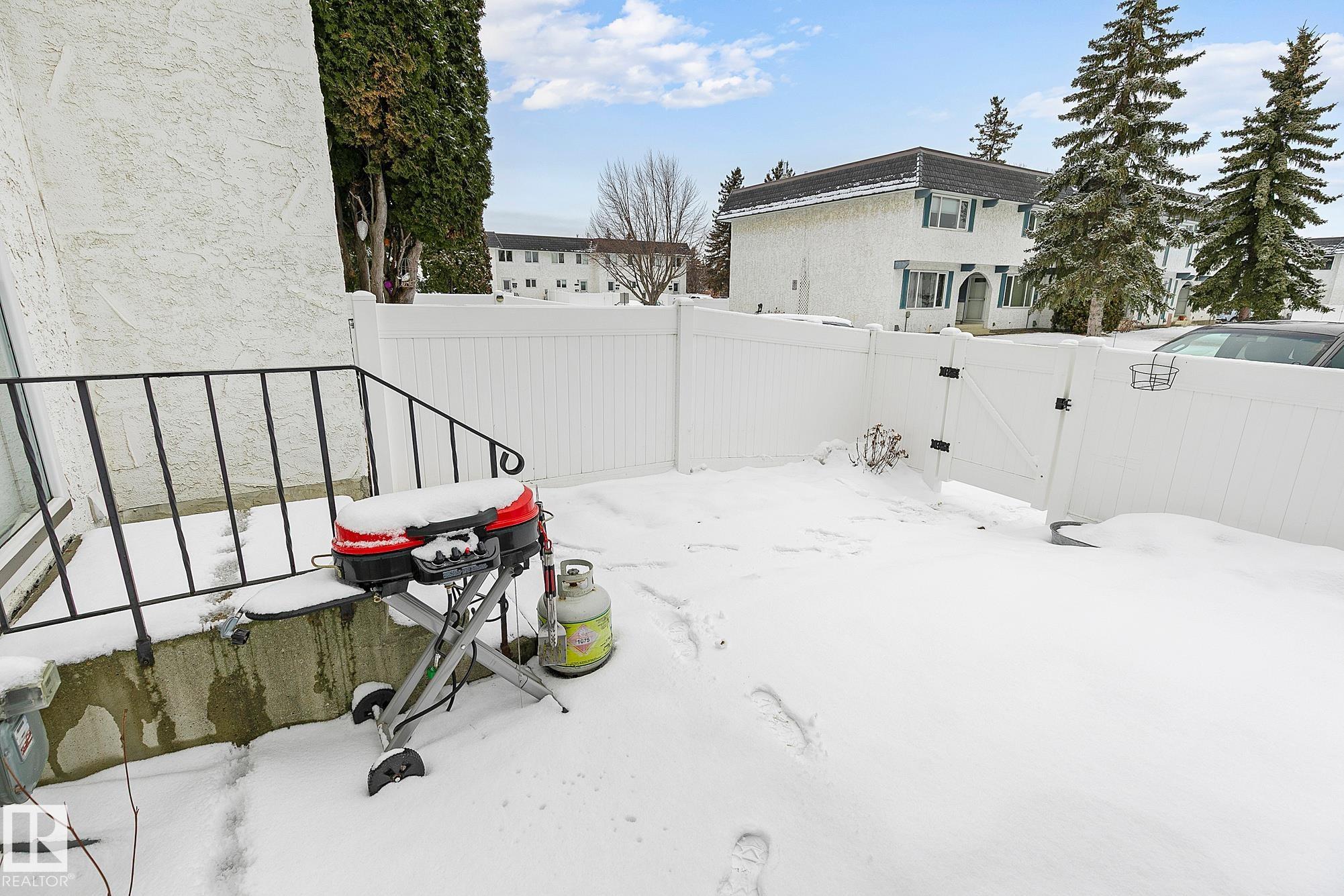 CUTE AS A BUTTON! IDEAL LOCATION! OVERLOOKING GREENSPACE! This renovated 3+1 bedroom 2 storey townhouse is a place you will be proud to call home! The contemporary galley kitchen has modern cabinetry spanning to the ceiling, quartz counters, subway style backsplash & an adjacent eating area. Generous size living room with large picture window & 2pce powder room complete this level. Upstairs offers 3 bedrooms including a spacious primary with double closets plus an updated 4pce main bath. Finished basement has a fourth bedroom, recreation space, laundry room & storage. Bright south facing entrance has tons of natural light & built-in cabinetry for more storage. Private fully fenced backyard has low maintenance vinyl fencing. Other upgrades include furnace, water tank, windows, roofing, durable laminate flooring, paint, carpet & appliances. Well managed complex with reasonable condo fees. Close to ravine and trails! Quick access to Whitemud, Henday & Calgary Trail. MOVE IN!