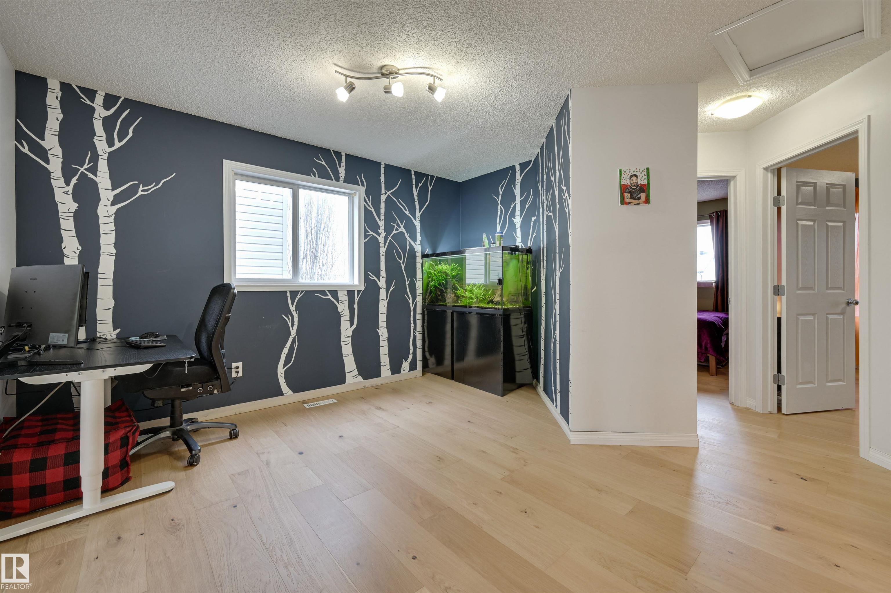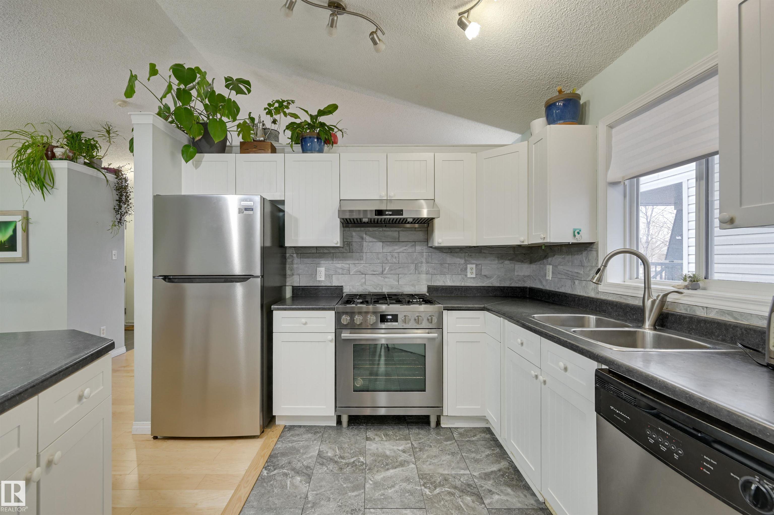Nestled on a quiet, tree-lined street in South Terwillegar, this beautifully maintained home has been exceptionally well cared for and offers a warm, inviting feel throughout. Upon entry, you are welcomed by hardwood flooring and a bright, spacious family room that flows seamlessly into the well-appointed kitchen and dining area. The kitchen features a newer Bosch stainless steel gas range, perfect for those who love to cook, along with ample workspace and storage. Just beyond, the cozy living room is anchored by a gas fireplace, creating the perfect space to relax. Upstairs, you will find two generously sized bedrooms, a loft space (great for an office) and a full bathroom. The lowest level remains unfinished, offering excellent storage or future development potential. Outside, enjoy a sunny backyard and the convenience of a double garage. A fantastic opportunity in a desirable, family-friendly neighbourhood. Some photos are virtually staged.