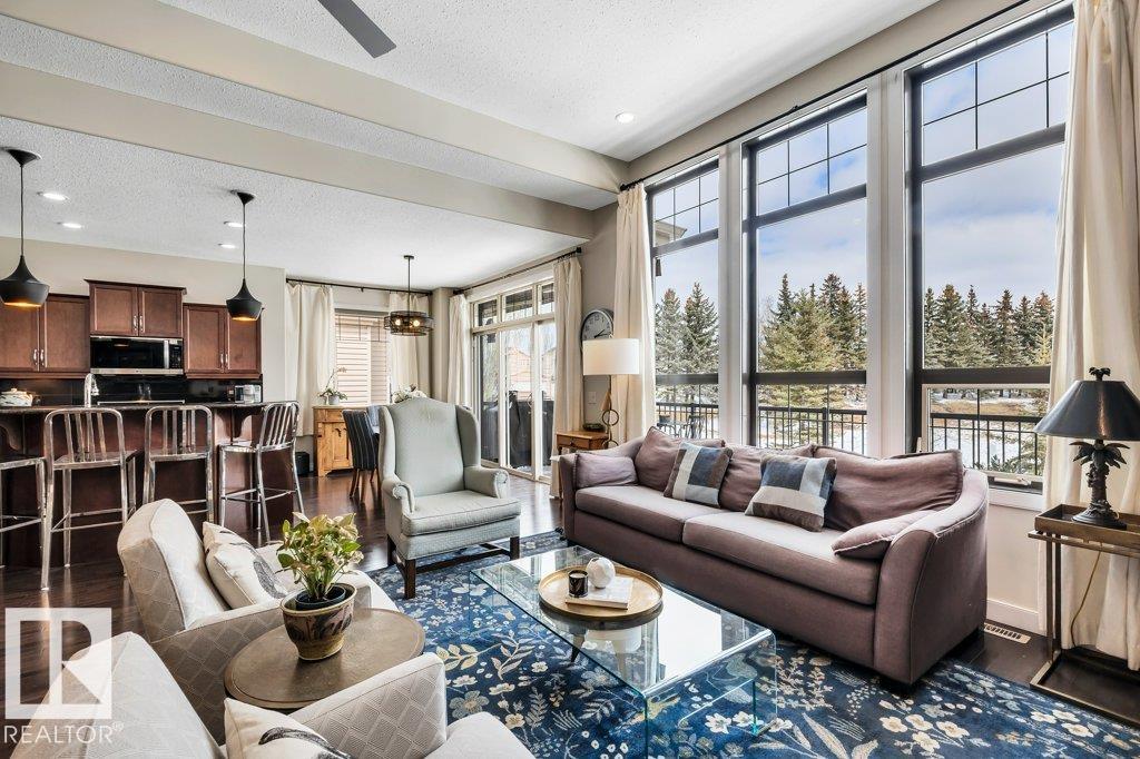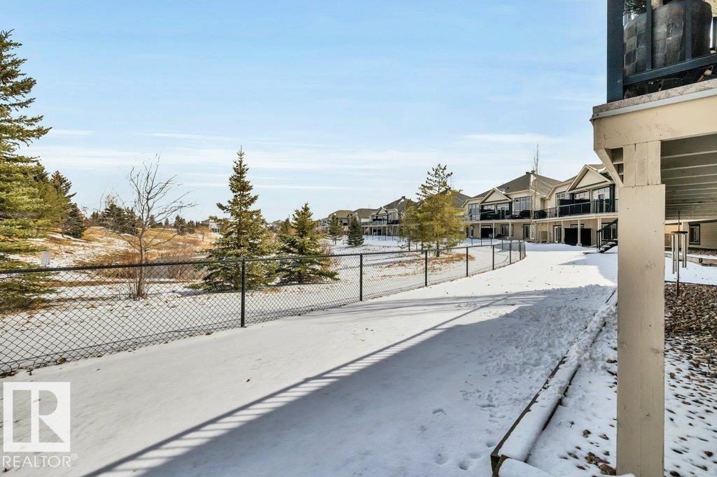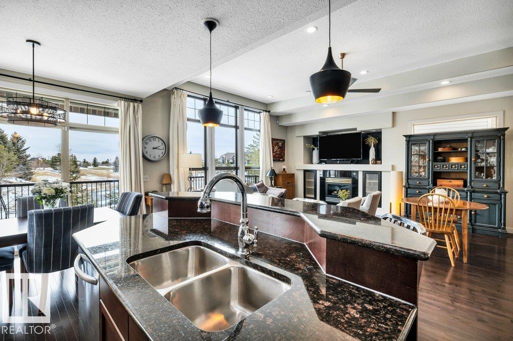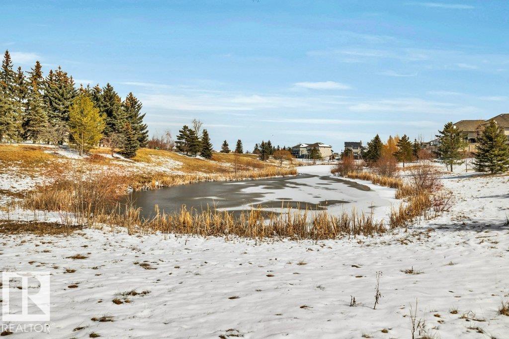 Experience elevated living in this bare land condo - a 1,415 sq ft detached, raised bungalow, set in a quiet oasis overlooking an active wildlife pond. Upstairs find a den/home office inside the front entry. A bright kitchen features maple cabinets, granite counters, island w/ raised bar & a pantry. Sliding glass doors in dining area open onto a 10'ž28' deck w/ retractable awning allowing for sheltered outdoor living. The great room has enormous windows, a gas FP with side storage & recessed shelving above. Primary bedroom includes a newer 4-pc ensuite w/ spa shower, excellent storage & a walk-in closet. Also find a 2-pce guest bath with a laundry room beyond. The fully finished lower level has large windows in the family & games/sewing rooms w/ a 2-sided gas FP & wet bar. 2 additional bedrooms, 4-pc bath & ample storage complete the home. Double attached insulated garage has H&C taps. Landscaping with underground sprinklers, mowing & snow removal all taken care of for you! New shingles 2025.