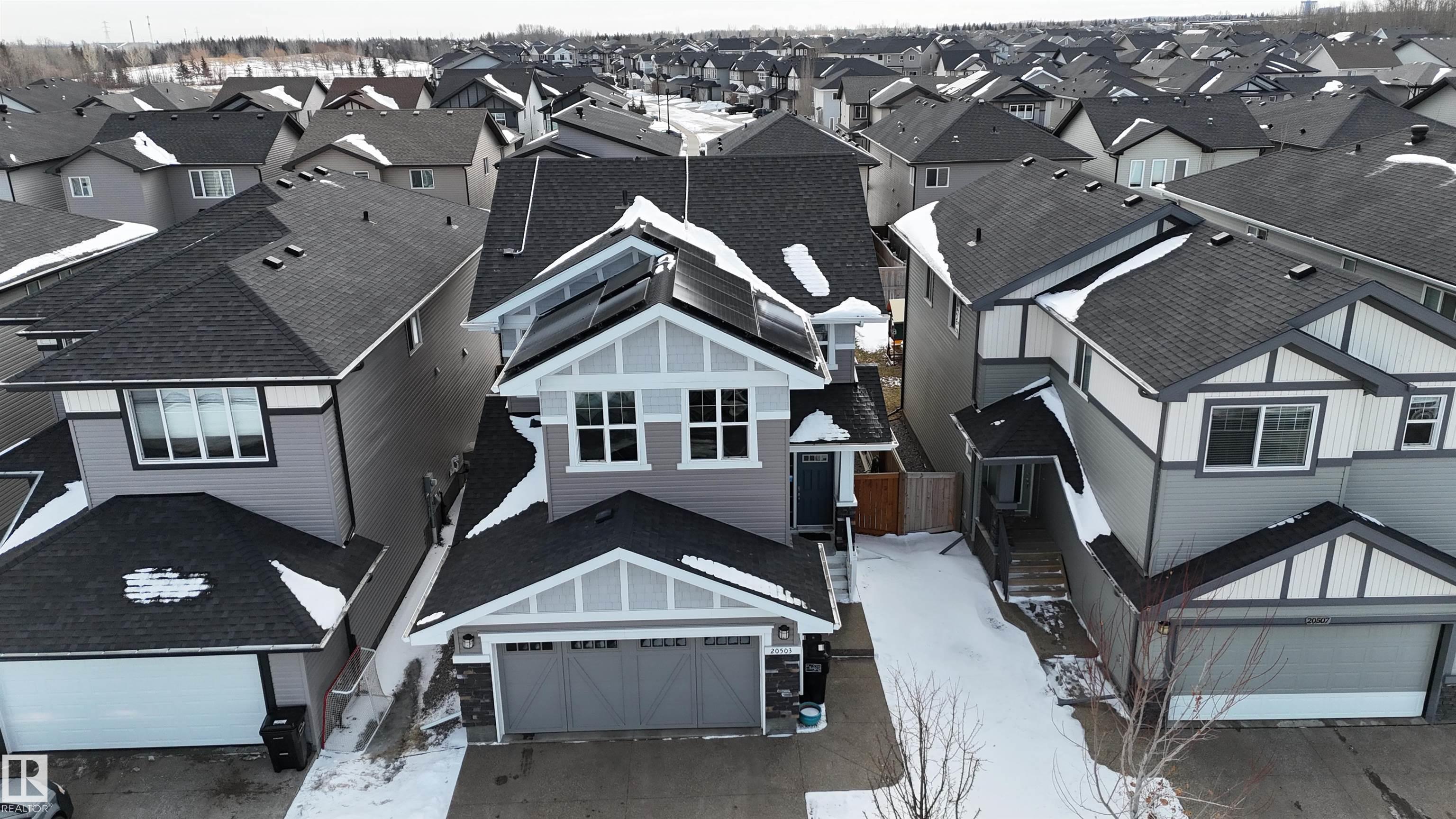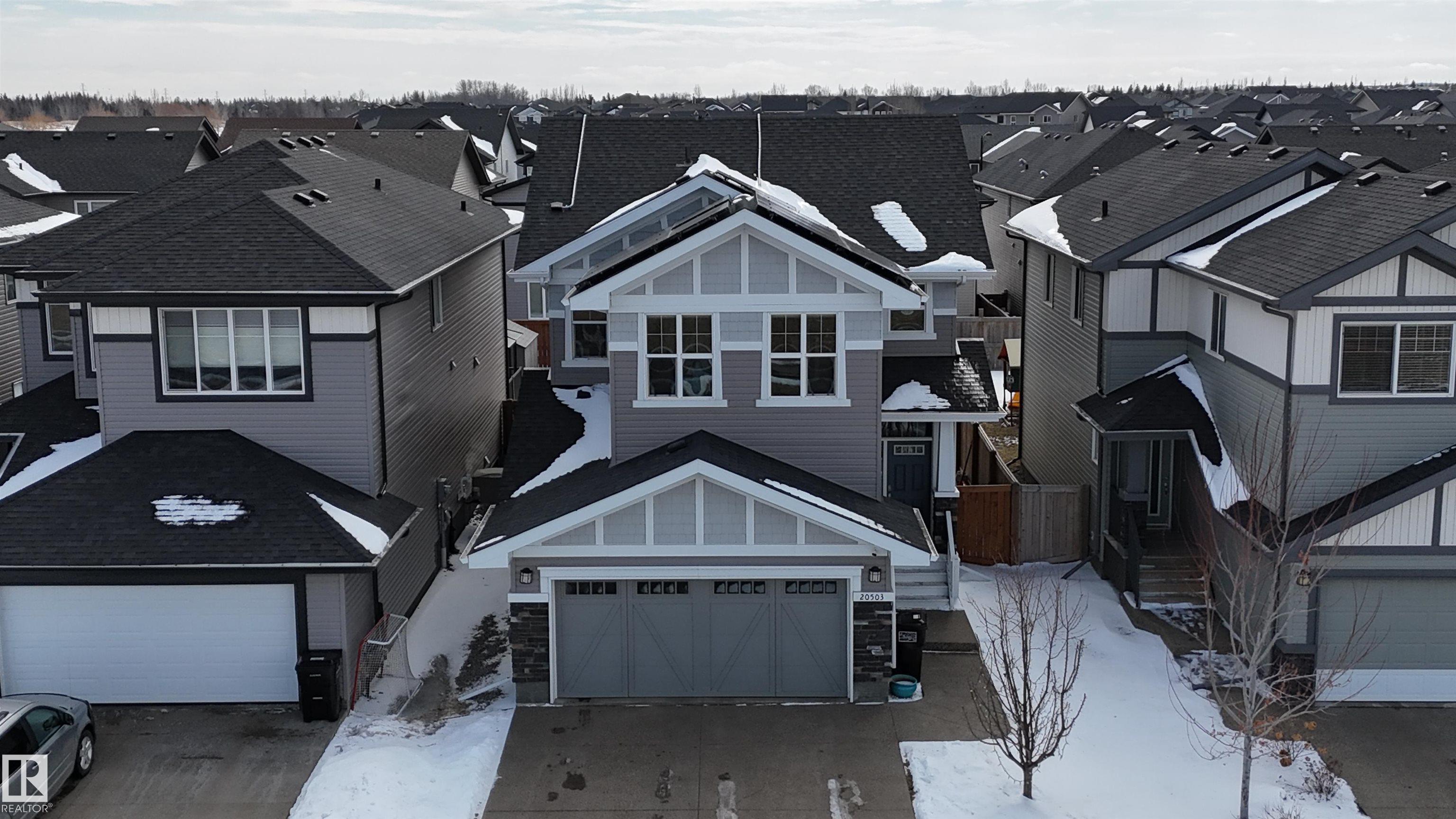 Welcome to this stunning executive home by award-winning Daytona Homes, offering over 2,000 sqft in the sought-after Austin floor plan. A spacious foyer leads into a bright open concept main floor with 9' ceilings & seamless laminate flooring throughout. The chef-inspired kitchen features upgraded cabinetry, quartz countertops, s/s appliances and walk-thru pantry with prep sink & added storage. The living room is filled with natural light from large south-facing windows & anchored by a cozy gas fireplace with custom built-ins. Upstairs offers a large bonus room, convenient laundry and 3 generous bedrooms. The primary suite is a true retreat with a modern linear fireplace, massive walk-in closet and spa-like 5-piece ensuite.As an added perk, this home has been equipped with SOLAR PANELS and CENTRAL A/C- enjoy the added value of energy-efficiencies and save on those winter heating bills. Close to parks, trails and amenities - this is the perfect place to call home.