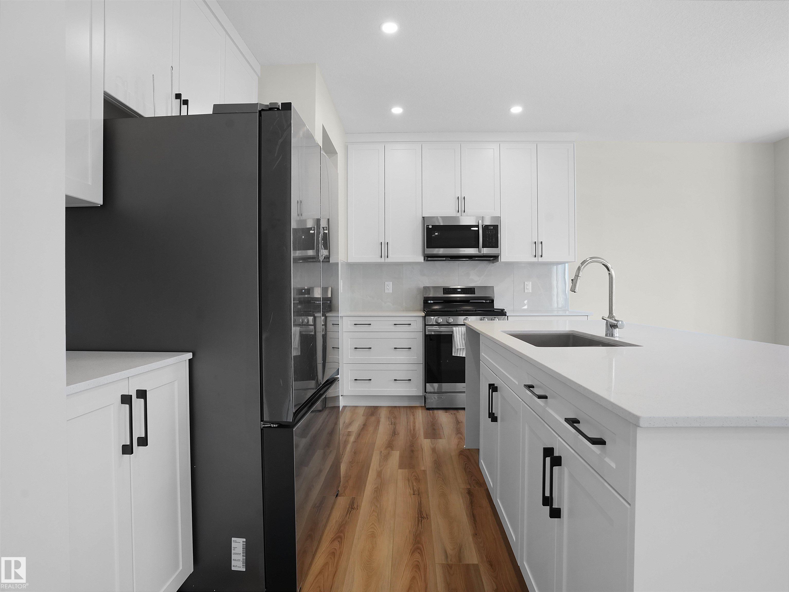 Your perfect family home awaits in a vibrant community!!Step into modern living with this stunning detached home featuring 4 bedrooms, 2.5 baths, and a versatile main floor den/office. The open-concept main floor boasts 9' ceilings, a stylish half bath, and a dream kitchen with quartz counters, upgraded ceiling-height cabinets, double sink, premium appliances with 5-year Costco warranty, plus a prep kitchen and walk-in pantry. Upstairs offers a bonus room, laundry, full bath, and 4 bedrooms including a luxurious primary suite with walk-in closet, double sinks, soaker tub, and separate shower. Added perks include a double attached garage, side entrance, rear gas line, 9' basement with bath rough-ins, upgraded baseboards, and front landscaping. The community features parks, future schools, shops, a wetland reserve, and recreation options. HOA fee applies. Quick possession available.