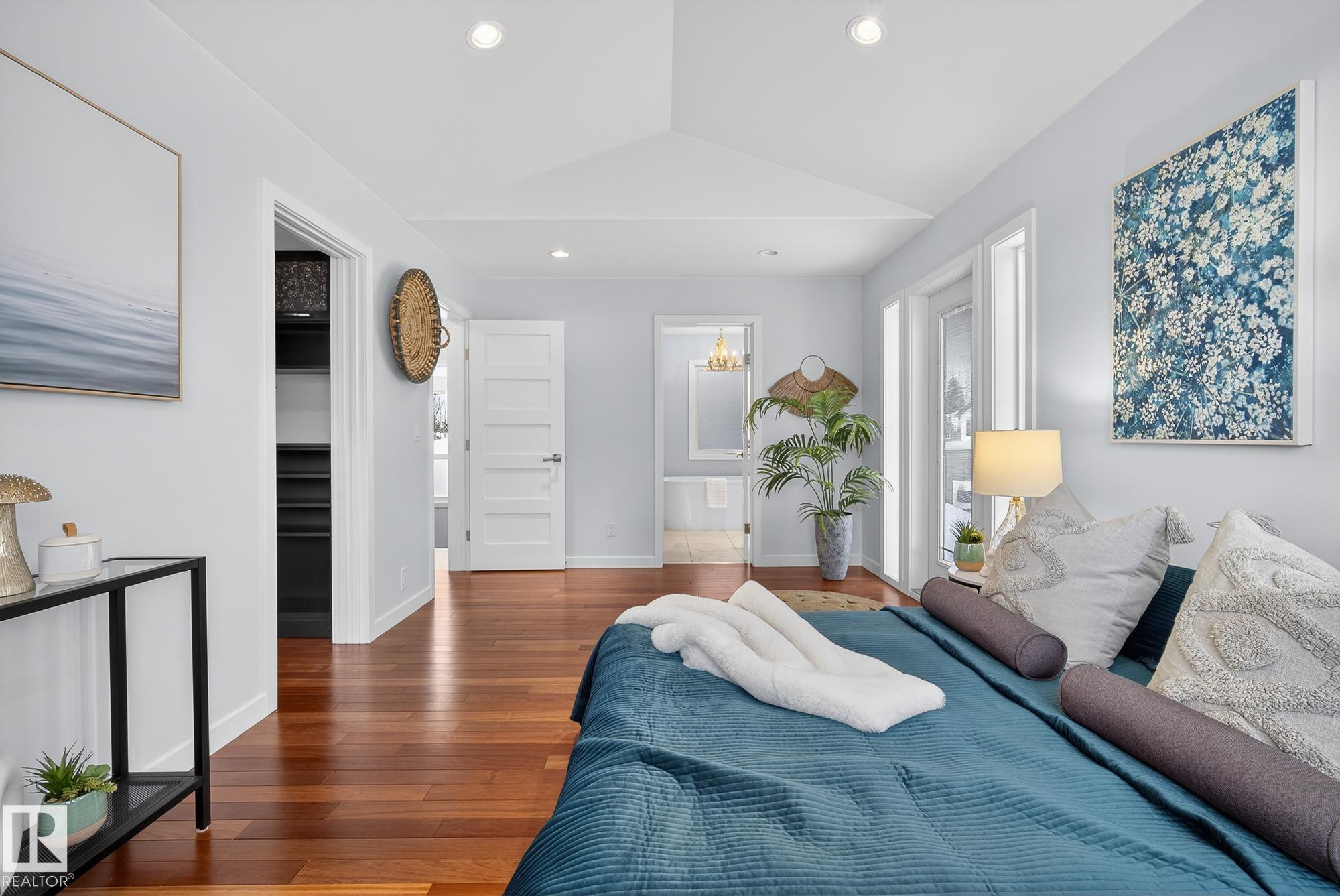 Beautifully renovated two-storey home with a legal 1-bedroom basement suite, ideally situated on a corner lot facing Strathearn Park and just steps from the trail system. This property offers 5 bedrooms, 3.5 bathrooms, and a double detached garage--perfect for families or investors alike. The bright main level features a functional layout highlighted by Brazilian cherry hardwood flooring and access to a wrap-around deck, ideal for entertaining or enjoying park views. Upstairs, the spacious primary bedroom includes a private balcony overlooking the green space and an ensuite finished with elegant marble tile. The legal basement suite provides excellent income potential or comfortable space for extended family. Move-in ready with modern updates throughout, this home combines comfort, versatility, and an unbeatable park-side location.