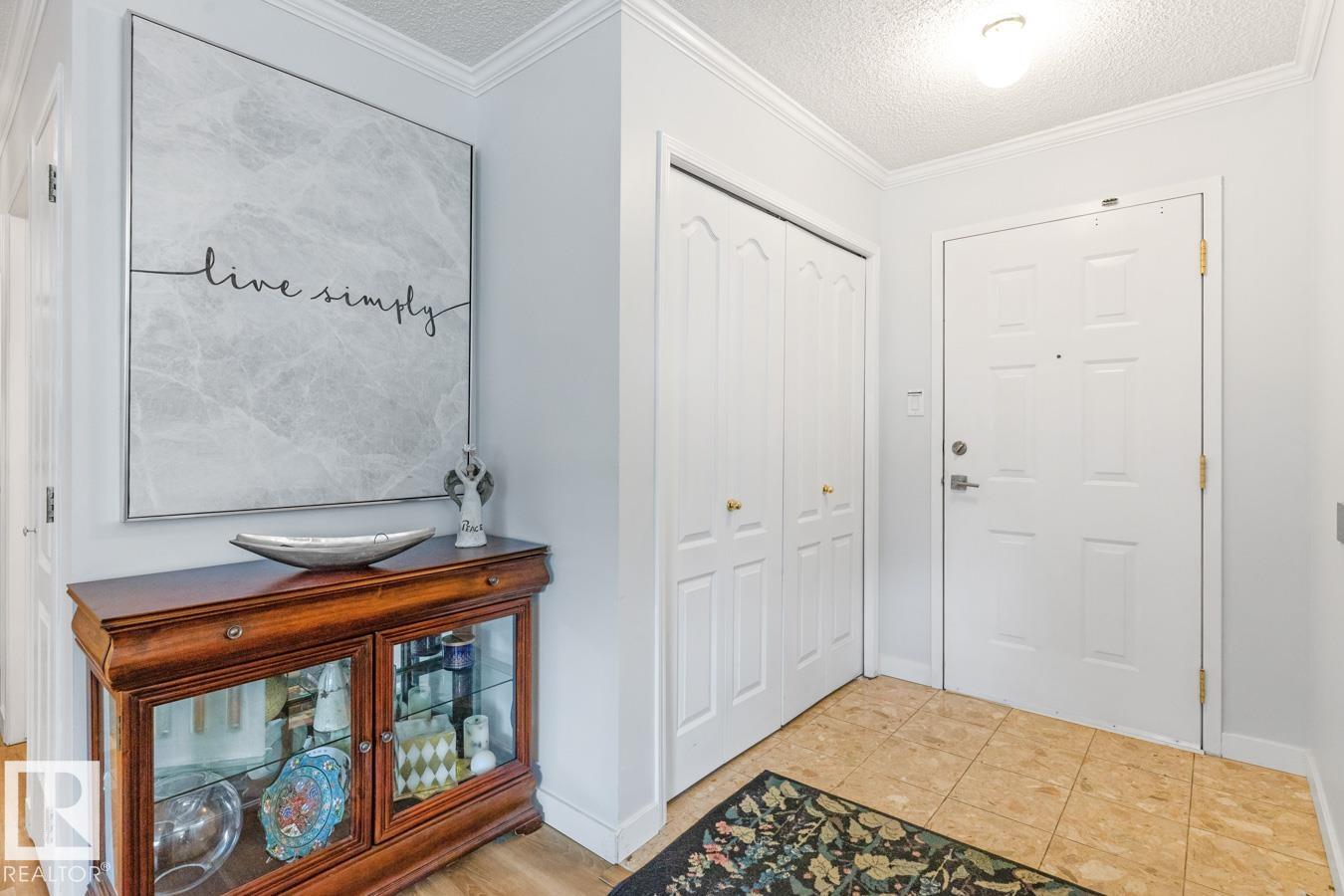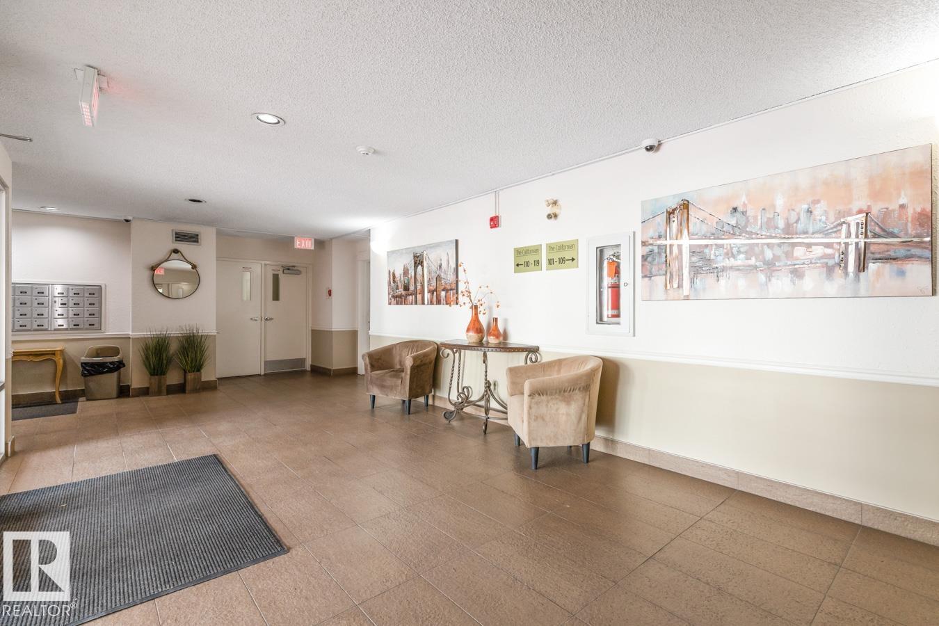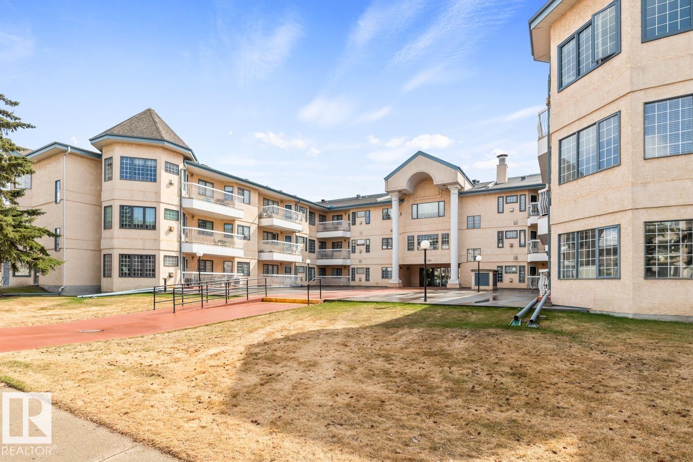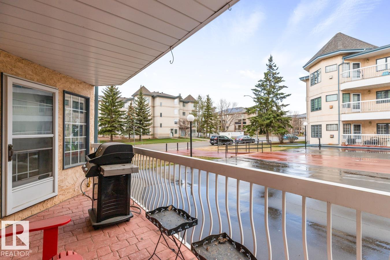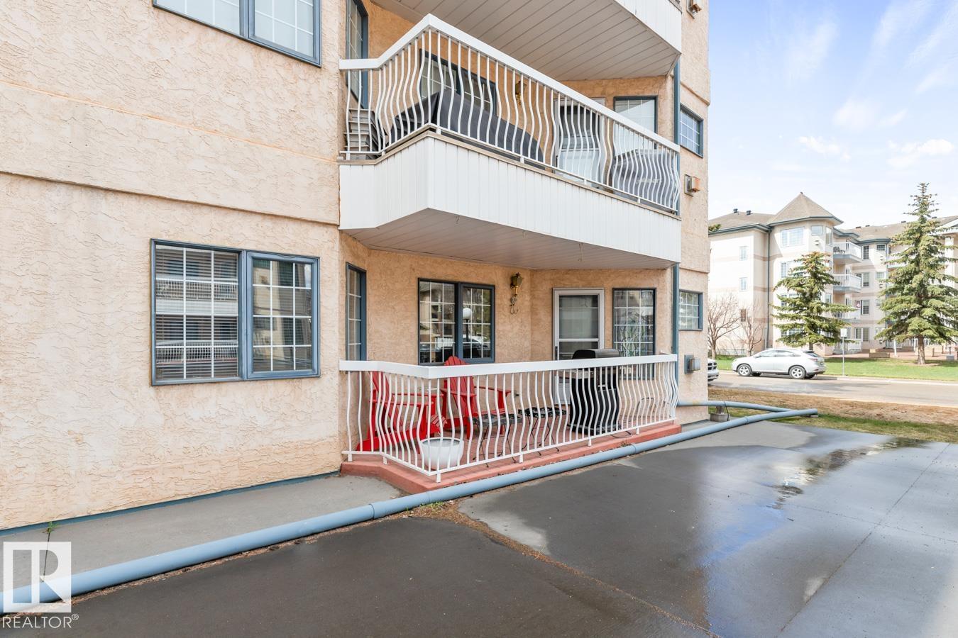 Delightful 2 bedroom 2 Bath nicely renovated corner unit. Entertaining size living room with a gas fireplace and a garden door leading out to an east facing patio. The wrap around windows allow for lots of light. U shape kitchen with upgraded stainless steel appliances opens onto the dining room. Master suite has his and her closets and a ensuite bathroom with a shower. Second bedroom could be used as a den as it opens onto the living room. There is also a second full bathroom. This suite has been recently painted and newer vinyl flooring throughout. This is a 18+, pet free building with 2 underground parking stalls (Tandem) and a storage room in front of the stall. Patio area has gas BBQ hook ups. There is also a meeting/event room and a library. Located in Summerlea within walking distance to Terra Losa Shopping, banking, groceries, restaurants, West Edmonton Mall, and public transportation. Condo fees include heat, water, and basic cable. Easy access to outside the exit door just steps away.