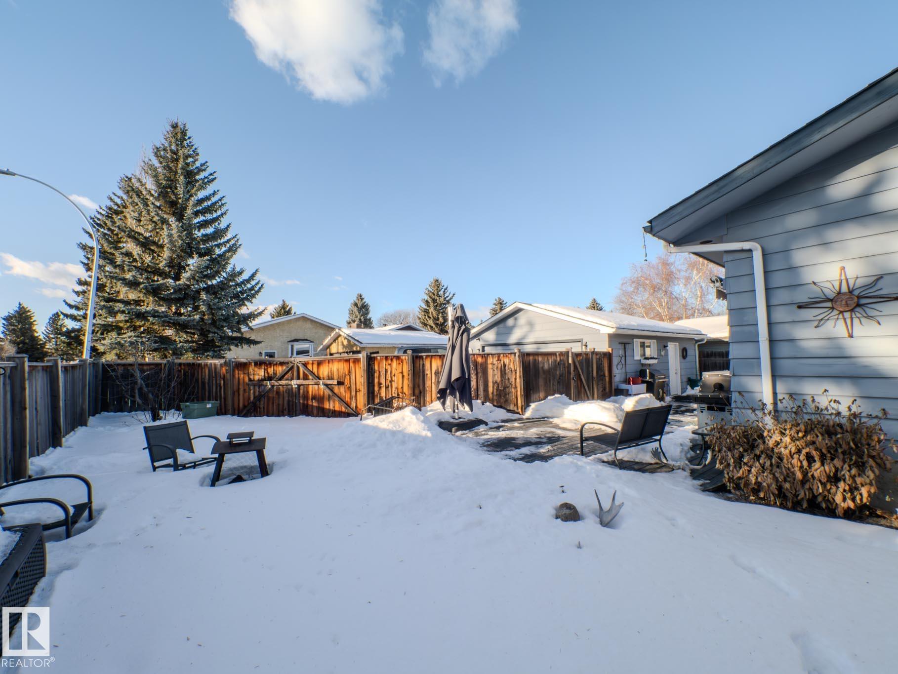 CORNER LOT BUNGALOW! Step inside this cute-as-a-button bungalow tucked away in the desirable community of Sweet Grass.Inviting living room is anchored by a charming white brick fireplace with custom built-in shelving, creating a cozy yet functional focal point. Large windows flood the space w/ natural light. Bright & elegant dining room showcases crown moulding & decorative wall decals. Functional kitchen ft. timeless white cabinetry, black appliances, mosaic tile backsplash & ample counter space.Peninsula w/seating is perfect for morning coffee. Primary suite offers walk-in closet with custom built-ins & well-designed ensuite w/separate sink area. Main floor is completed by 3 spacious bedrooms and full bathrm w/undermounted sink & dark wood vanity. Fully finished basement ft. rec area w/ bar, generous bedroom, full bathrm, ample storage & separate work shop. Outside, enjoy a WEST-FACING, fully landscaped backyard with hot tub, double detached garage &RV parking. Come in,fall in love & call it home!