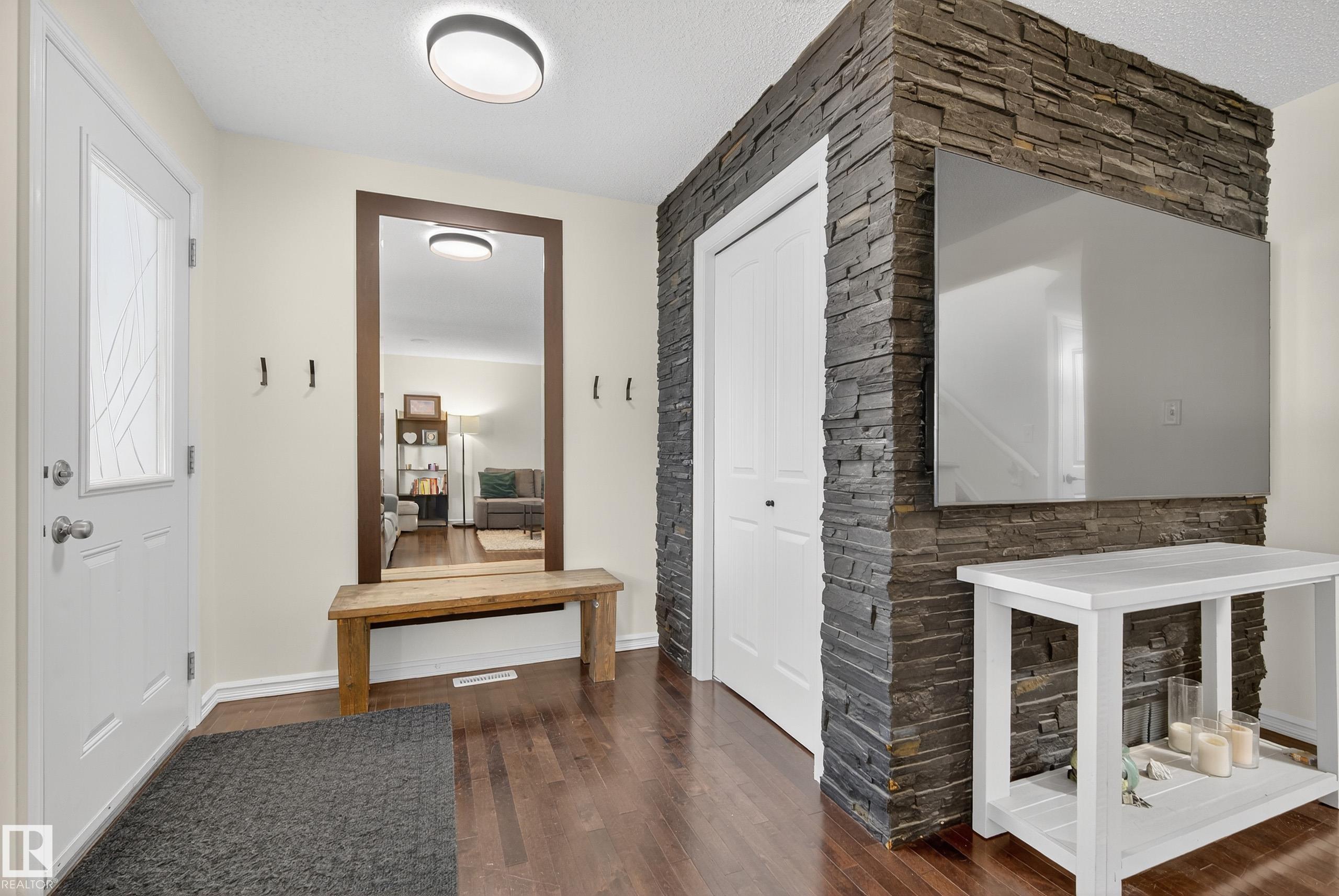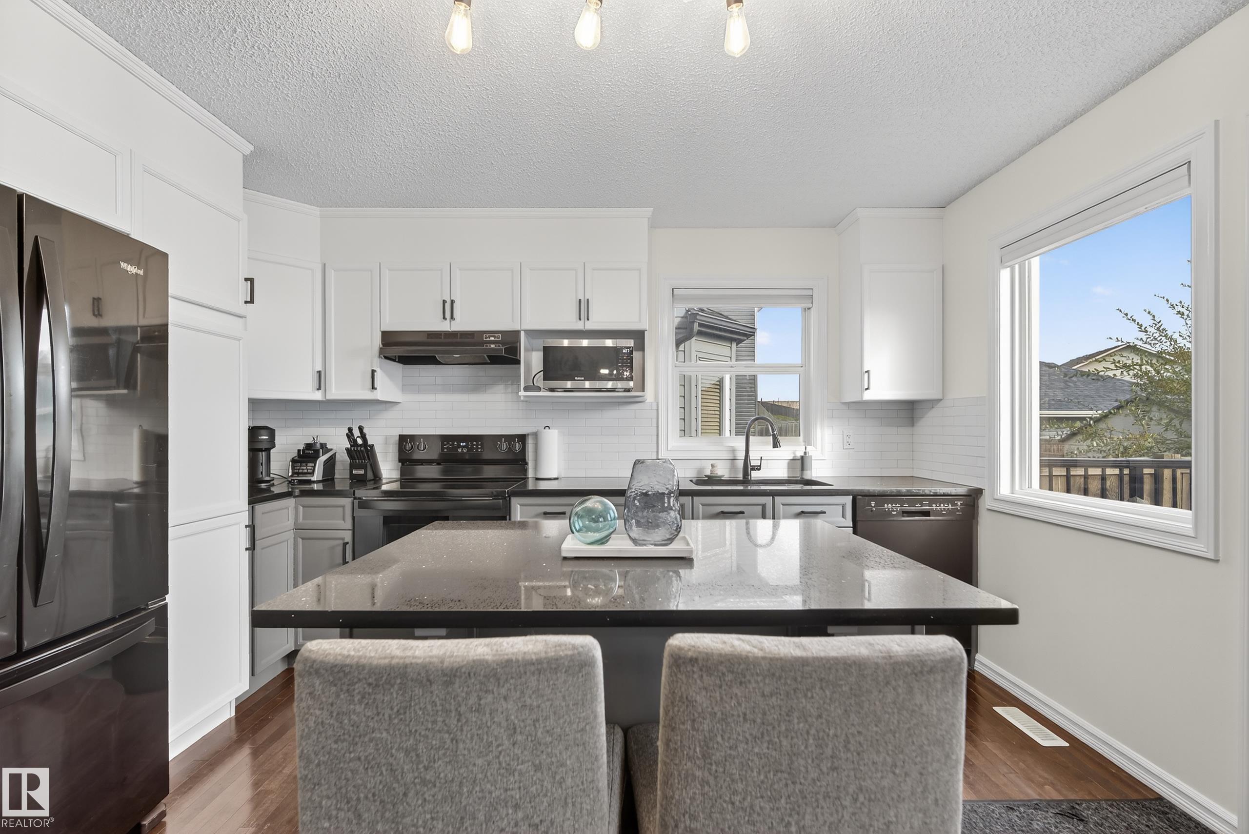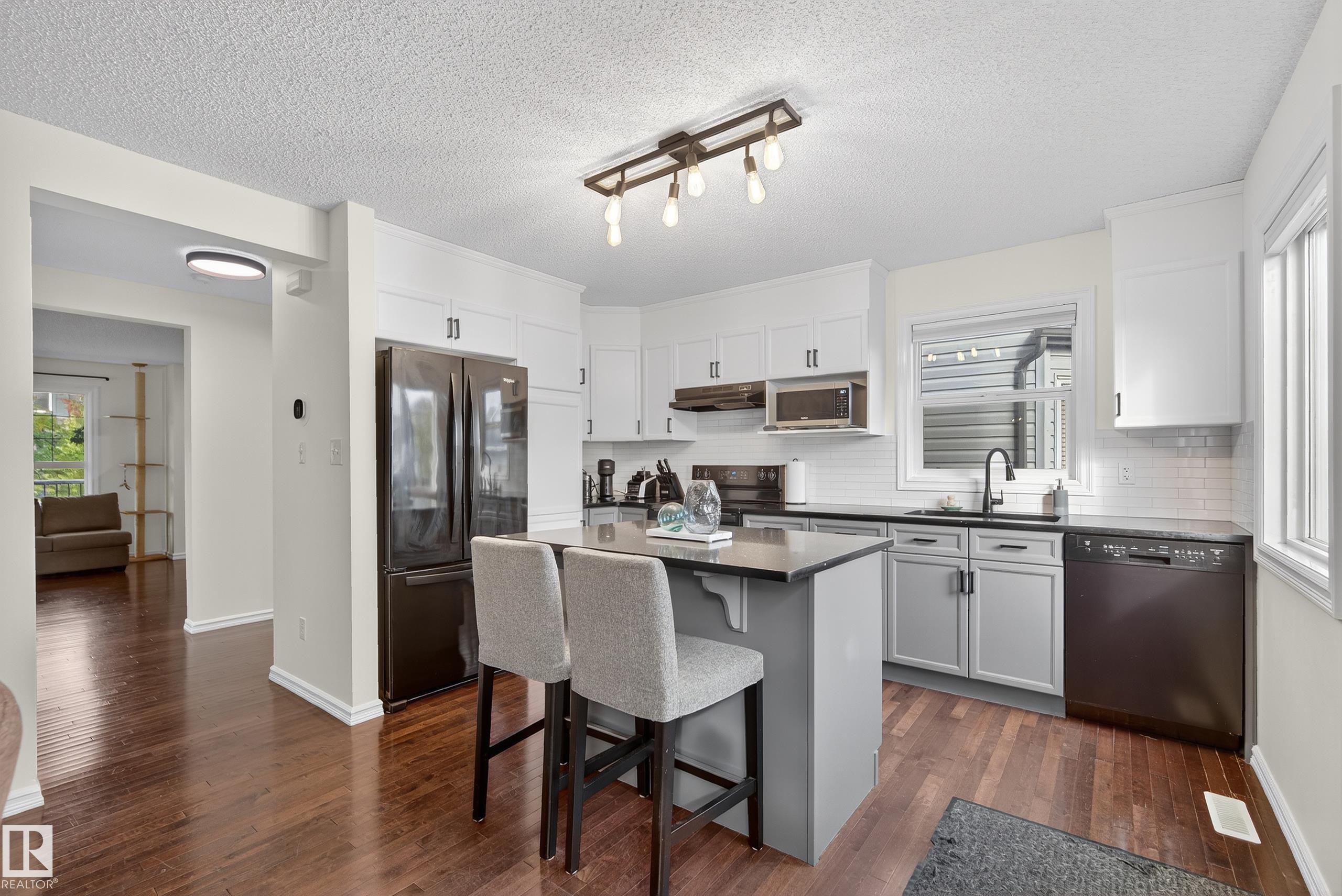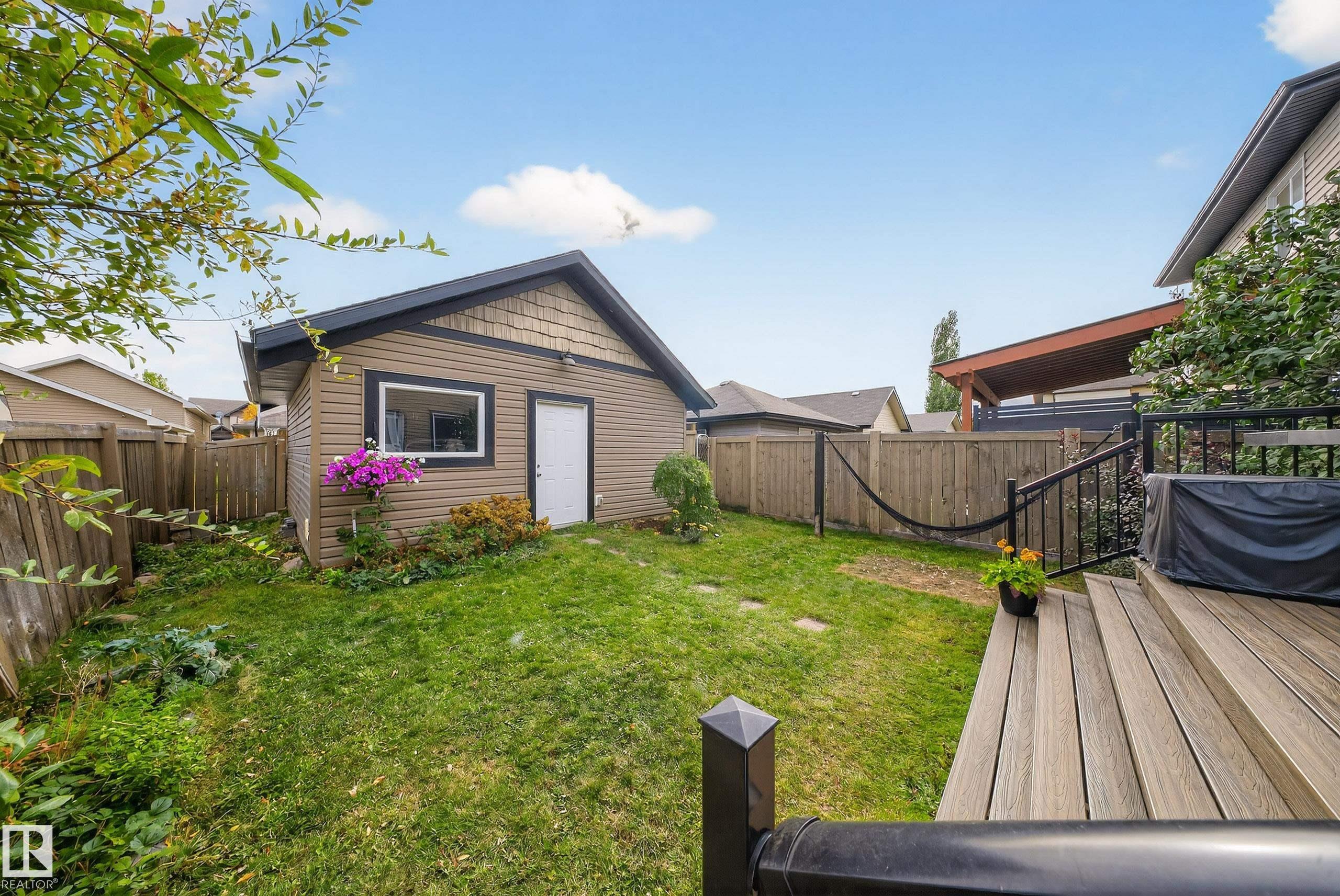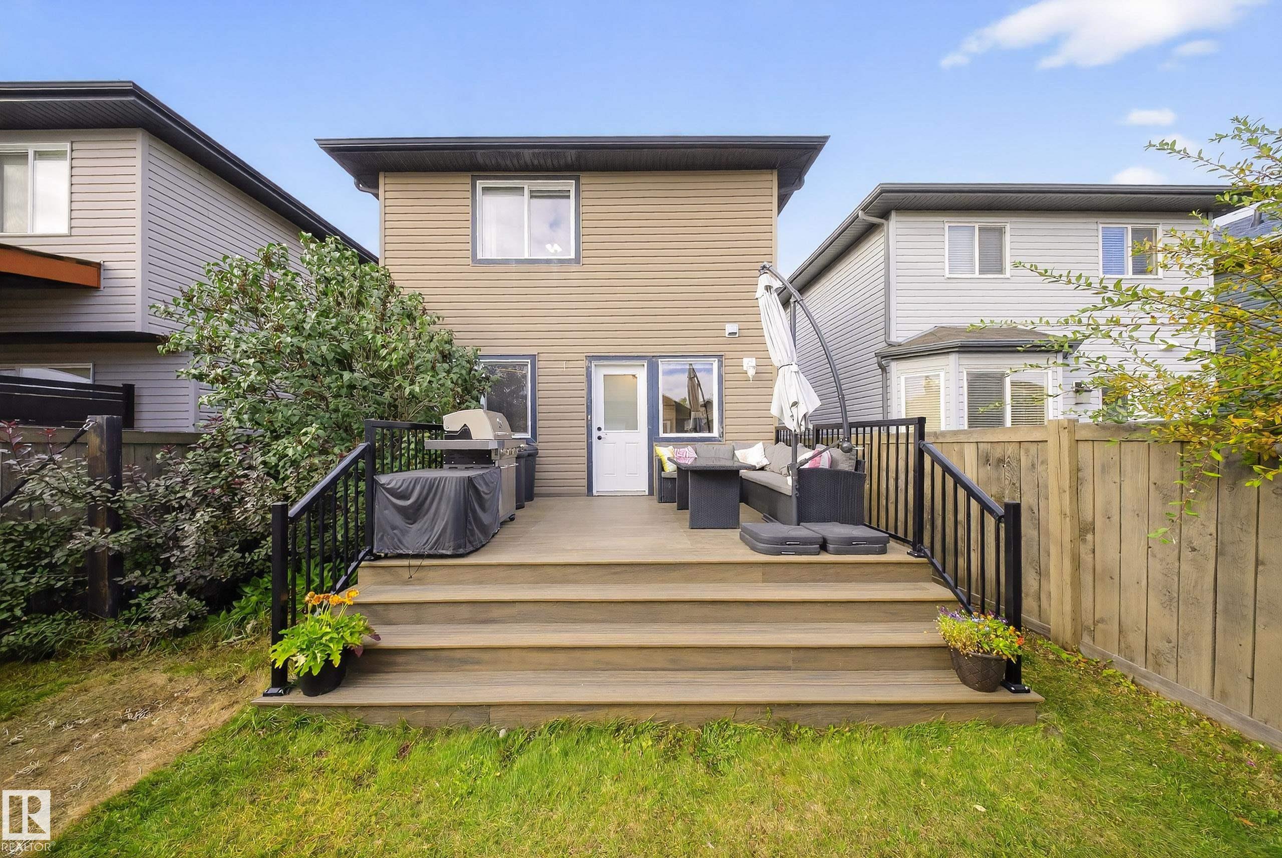 Welcome to this beautifully maintained home in the family-friendly community of Tamarack! This inviting property features an open-concept main floor with a bright living room, spacious dining area, and a stylish kitchen with quartz countertops, sleek black appliances, and an island perfect for entertaining. Enjoy the convenience of main floor laundry room and a 2 pc powder room. Upstairs, you'll find three generous bedrooms, including a primary suite with a walk-in closet and private ensuite. Walk downstairs and you'll be greeted by a fully finished basement offering extra living space, plus a den/bedroom, 3 pc bathroom, and a utility room. Outside, relax on the deck overlooking the landscaped yard with a double detached garage. Ideally located near schools, parks, shopping, and public transit--this home is move-in ready and perfect for growing families!