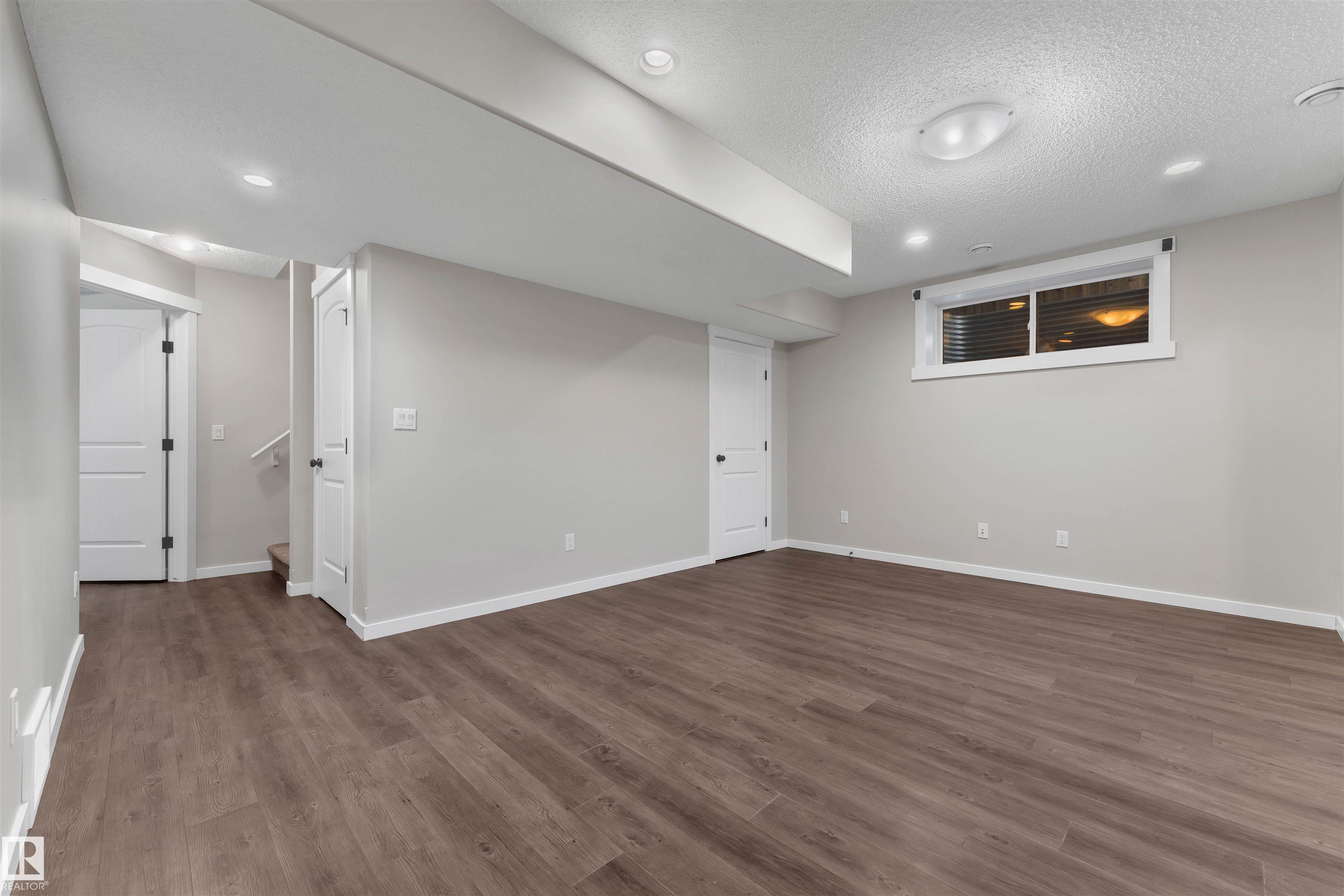 Welcome to this beautiful home located in the desirable community of Tamarack, perfectly situated on a quiet crescent with no neighbours at the back and backing onto a peaceful walking trail. This contemporary open-plan design offers a bright kitchen that overlooks the great room, highlighted by a stunning stone feature fireplace. The kitchen includes hardwood flooring, stainless steel appliances, and a huge walk-in pantry. The spacious master bedroom features a walk-in closet and a large ensuite complete with his and her sinks and a jetted tub. The professionally finished basement offers vinyl plank flooring, a full bathroom, and a huge family room--ideal for extra living space. Additional features include 9 ft main-floor ceilings, second-floor laundry, built-in speakers, and a raised deck to enjoy the outdoors. Conveniently located within walking distance to Walmart, close to Gym, a school at walking distance and near the rec centre. This home combines comfort, convenience, and an excellent location.
