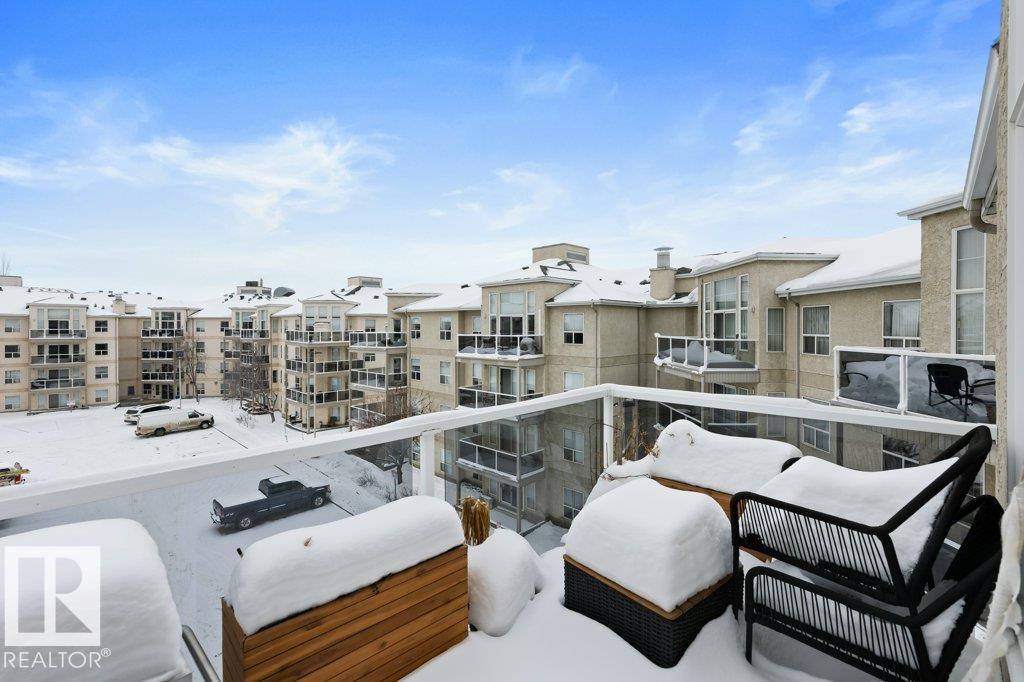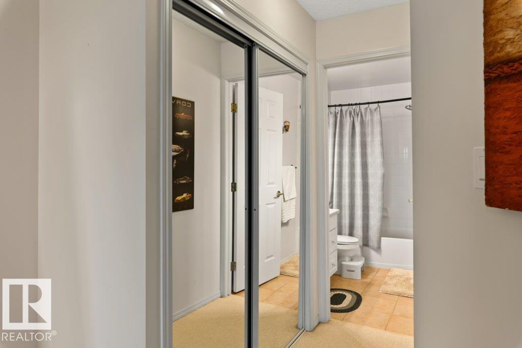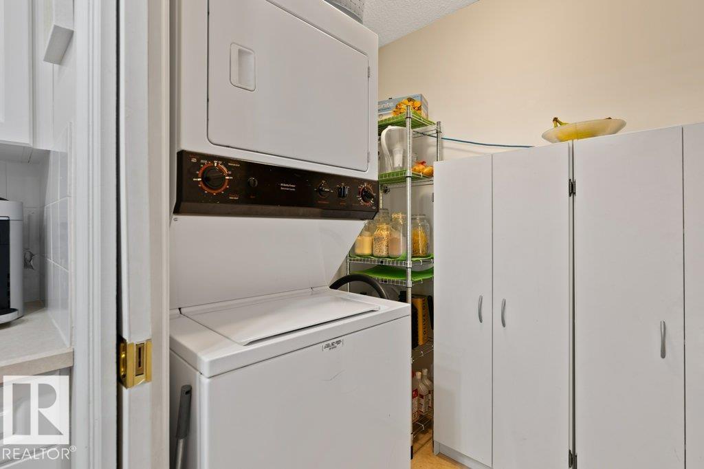 Sun-filled TOP FLOOR, SOUTH-facing condo that shows beautifully! This meticulously maintained 2 bedrooms, 2 bath unit includes a TITLED UNDERGROUND parking stall w/ STORAGE cage & an abundance of windows that bring in natural light all day long.The layout is functional & spacious, featuring a kitchen w/ white cabinetry, plenty of counter space, & smart storage w/ a tucked-away PANTRY plus IN-SUITE laundry.The bedrooms are thoughtfully positioned on opposite sides of the unit, making it ideal for roommates, guests, or home office setup. The primary bedroom easily accommodates a king bed & additional furniture w/ a private 4-pc ENSUITE. A separate 3-pc bath is conveniently located near the 2nd bedroom. Enjoy great building amenities including social rooms and exercise/gym space, along with nearby walking trails. Fantastic location close to public transit, shopping, and quick access to the Henday Whitemud & 16A - perfect for investors or anyone looking for a quiet, low-maintenance lifestyle. A MUST SEE!