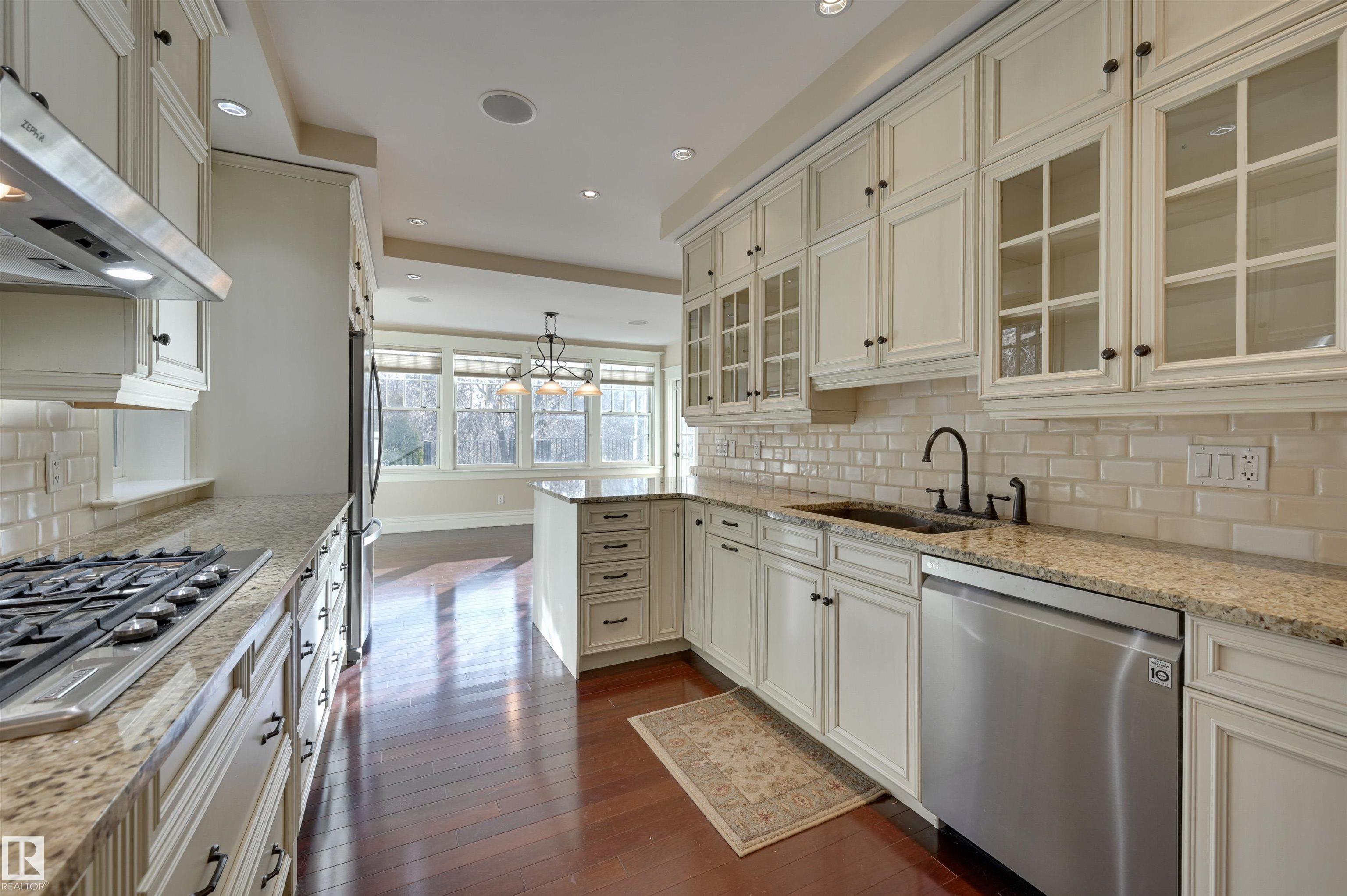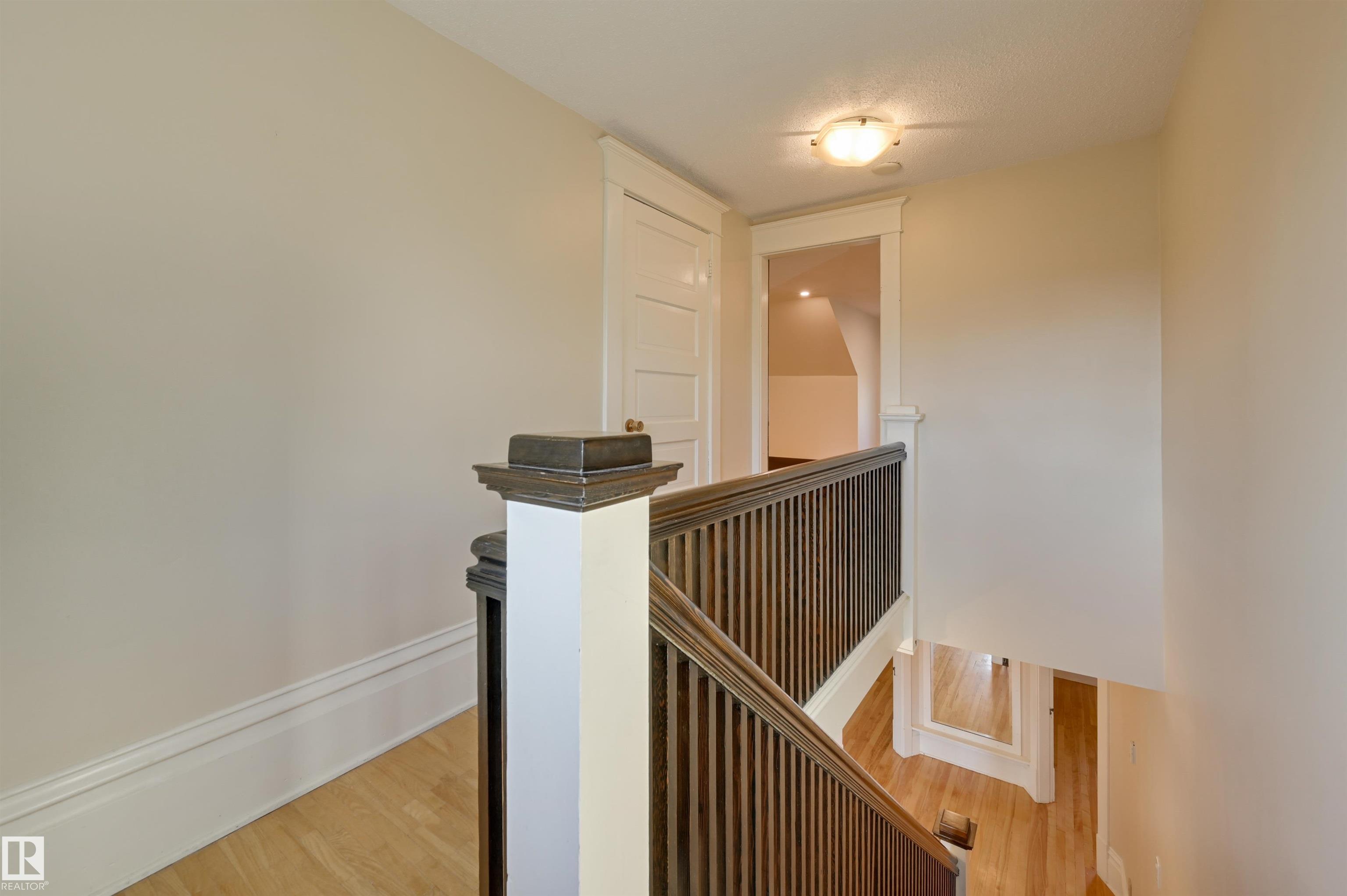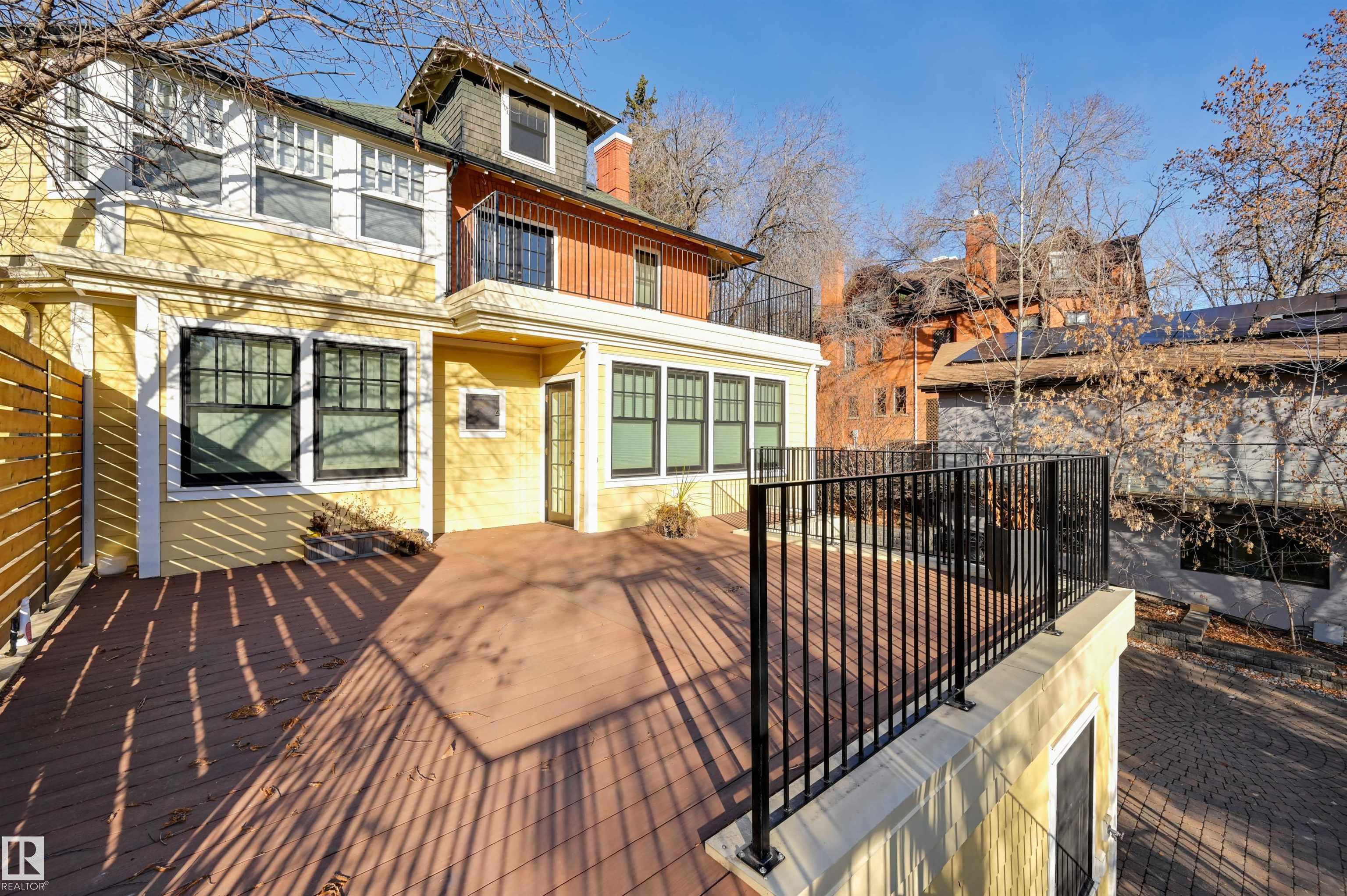 An exceptional blend of historic character & modern luxury in one of Edmonton's most cherished neighbourhoods. Situated on a rare 1/3 acre ravine lot in Historic Westmount, this grand 1912 residence has been lovingly modernized & has so much to offer. This impressive 6 bedroom, 4 bathroom estate has been extensively renovated. The main floor features a regal living room with a beautiful fireplace, & spacious dining area - great for entertaining. Next is the fully renovated, south-facing chef's kitchenÿwith breakfast nook - offering deck access & unobstructed river valley views. The floor is complete with a full bathroom & bedroom/office. Upstairs is the primary suite featuring a fireplace, walk-in closet and spa-like ensuiteÿw/ heated floors & clawfoot soaker tub. Two more bedrooms, laundry, full bath & deck complete the level. 5th bedroom or flex room with excellent storage on 3rd level. Fully finished walk out basement with heated mudroom & full bath, bedroom, bonus room w/ fireplace, attached garage!