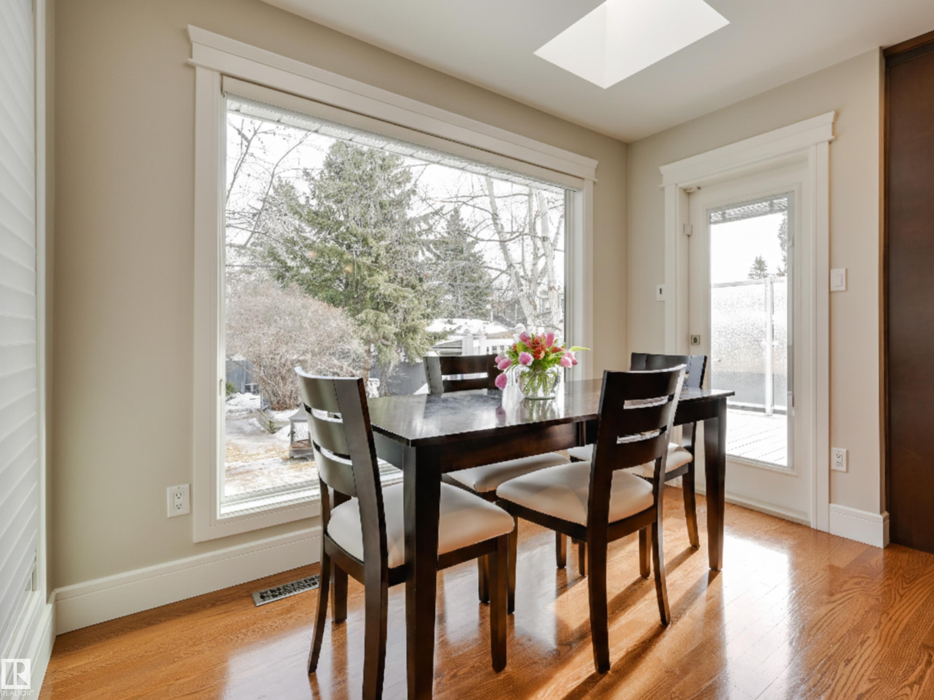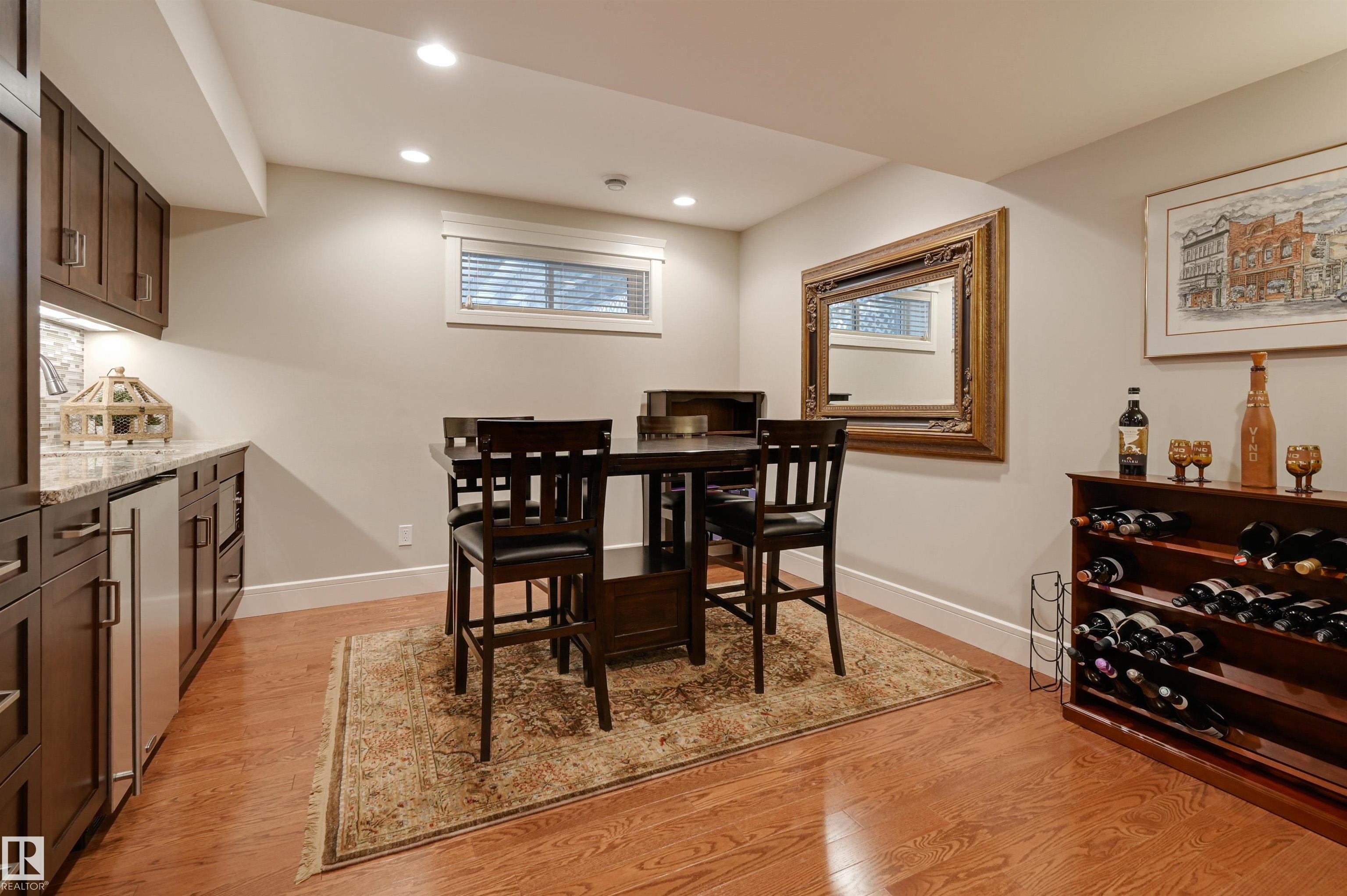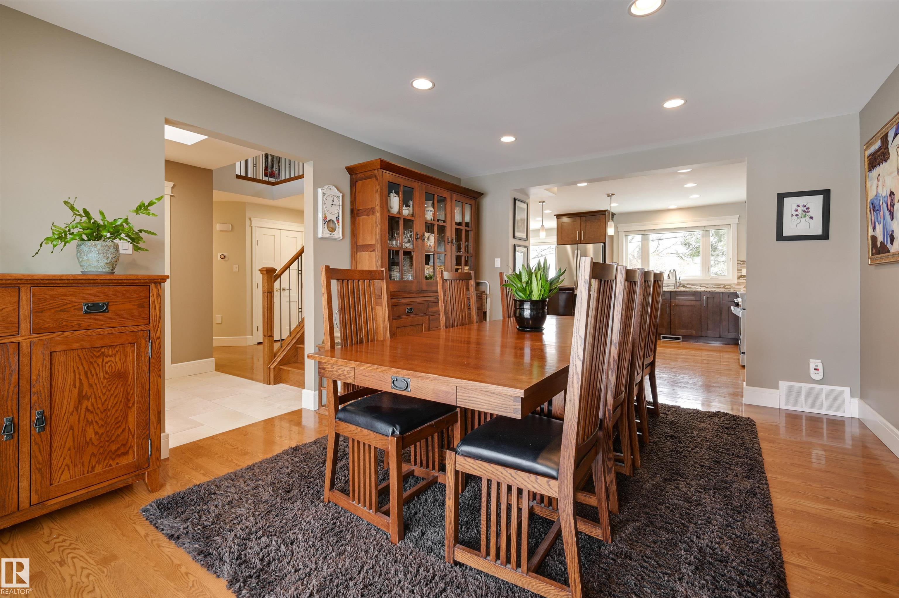 One of a kind in Westmount offering over 2,300 SF modernized by Aquarian Renovations. The kitchen features rich custom cabinetry, pantry, granite counters, tile backsplash, high-end appliances & a massive 13' L-shaped island ideal for hosting, adjacent to the breakfast nook with direct access to the deck and private backyard--perfect for kids to play. The main floor also offers a living room with fireplace, formal dining room, den & half bath. Upstairs you'll find a spacious primary retreat filled with natural light, complete with a spa-inspired ensuite showcasing a granite vanity, large soaker tub, and a glass walk-in shower, plus two additional oversized bedrooms & a 4 pc bath. The fully finished basement includes a large family room with stone fireplace, games area with wet bar, fitness space, 4th bedroom, 3-piece bath and storage. Hardwood floors, double attached garage plus the added bonus of a double detached garage! Walking distance to schools, shops, stores & more! Some photos virtually staged.