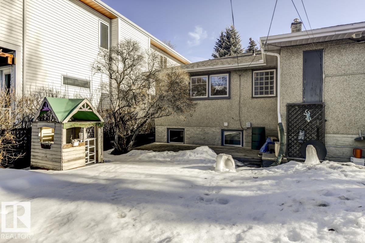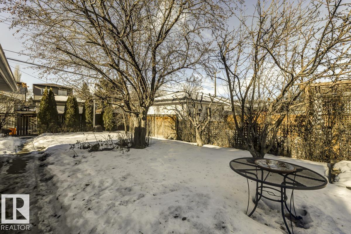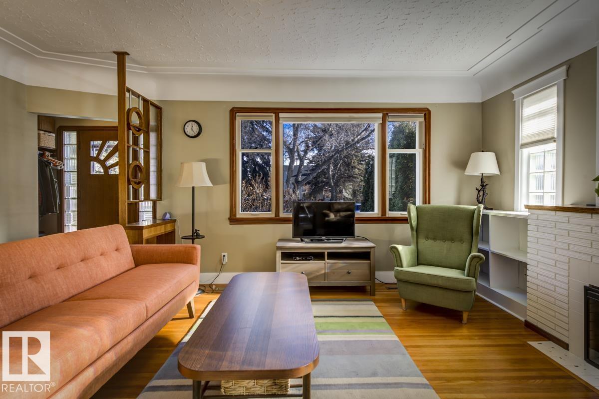 Rich character meets an unbeatable location in this beautifully maintained Westmount gem! Offering 1,114 sq.ft. (Above Grade), this home blends timeless charm w/ thoughtful updates. The main flr showcases gleaming hardwood flrs, distinctive architectural details & 3 generously sized bdrms. The inviting living rm, complete w/ cozy electric f/p, is perfect for relaxing evenings, while the updated kitchen shines w/ classic finishes that will never go out of style. Separate entrance opens to a fully developed bsmt featuring 2 additional bdrms, 2nd kitchen, 3-pc bath & spacious rec rm--ideal for extended family & guests. Step outside to your own sunny, west-facing oasis. The beautifully landscaped backyard boasts mature apple & cherry trees, raspberry bushes, patio area for summer entertaining, storage shed, & a heated dbl detached garage. Just minutes from downtown & steps to the boutiques, trendy restaurants, cafes, & vibrant energy of 124 St, this is city living at its finest!