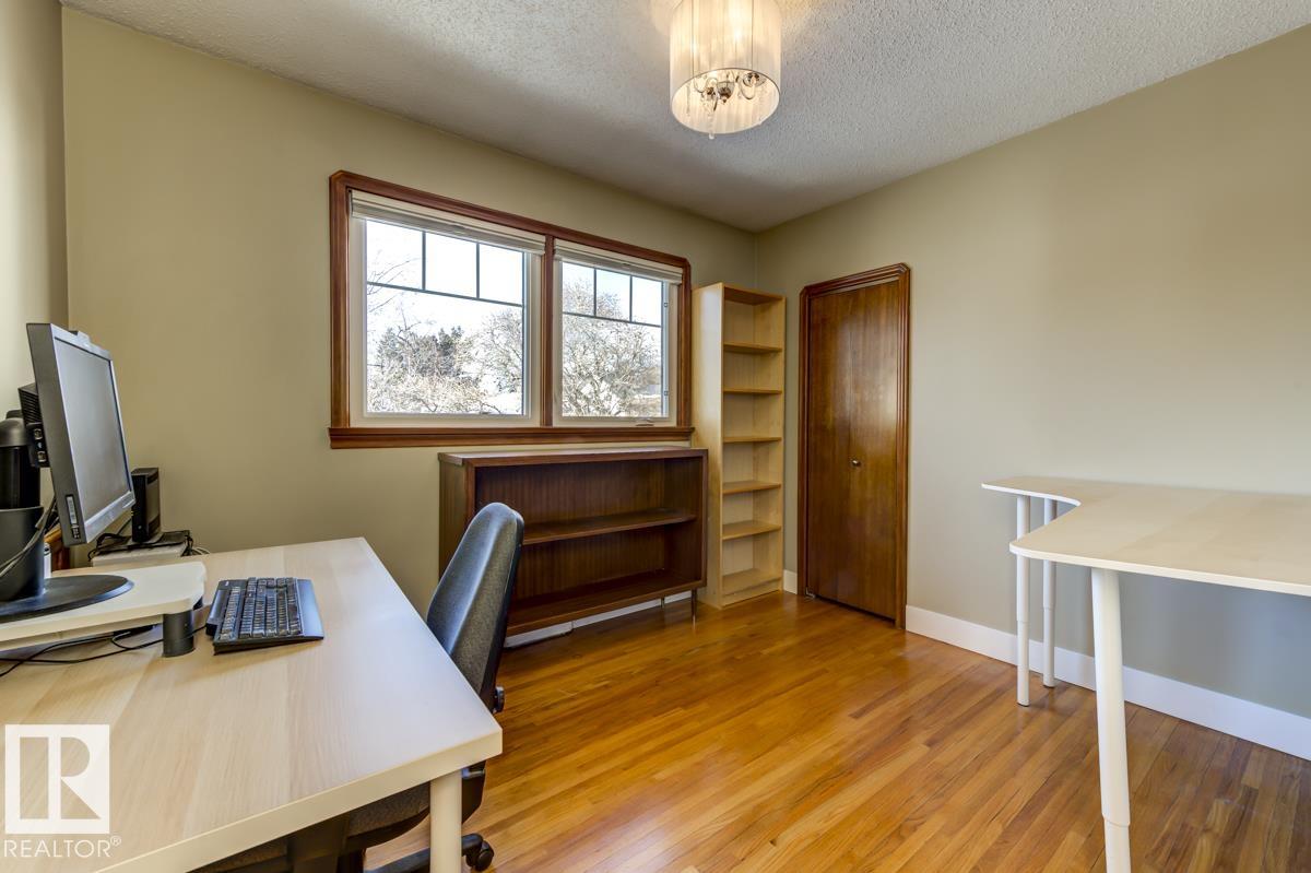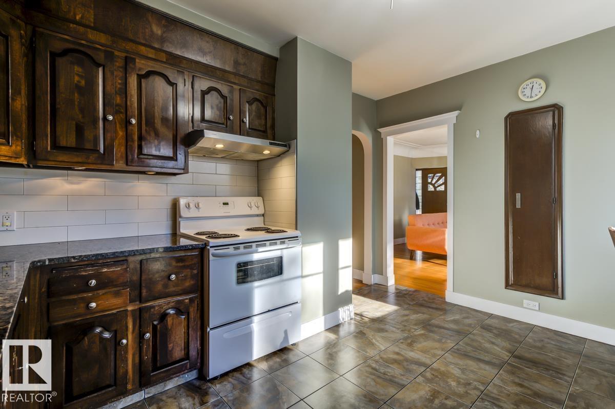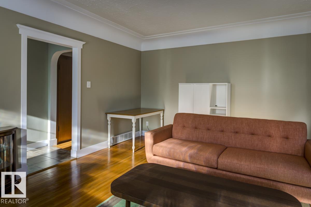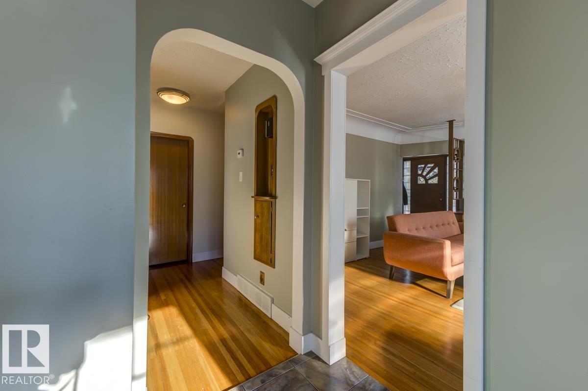 Rich character meets an unbeatable location in this beautifully maintained Westmount gem! Offering 1,114 sq.ft. (Above Grade), this home blends timeless charm w/ thoughtful updates. The main flr showcases gleaming hardwood flrs, distinctive architectural details & 3 generously sized bdrms. The inviting living rm, complete w/ cozy electric f/p, is perfect for relaxing evenings, while the updated kitchen shines w/ classic finishes that will never go out of style. Separate entrance opens to a fully developed bsmt featuring 2 additional bdrms, 2nd kitchen, 3-pc bath & spacious rec rm--ideal for extended family & guests. Step outside to your own sunny, west-facing oasis. The beautifully landscaped backyard boasts mature apple & cherry trees, raspberry bushes, patio area for summer entertaining, storage shed, & a heated dbl detached garage. Just minutes from downtown & steps to the boutiques, trendy restaurants, cafes, & vibrant energy of 124 St, this is city living at its finest!