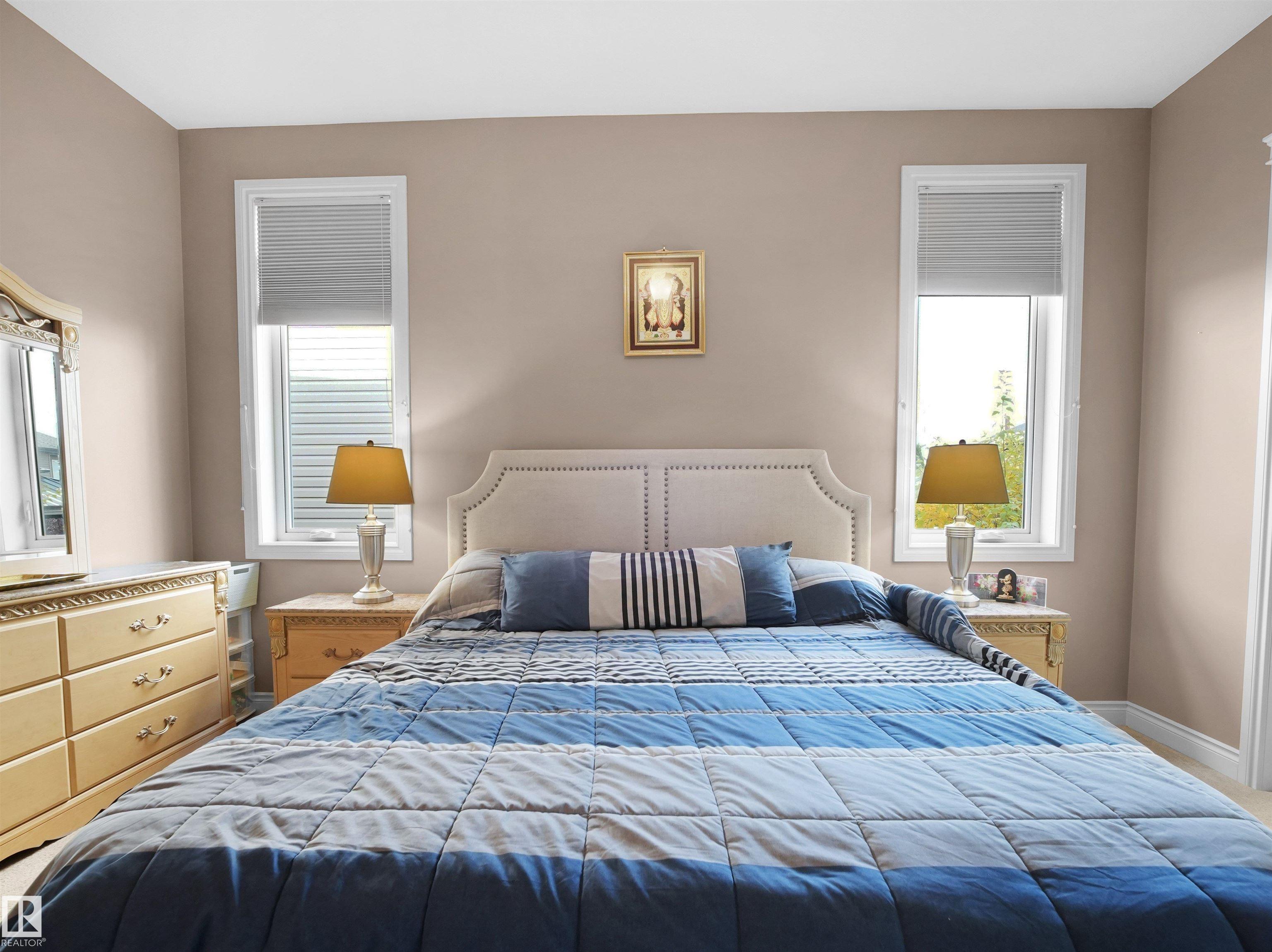 Step into modern elegance in this 1630sqft spacious bungalow in Windermere with 10-ft ceilings, massive windows, & rich hardwood flooring that fill the open-concept main level with natural light. The chef's kitchen boasts granite countertops, a large island, a walk-in pantry, and seamless flow into the dining and living areas -- perfect for family gatherings. The primary suite features a luxurious 5-piece floor-heated ensuite & spacious walk-in closet for ultimate comfort. Enjoy 2 living spaces -- an inviting family room on the main floor and a fully finished basement of 1530sqft B.G. with a massive rec area, two bedrooms, & full bath -- ideal for guests, or extended family. Step outside to your huge deck overlooking a beautifully fenced & landscaped backyard with a shed + double garage attached perfect for relaxing or summer BBQs. Located in desirable Windermere, you'll love being close to top-rated schools, shopping at Currents of Windermere, scenic walking trails, and easy access to Anthony Henday Drive.