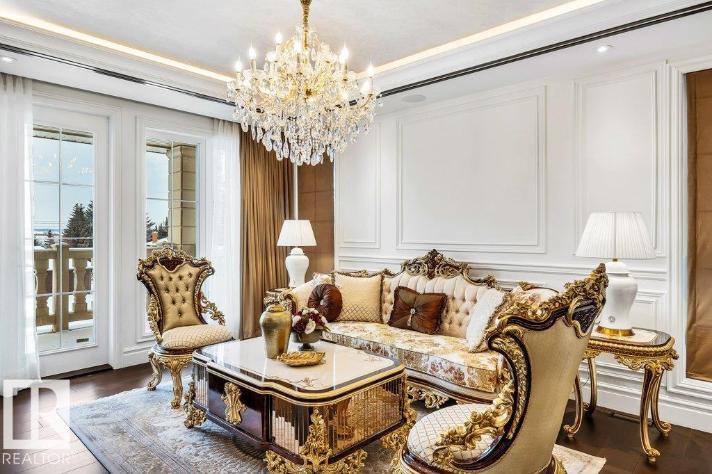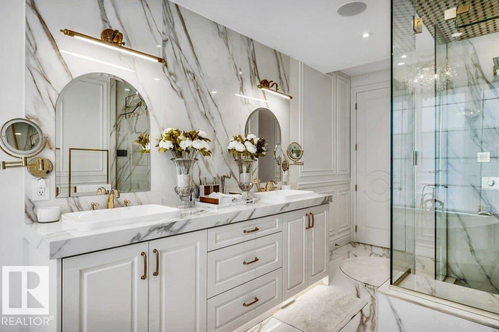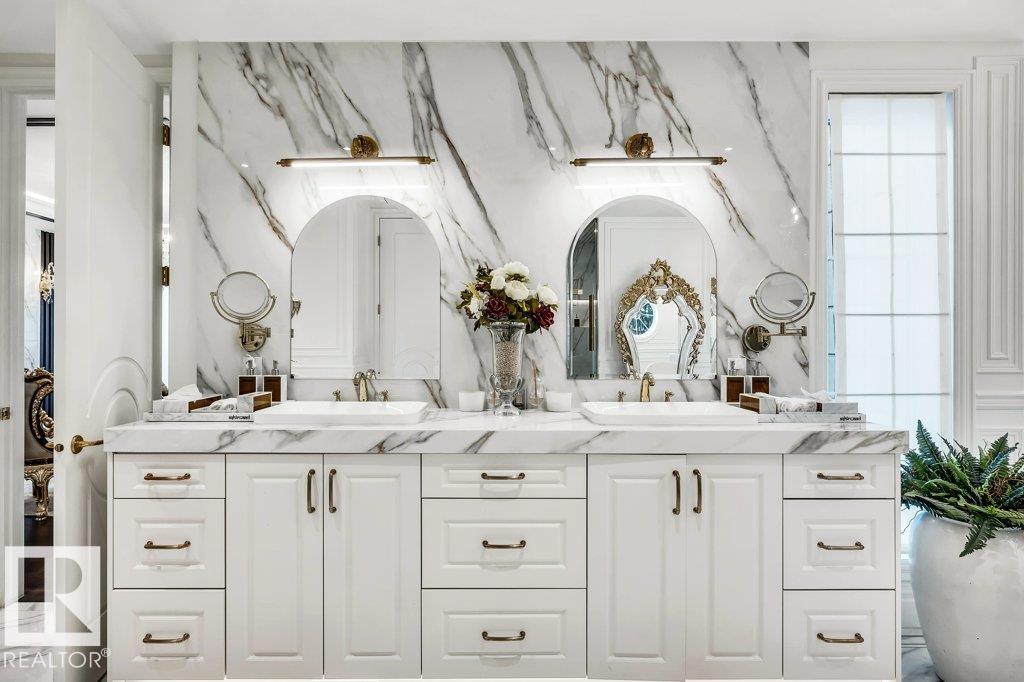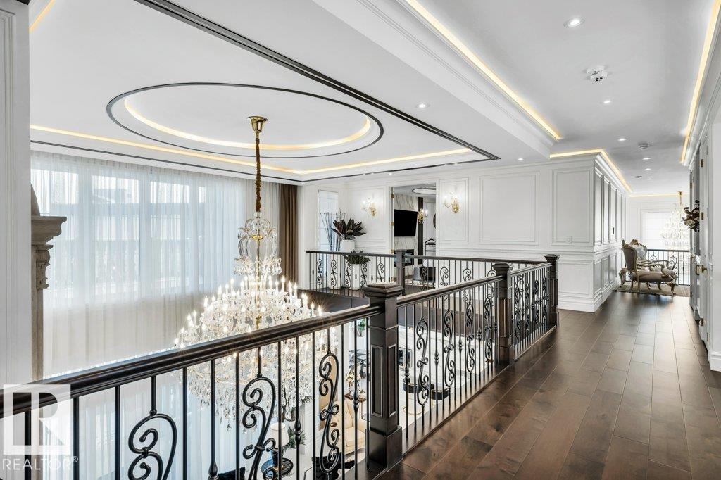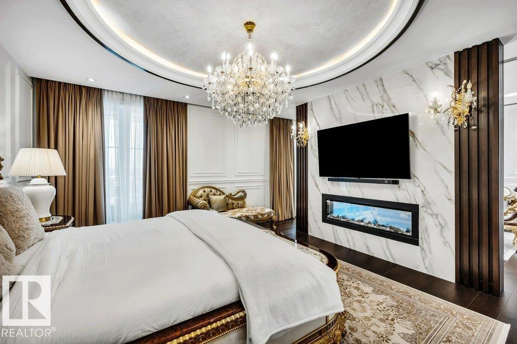 Welcome to Windermere! Luxury Living & Grandeur at Its Finest in an Affluent Community! Spanning over a sprawling estate of over 10,385 sq.ft. this home boasts 7 bedrooms, 6 ensuite bathrooms, 1 common bath & 3 half-baths! You are welcomed w/ a grand double-door entryway w/ intricate wrought-iron details, complemented by tall windows & luxurious drapery. The interior showcases an open-concept living space w/ 20 ft ceilings, intricate architectural details incl. archways & molding. Massive crystal chandeliers enhance home's grandeur! The kitchen has sleek solid wood cabinetry, marble countertops & gold-accented fixtures + a SPICE KITCHEN w/ stove, sink, counter space & storage for ingredients & utensils! Upstairs features dark wood &wrought-iron railings overlooking the living area, 3 bedrms all w/ its own 5-pc ensuite. The Primary bedroom offers a LOUNGE & COFFEE BAR w/ a PRIVATE BALCONY! The basement features A GYM, A VERSATILE OFFICE/DEN, REC ROOM & GRAND HOME THEATRE! BACKYARD has EXTERIOR KITCHEN!