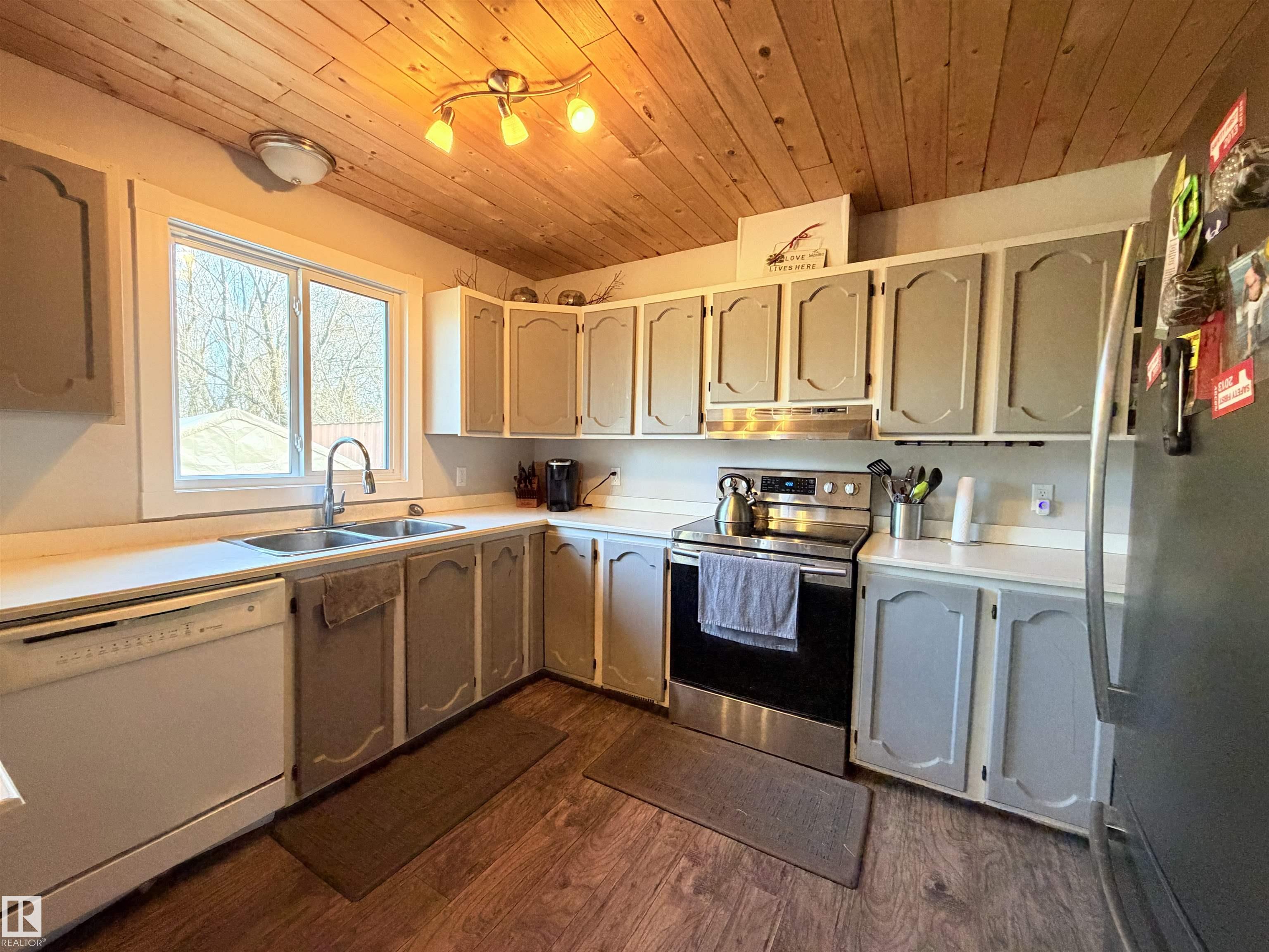 Discover the charm and comfort of this raised bungalow on a spacious 1/4-acre lot. Featuring 3 bedrooms and a 4-piece bathroom, this home offers an inviting main floor with a pine board ceiling and plenty of natural light. Enjoy outdoor living on the deck overlooking the garden, with ample space for RV parking and a large gravel pad that accommodates multiple vehicles. Recent upgrades include new windows, a new hot water tank, a new furnace, and shingles replaced in 2020--ensuring peace of mind for years to come. A fantastic opportunity for anyone seeking space, updates, and room to grow.