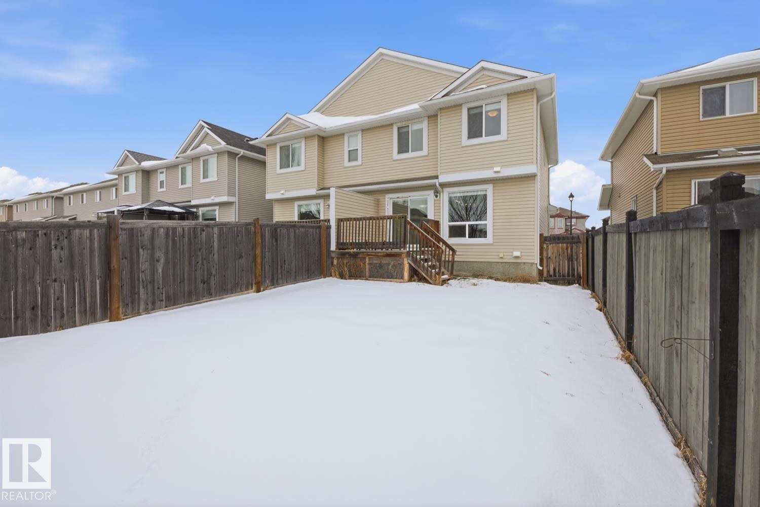 Welcome to this beautifully updated 3-bedroom, 1.5-bathroom duplex offering a bright and inviting layout with a single attached garage. The home has been professionally painted and features new carpet, new vinyl plank flooring, new baseboards, and brand-new zebra blinds throughout, creating a fresh and modern feel. Large windows allow for an abundance of natural light, and the home features a south-facing backyard. The unspoiled basement provides plenty of potential for future development. Ideally located close to parks, walking trails, shopping, and everyday amenities, with easy access to the Edmonton International Airport, Costco Wholesale, and the Premium Outlet Mall. Ideal for first time home buyers, families, or investors.