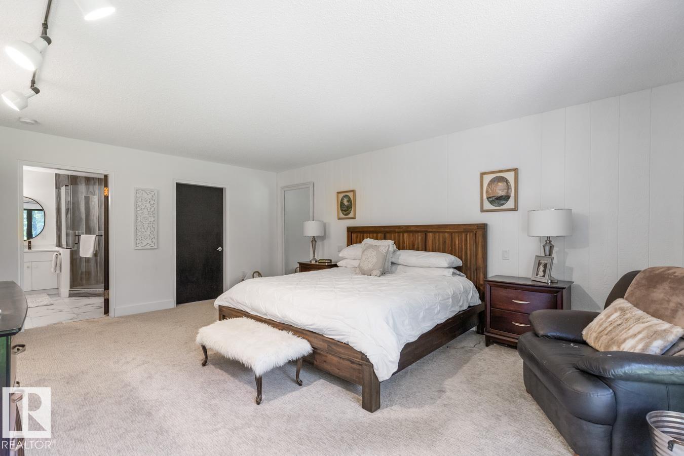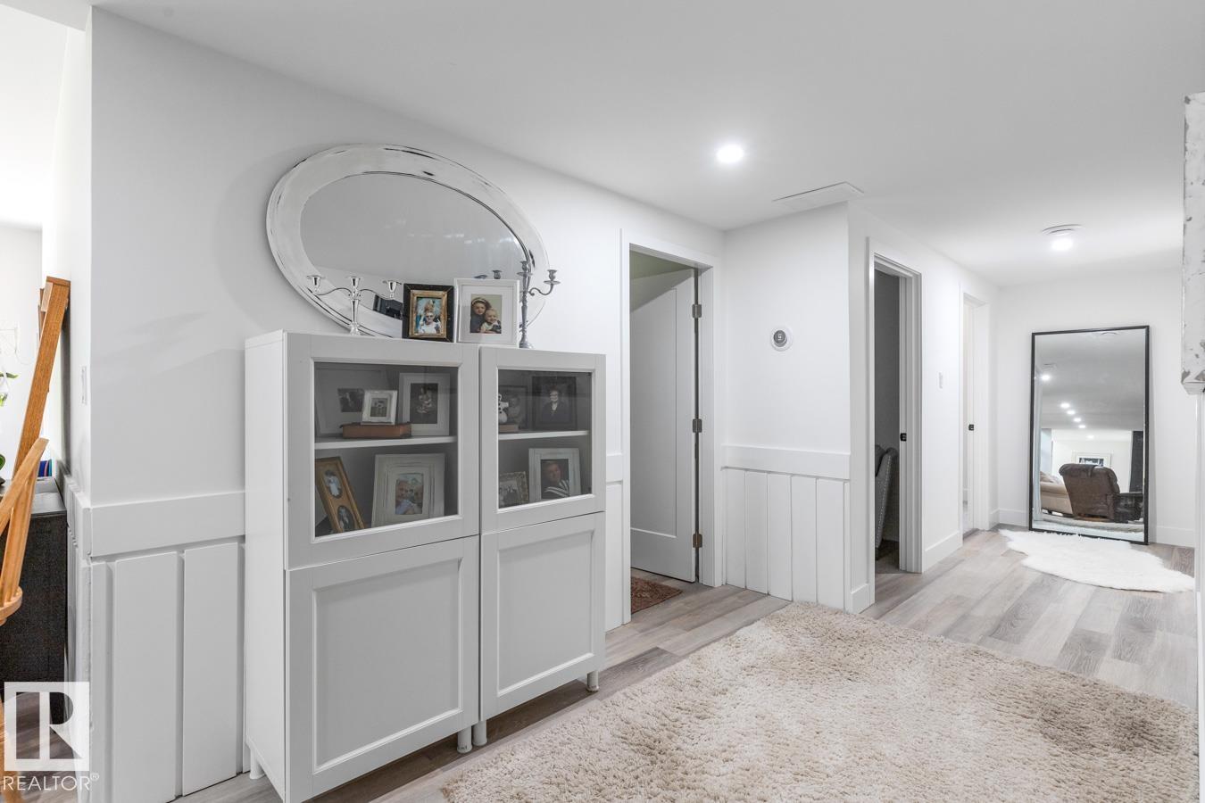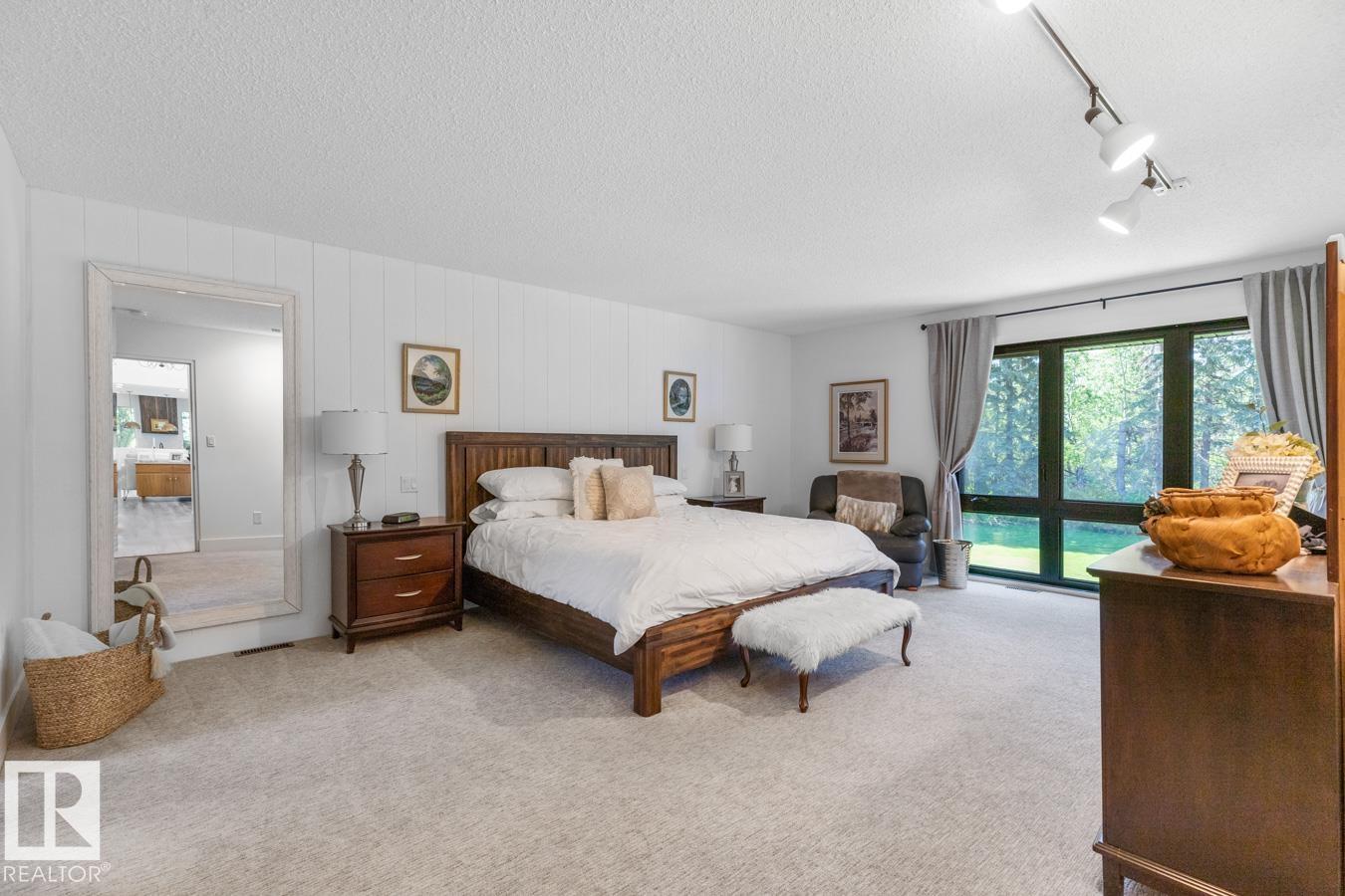 A rare offering in prestigious Campbeltown Heights, this extensively renovated luxury estate sits on 2.99 private acres just minutes from Sherwood Park. Showcasing 4 bedrooms & 4 baths, this home blends modern elegance with warm country charm. Vaulted ceilings, luxury vinyl plank flooring & a wall of windows fill the main level with natural light. The dream kitchen features white cabinetry, stainless steel appliances, dual pantries, a massive quartz island & cozy hearth room with fireplace. The dining room with built-in shelving is perfect for entertaining. Retreat to the king-sized primary suite with walk-in closet & spa-inspired ensuite. A second bedroom & 3pc bath complete the main level. The vintage circular staircase leads to the walkout basement with spacious family room, hidden speakeasy, 2 bedrooms (one with ensuite), den, flex space & sauna. Enjoy the spectacular south yard & deck. City water & sewer. Where luxury, comfort & nature come together, this is acreage living at its finest.