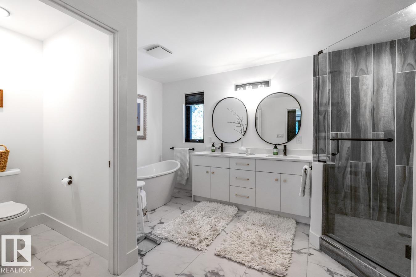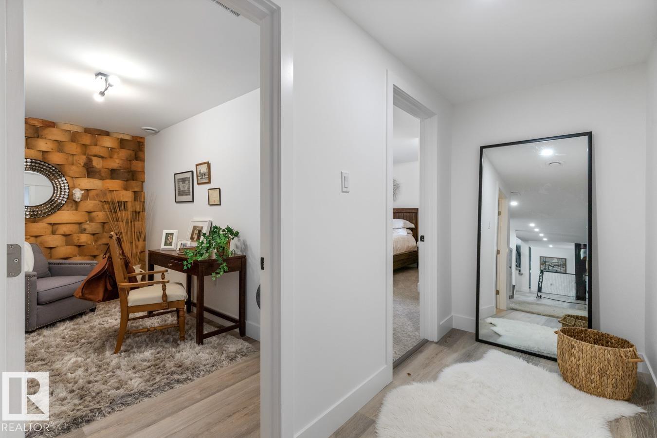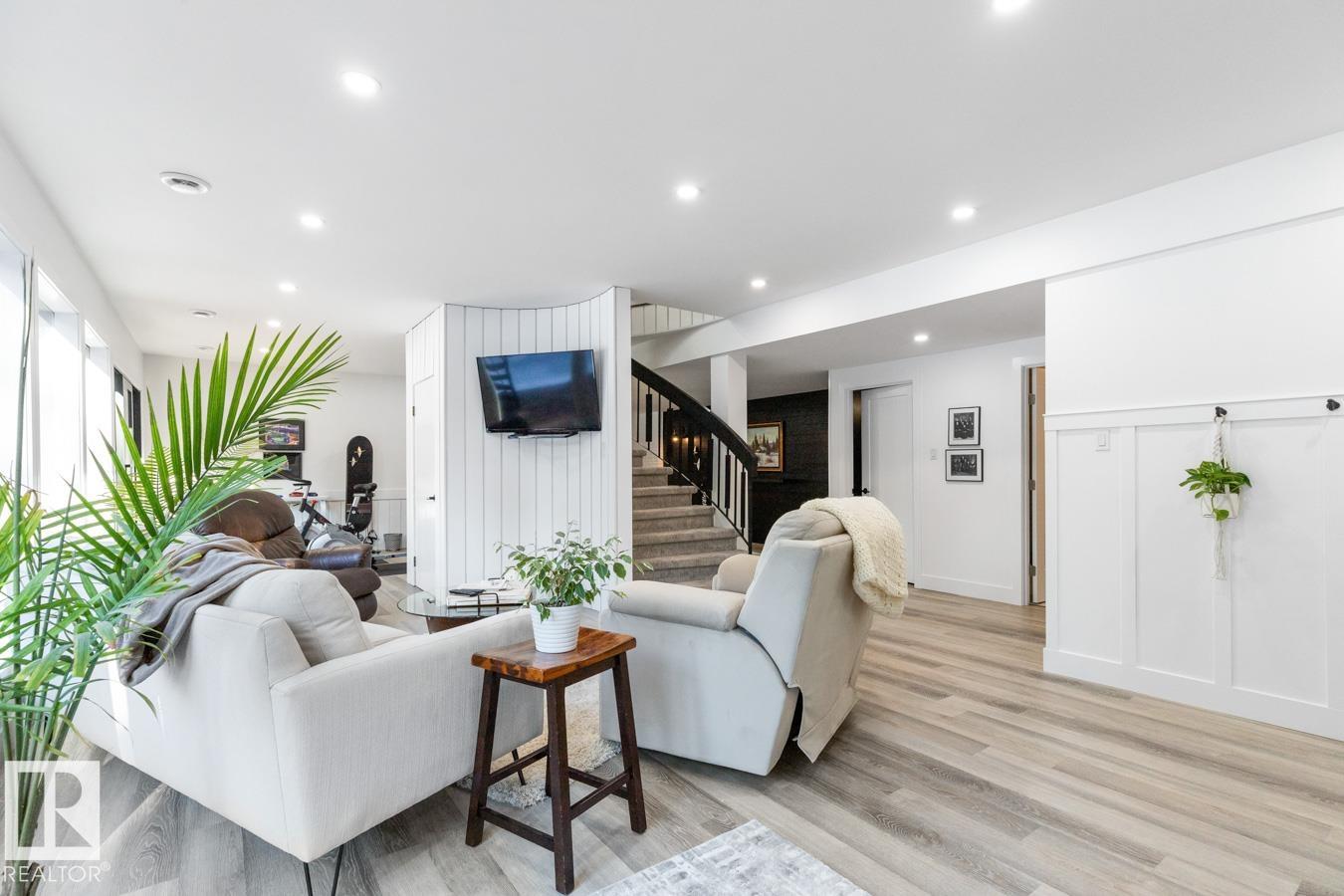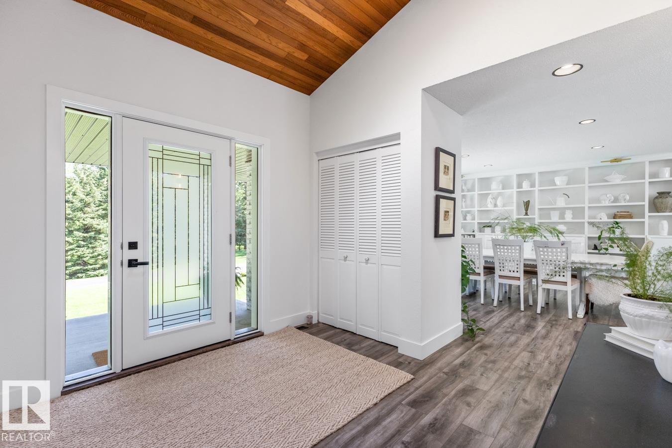 A rare offering in prestigious Campbeltown Heights, this extensively renovated luxury estate sits on 2.99 private acres just minutes from Sherwood Park. Showcasing 4 bedrooms & 4 baths, this home blends modern elegance with warm country charm. Vaulted ceilings, luxury vinyl plank flooring & a wall of windows fill the main level with natural light. The dream kitchen features white cabinetry, stainless steel appliances, dual pantries, a massive quartz island & cozy hearth room with fireplace. The dining room with built-in shelving is perfect for entertaining. Retreat to the king-sized primary suite with walk-in closet & spa-inspired ensuite. A second bedroom & 3pc bath complete the main level. The vintage circular staircase leads to the walkout basement with spacious family room, hidden speakeasy, 2 bedrooms (one with ensuite), den, flex space & sauna. Enjoy the spectacular south yard & deck. City water & sewer. Where luxury, comfort & nature come together, this is acreage living at its finest.