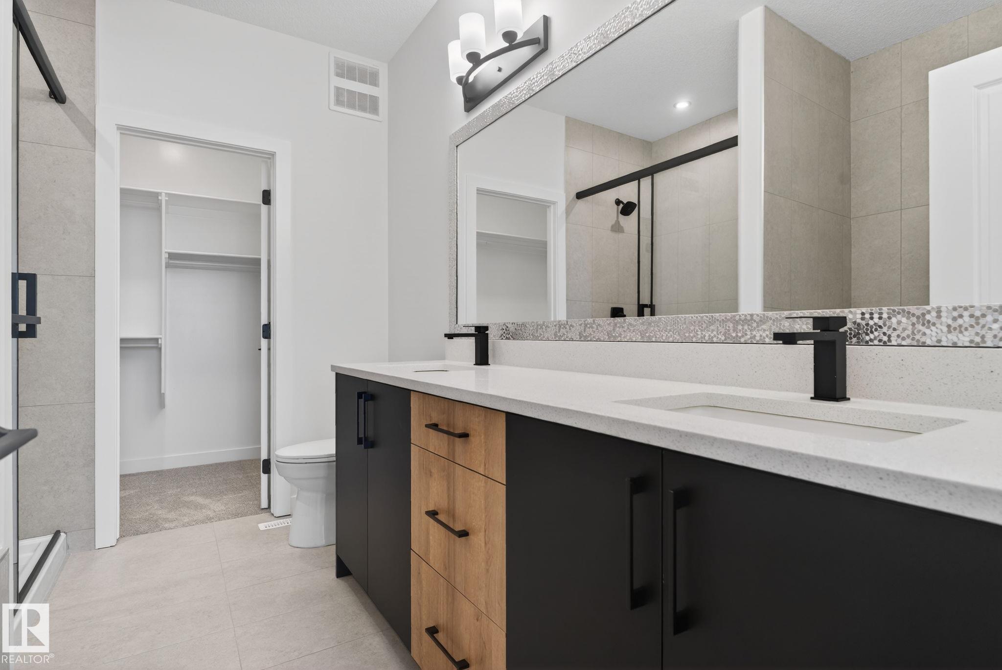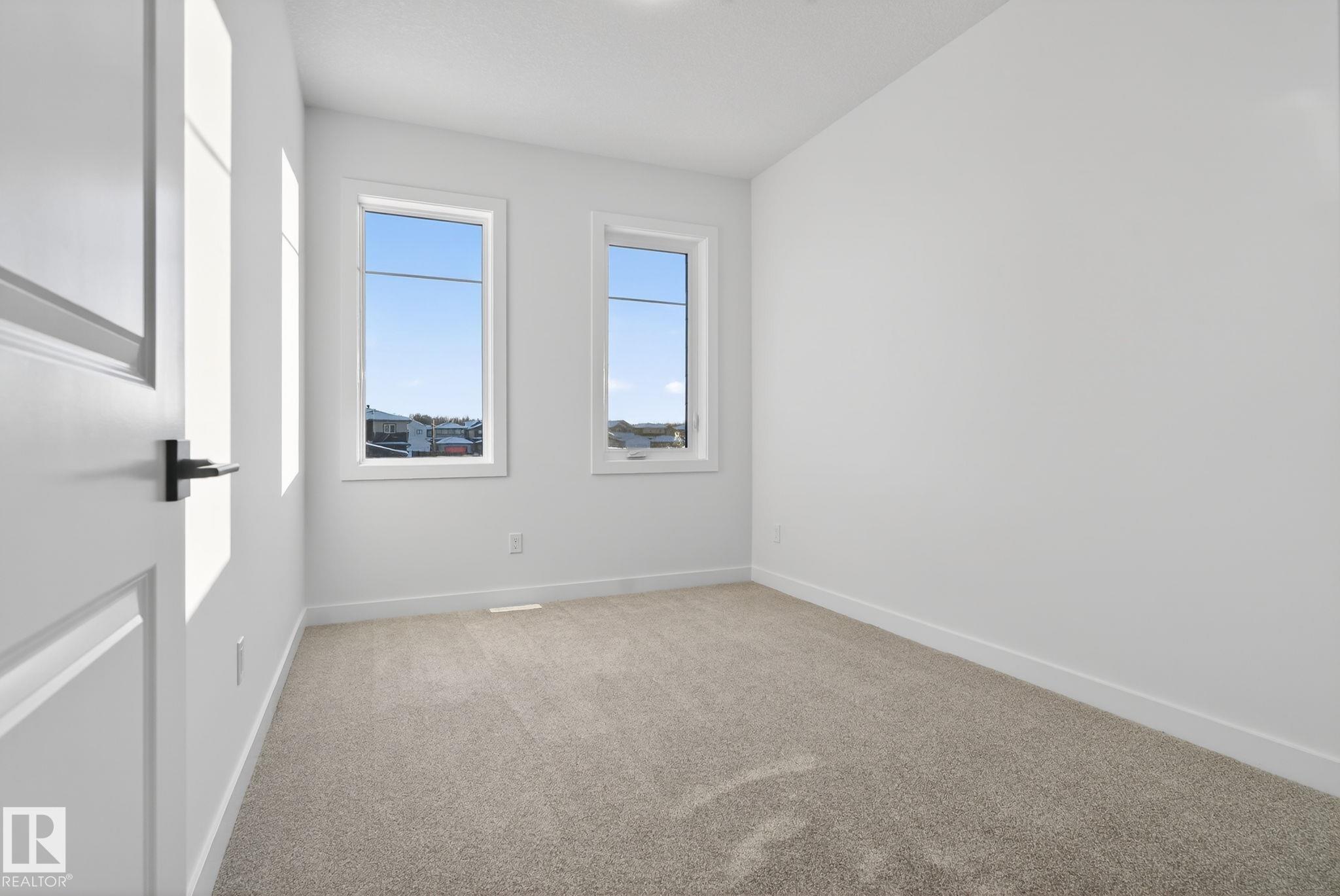 Welcome to this stunning half duplex in the sought-after community of Fenwyck, Spruce Grove - masterfully crafted by Victory Homes. Double attached garage with oversized driveway. Main floor den with full bathroom. The open-concept layout is highlighted by the open-to-above living room, complete with an electric fireplace with feature wall and large windows that flood the space with natural light. Kitchen with central island, ceiling-height cabinets and quartz countertops. Upstairs, enjoy the added comfort of a bonus room, ideal for family lounging or a media area. The spacious primary suite includes a 5-piece ensuite with a double vanity, tiled shower, bathtub, and complete with a walk-in closet. Additional 2 well-sized bedrooms, a 3-piece bathroom, and laundry complete this floor. Separate side entrance to the basement. Backing onto green space. Close to amenities.