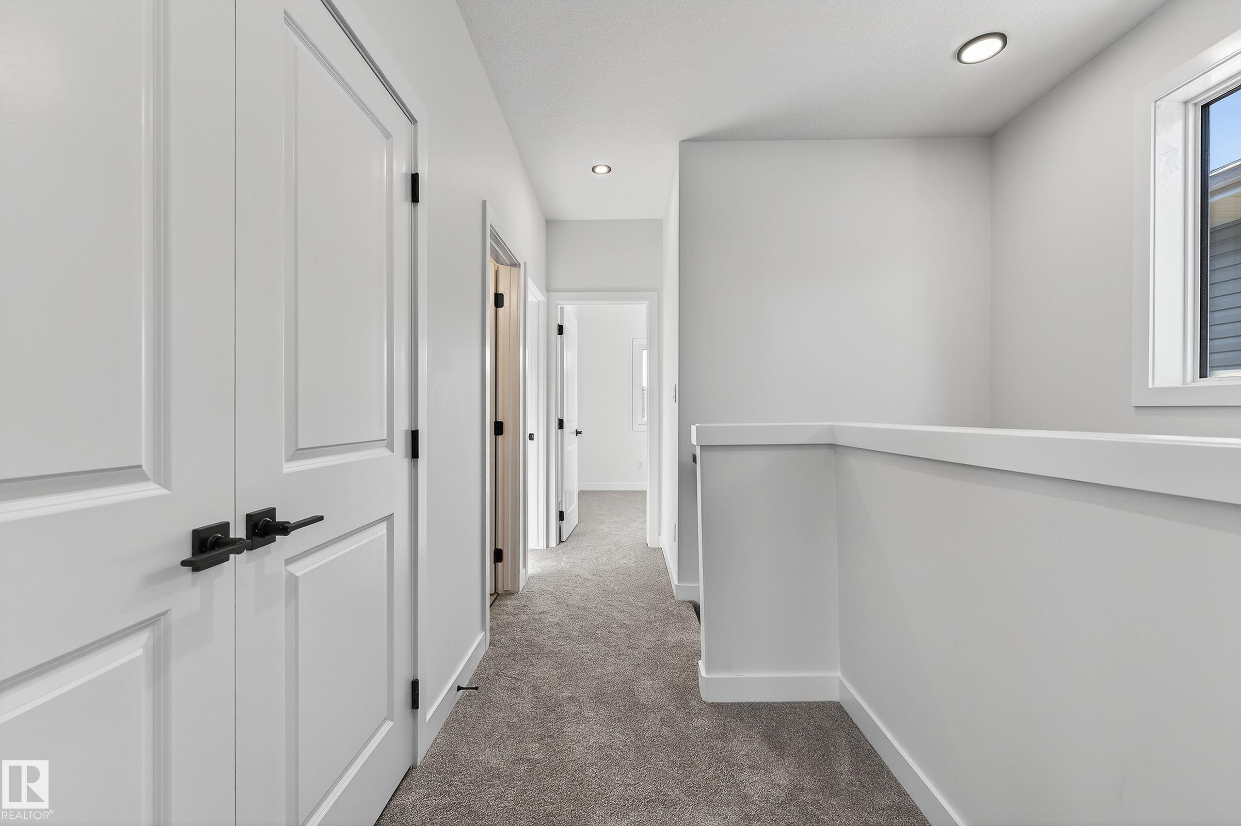 BRAND NEW Townhome with NO CONDO FEES. Open concept floor plan features living room with electric fireplace complete with an accent wall. Upgraded ceiling height 2-toned kitchen cabinet's with quartz counter tops and soft close drawers. A nook overlooking the backyard and a 2-piece powder room complete the main floor. Upstairs, the master bedroom features a 4-piece ensuite and Walk-In Closet. 2 additional good sized bedrooms, a bathroom and laundry room complete this level. SEPARATE SIDE ENTRANCE to the basement plus a Double detached garage. Modern Details include, MDF shelving throughout, luxury vinyl plank, upgraded backsplash and premium lighting package. This community is conveniently located just 11 minutes away from the City of Edmonton and has direct access to Highway 16A. Close to all amenities.