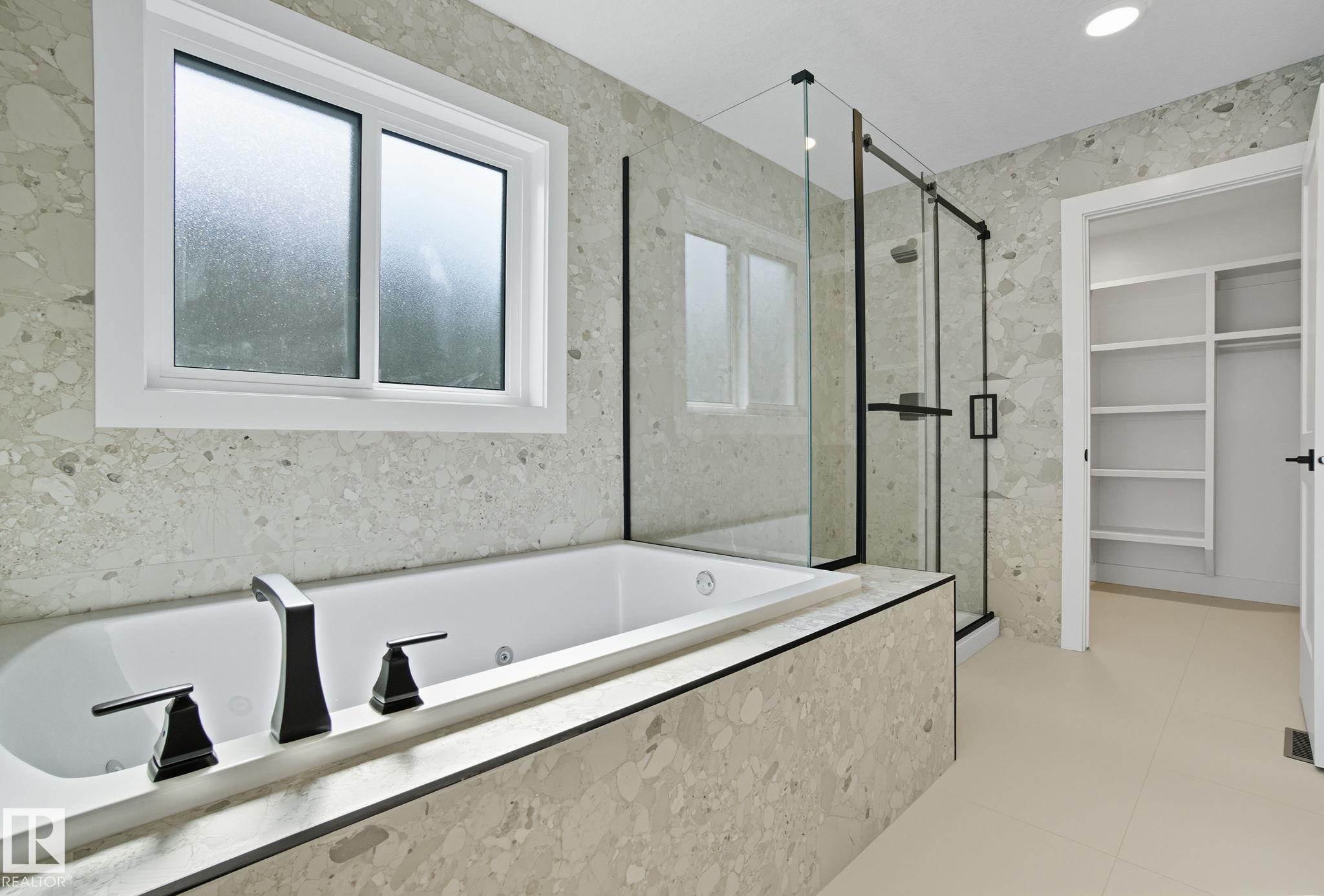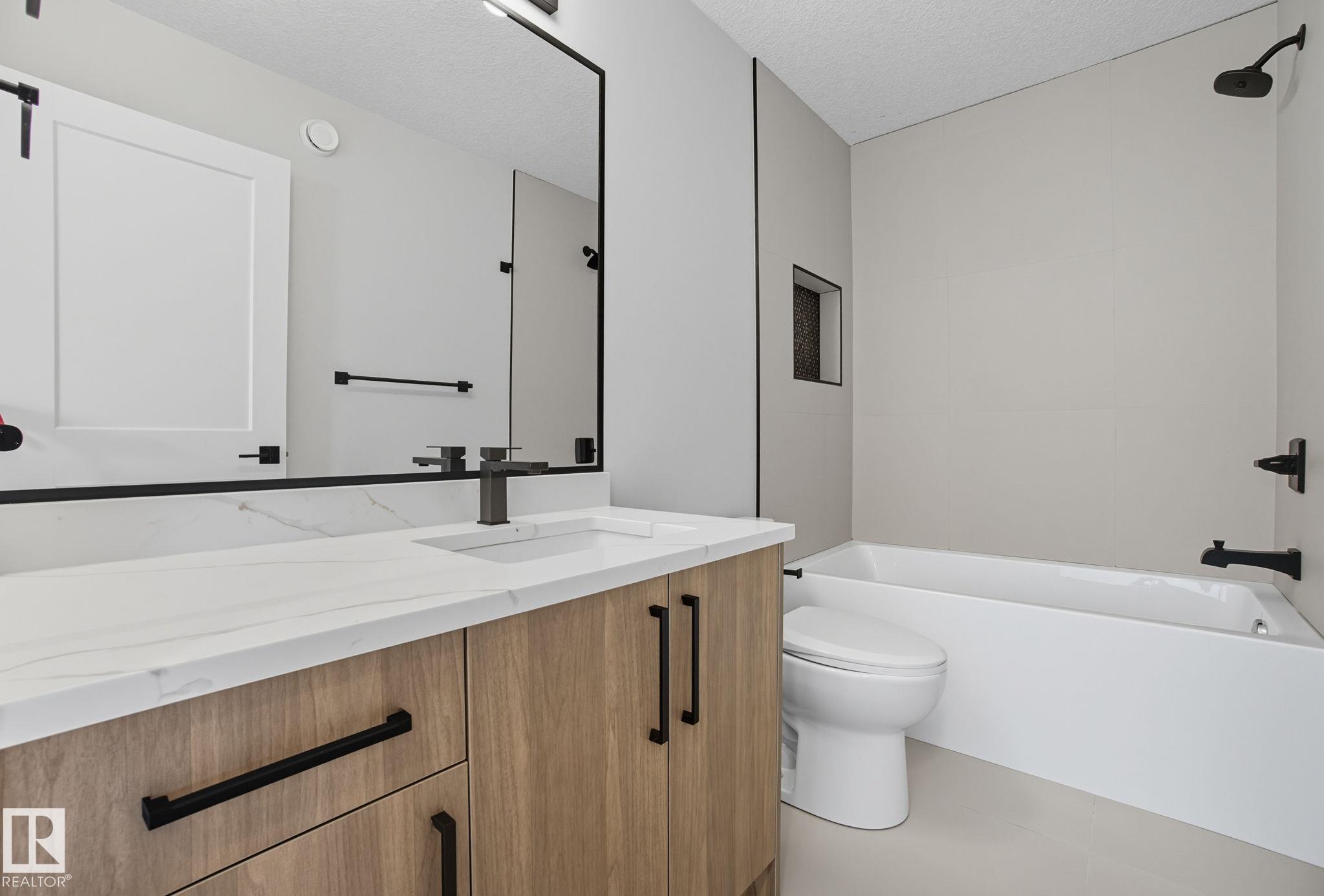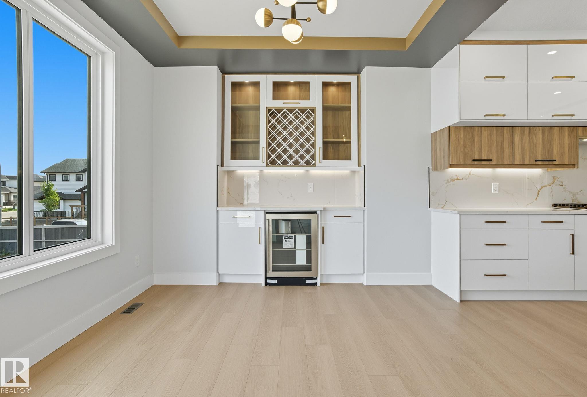 Built by Sunnyview Homes. 4 bedrooms and 3 full bathrooms. TRIPLE car garage w/huge driveway. This stunning home offers a main floor bedroom and full bathroom. The spacious open to below great room features a beautiful accent wall with electric fireplace. The upgraded kitchen boasts sleek ceiling height cabinetry, a walkthrough pantry and a nook with a built-in beverage station. The mudroom offers double coat closets w/a built in bench. A glass railing staircase with maple handrail and step lighting leads to the upper level central bonus room. The primary suite showcases a coffered ceiling and barn door entry to a spa like en-suite with double vanity, jacuzzi, custom glass-enclosed shower, and a WIC with MDF shelving. 2 additional bedrooms share a 4-piece bathroom. Finished with modern upgrades and quality craftsmanship throughout. Features, 3 gas lines, quartz, designer lighting pkg, plush carpet, accent walls, garage w/drain and hot/cold water lines. SEPARATE side entrance to the basement.