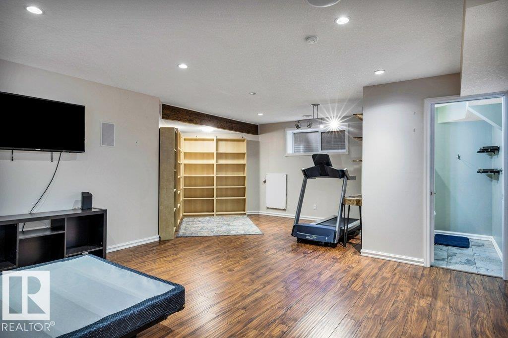 Welcome to this family friendly 1,924 sq ft 2-storey offering a bright, open-concept main floor with new vinyl plank flooring and large west-facing windows that fill the home with natural light. The spacious kitchen features a large island with eating area, pantry, and direct access to the deck--perfect for entertaining. Convenient main floor laundry completes the level. Upstairs offers 3 generous bedrooms, including a primary suite with walk-in closet and 4-piece ensuite, plus a 4-piece main bath and a large bonus room with vaulted ceilings. The fully finished basement adds a spacious rec room, 3-piece bath, and utility room. Enjoy the large yard with deck, BBQ gas hookup, and storage shed. Close to shopping and schools. Recent updates include vinyl plank flooring (2025), shingles (2025), HWT (2024), and stackable washer/dryer (2024).