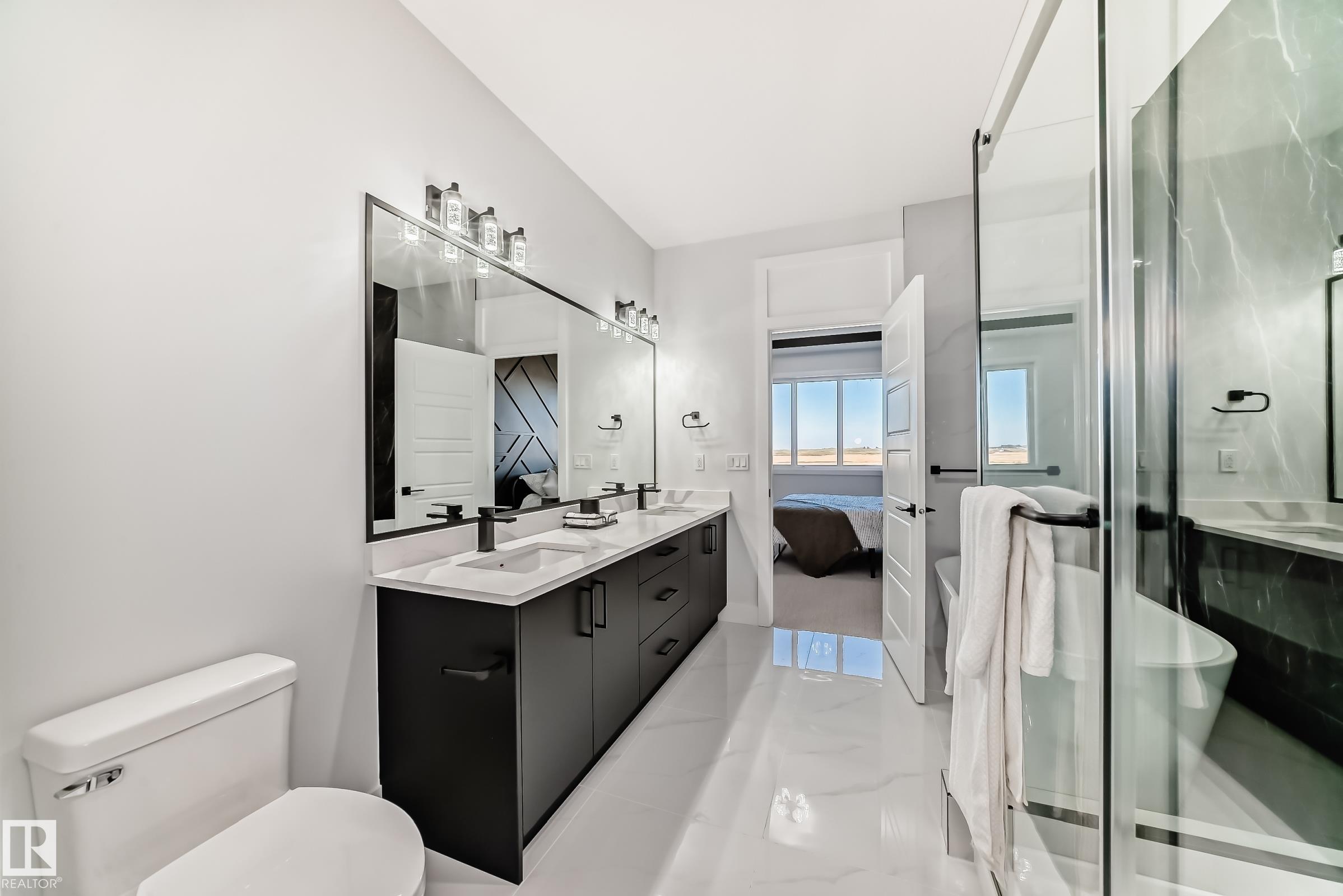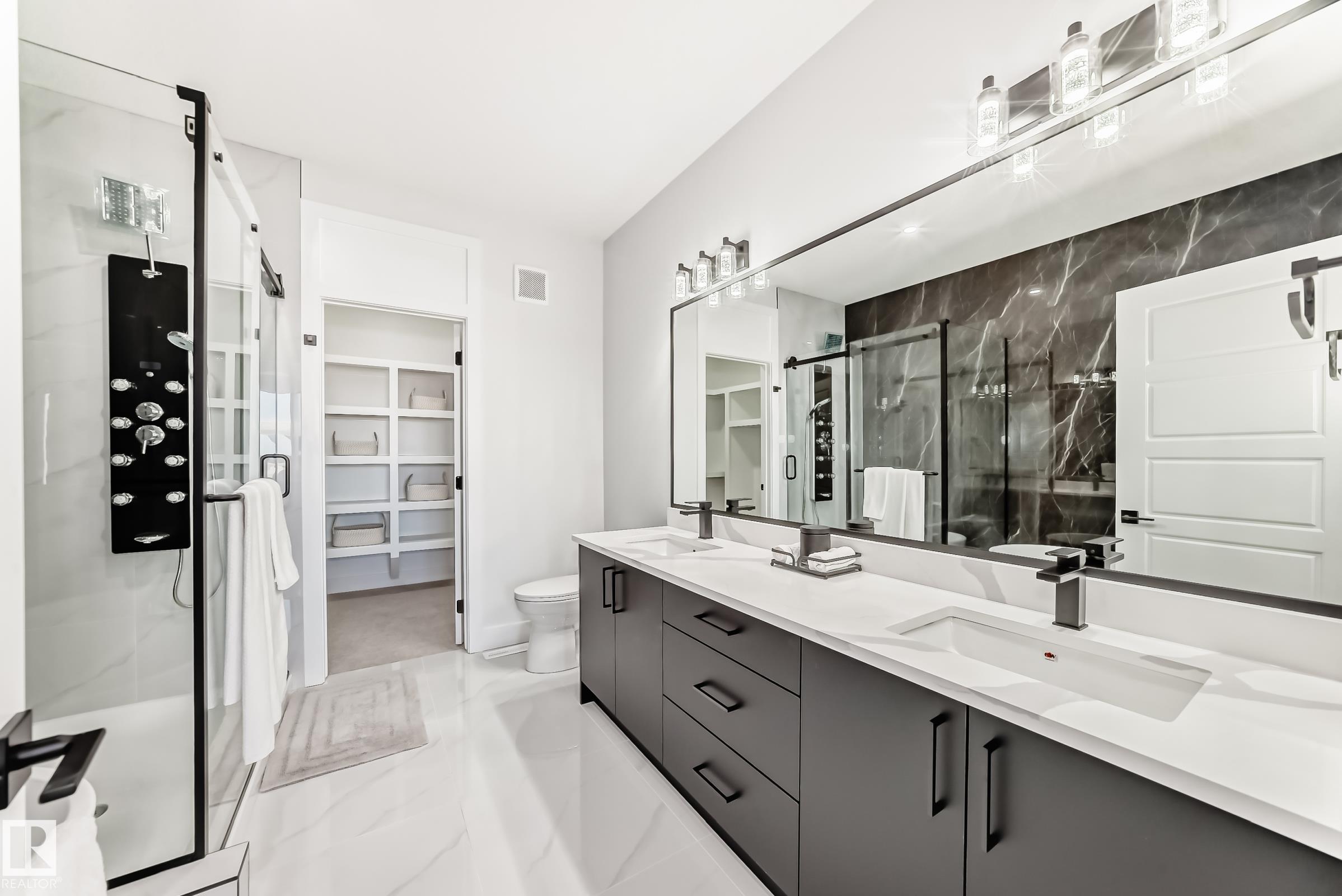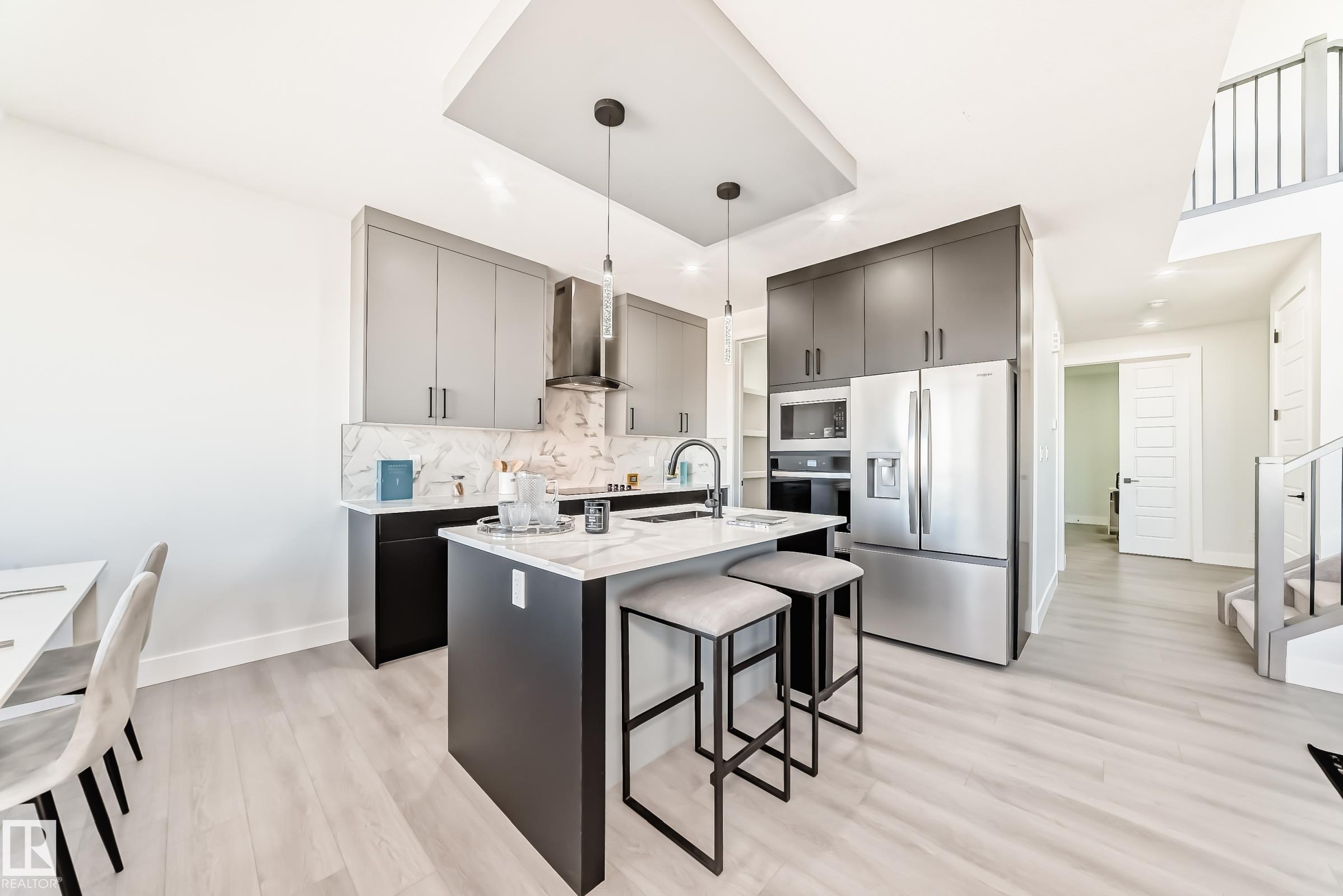 Welcome to Erin Ridge North! This home features a main floor den/bedroom with a full bath, mudroom with bench and hooks, walk-through pantry, beautiful 2-tone kitchen, dining room, and an open to above living room with a stunning stone look fireplace feature wall. On the second level you have 3 bedrooms with 2 full baths, bonus room with an arched entry way and laundry room with a sink. Side entrance with option to finish a legal basement suite. Upgrades include 8ft doors throughout, MDF shelving, jetted shower in primary ensuite, upgraded lighting, feature walls, and rear concrete pad.