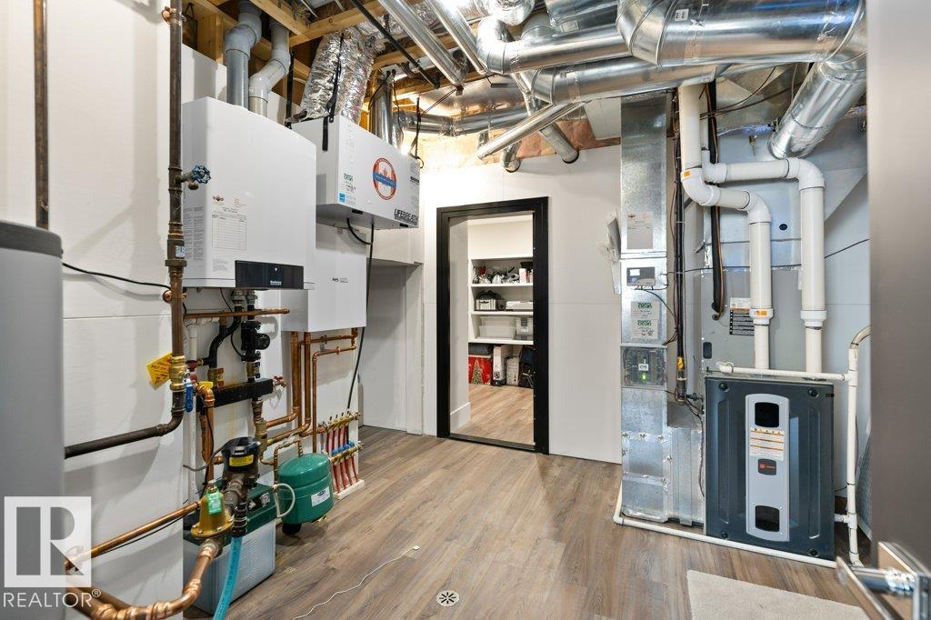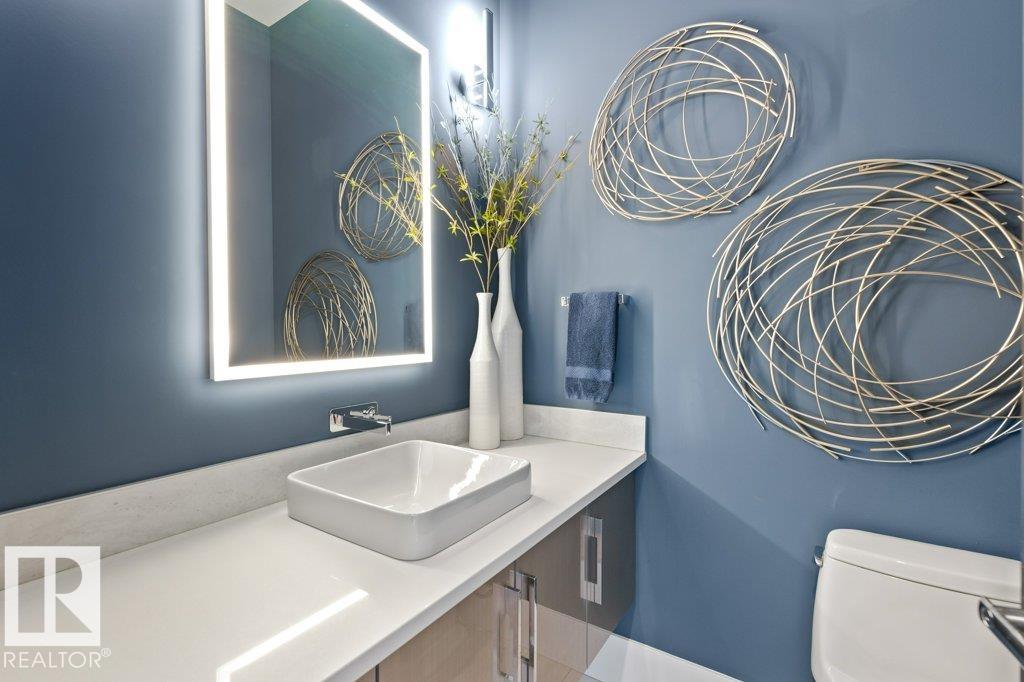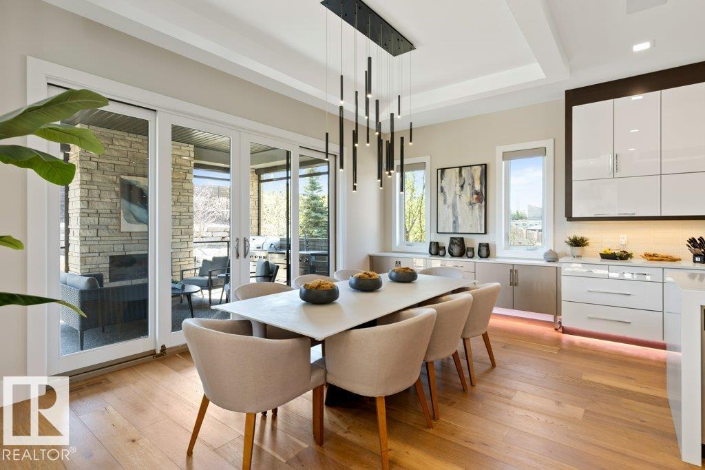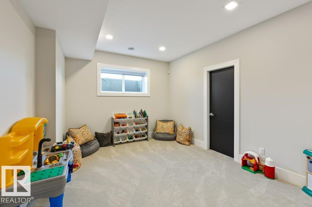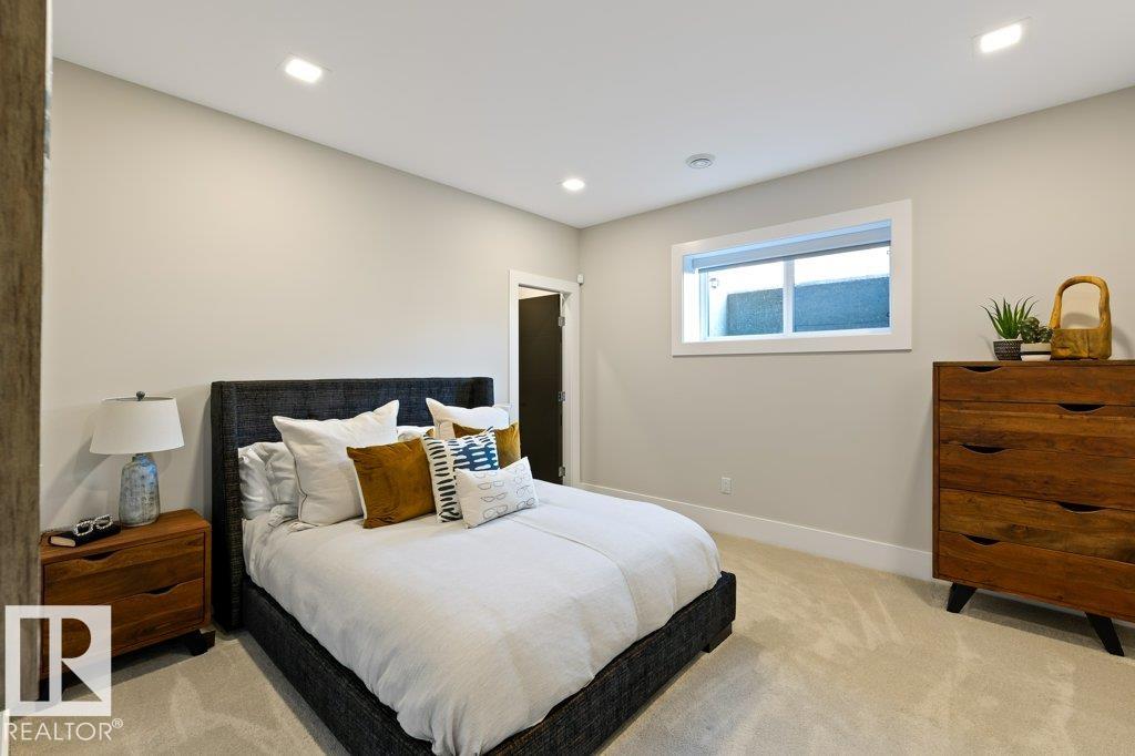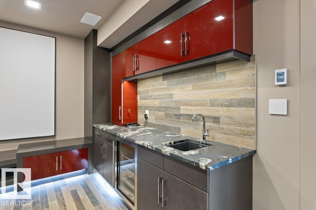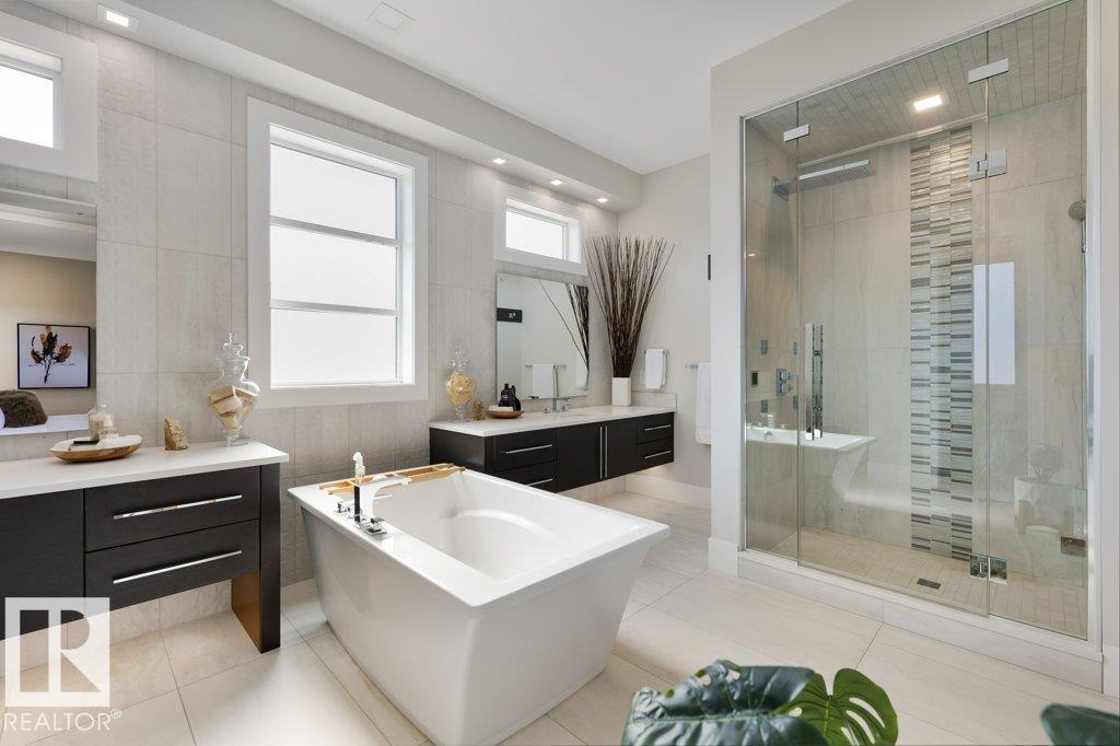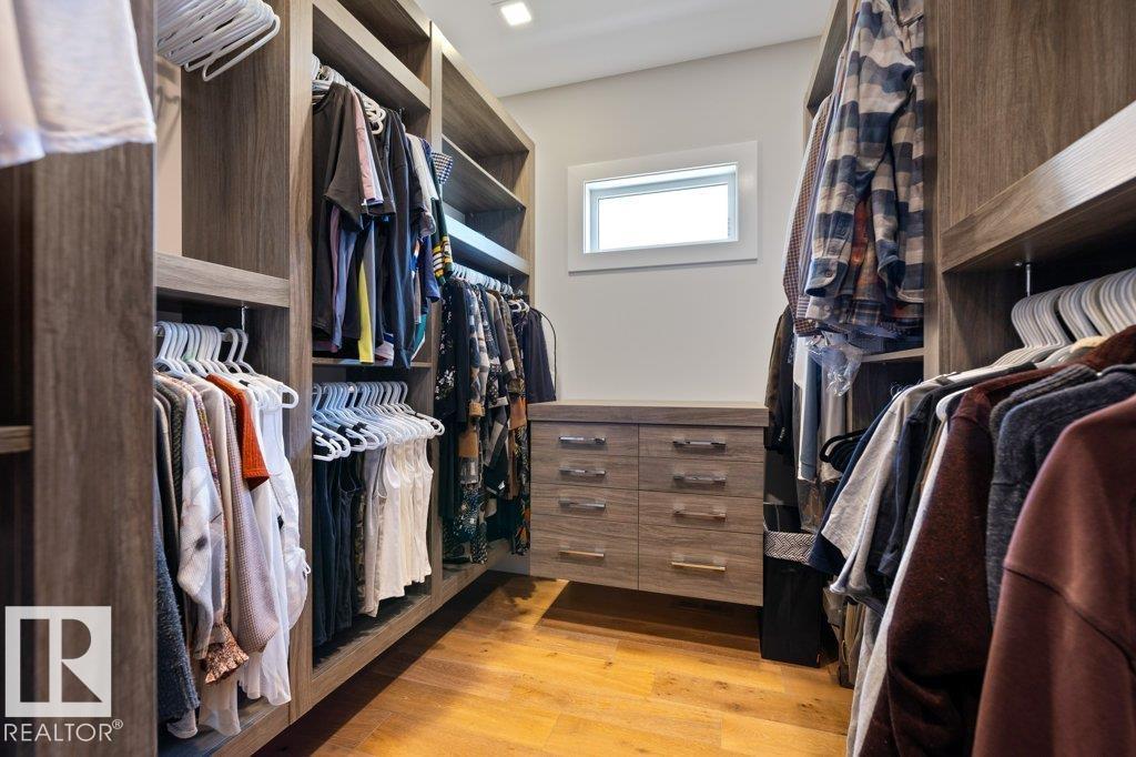 BREATHTAKING SHOWHOME in River's Gate - Sturgeon County's Only Gated Estate Community! This stunning great-room bungalow by Henderson Quality Building offers over 5000 SQFT of luxurious living space with a barrier-free layout & a 1600 SQFT 6-car garage with RV entrance. Features include custom millwork throughout, sun-drenched great room with stunning floor to ceiling feature fireplace, chef inspired kitchen with double quartz islands, floor-to-ceiling built-ins, Wolf & Sub-Zero appliances, & a butler's pantry. Includes 5 bedrooms: a resort-style primary suite with 2-sided fireplace & SPA INSPIRED EN-SUITE , main floor guest room with en-suite, lower bedrooms with Jack & Jill bathroom. Basement boasts glass stairwell, theater room with 12-ft screen, tiered seating, wet bars, games room, & more. Outside features $200K in serenity landscaping package, covered BBQ center, EV charger, motorized blinds, smart home automation, & 9-camera security. Unmatched quality, design, and elegance! In a word SPECTACULAR