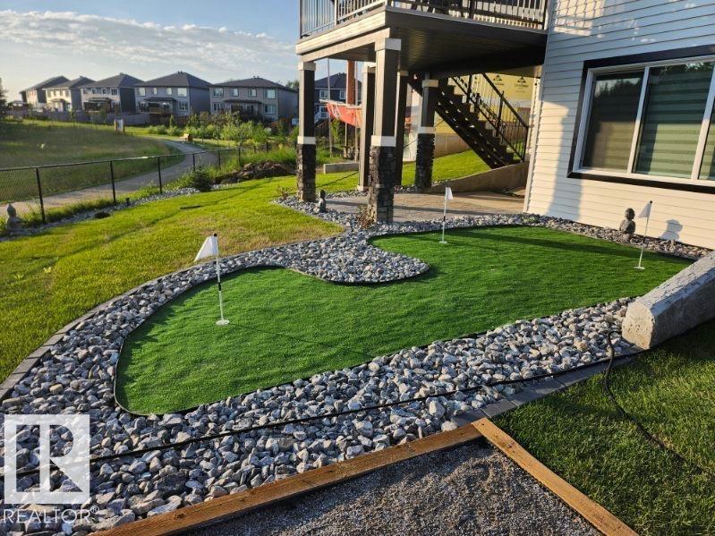 Better than new! This stunning WALKOUT 2 Storey is sure to impress, sitting on a large pie lot backing walking trail & trees & loaded with upgrades including A/C, 4 bedrooms, 3.5 baths & a 30x34' heated triple garage, 240V power & a 10' RV bay door w drive-thru door at back. A grand entrance welcomes you into the open-concept main floor with soaring ceilings. Chef's kitchen boasts modern cabinetry, massive pantry, gas stove with pot filler, & a quartz island overlooking the dining area. The living room features open to above ceilings & a sleek electric fireplace + spacious 2pc guest bath. Upstairs, retreat to the king-sized primary suite with a California walk-in closet & spa-like ensuite with a huge walk-in shower. Two more spacious bedrooms, a 4pc bath, & upper laundry complete the level. The fully finished walkout basement offers 9' ceilings, a large rec room, 4th bedroom, & another full bath. Enjoy the fenced & landscaped SW yard with a putting green, epoxy patio, & maintenance-free deck!
