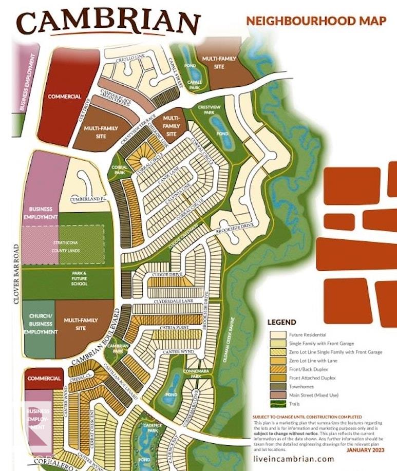 Steps away from CAMBRIAN PLAYGROUND, you will find this 1565sqft, 2 Storey home featuring 3 bdrms, 2.5 baths & DOUBLE garage. The NeoClassical Revival design style & The Landon by award-winning builder Rohit Homes, will WOW you as soon as you enter the spacious entrance that leads to the open concept main level with a stylish kitchen that offers plenty of cabinets, pantry & quartz island that over looks the dining & living area. Moving upstairs you will find a king sized primary suite with walk in closet & 5pc ensuite. 2 bdrms are both generous in size, a 4pc bath & flex room - perfect for an office or games area, complement this stylish home! Separate side entrance & rough in for future basement suite, makes for awesome income potential! Close to parks, playgrounds & 8kms of ravine trails through Oldman Creek, it will also be the home to future schools & shopping PLUS easy access to Henday! Photos may not reflect the exact home for sale, as some are virtually staged or show design selections.