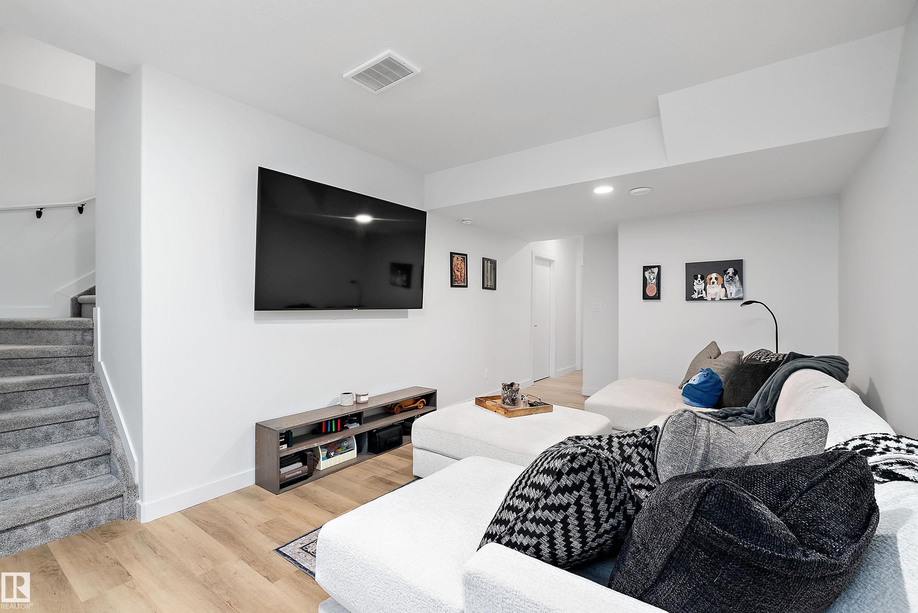 WOW! PICTURE PERFECT, just LIKE NEW & all the work is done, just move in and enjoy this lovely 1618 sq. ft. 2 storey with 9' CEILINGS on all 3 levels, a main floor den, a BEAUTIFULLY DEVELOPED BASEMENT, large deck with privacy wall, LOW MAINTENANCE LANDSCAPE & CENTRAL AIR! CAMBRIAN, Strathcona County's newest neighborhood is just minutes from all the amenities Sherwood Park has to offer! Built by ART HOMES with ATTENTION TO DETAIL, featuring a LINEAR FIREPLACE on the FEATURE WALL, glass wall into the office & gorgeous CONTEMPORARY ISLAND KITCHEN with cabinets to the ceiling, UPGRADED STAINLESS APPLIANCES, RICH QUARTZ COUNTERS, plus a generous dining area, all this with a WIDE MODERN LUXURY VINYL PLANK FLOORING! Up the stairs to a loft space, laundry, 2 lovely bedrooms, a 4pc. bath & GRACIOUS PRIMARY with walk in closet & CUSTOM SHOWER in the ensuite! Perfect basement built by the builder features family room, 4 pc., & guest room! Great deck with PRIVACY WALL, storage, TURF & DOUBLE GARAGE! It's perfect!