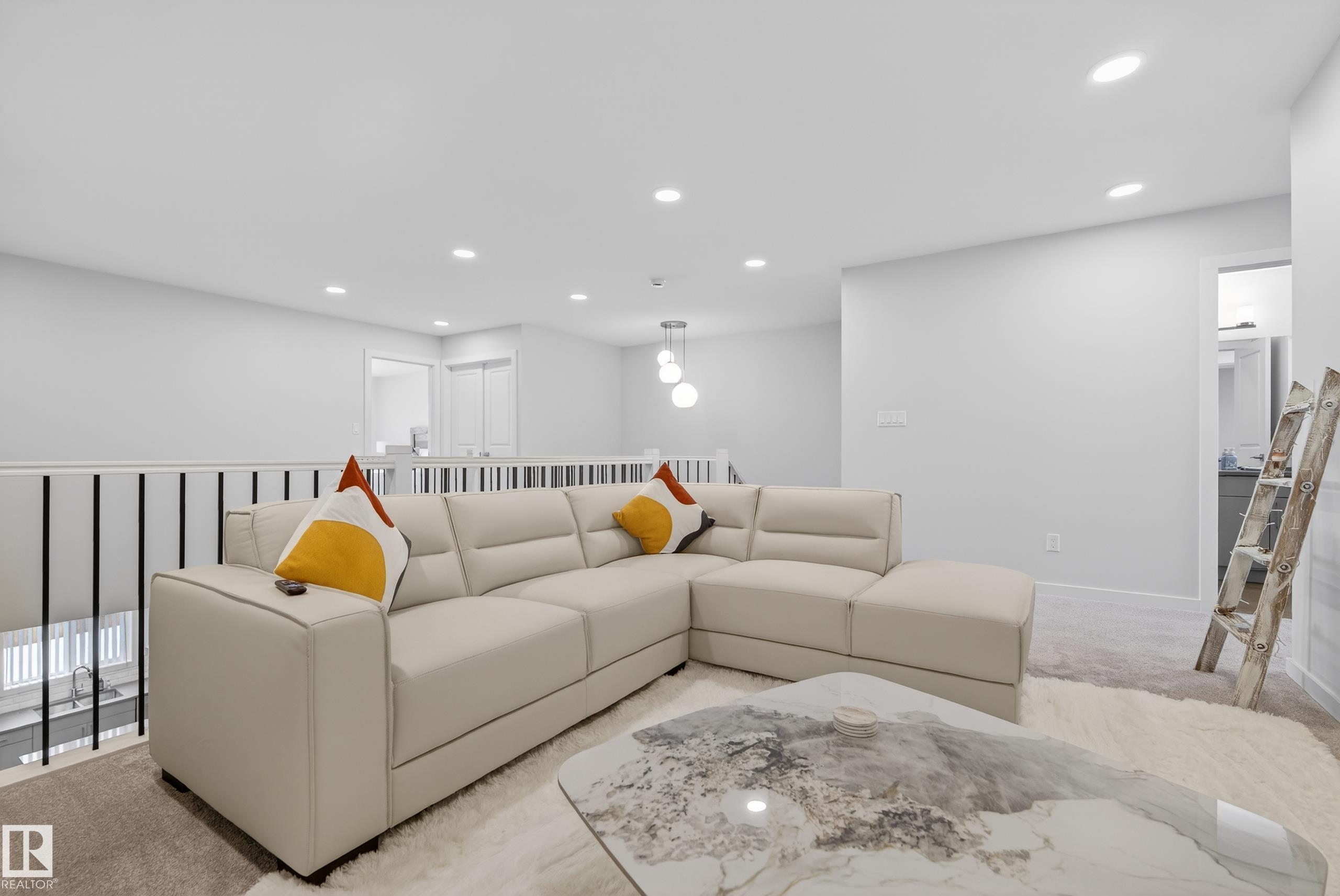 Welcome to Cambrian -- Sherwood Park's newest neighbourhood. Why wait to build when you can move right in? This brand new, turn-key home offers all the benefits of new construction without the timelines or decisions that come with building. The open-concept main floor is anchored by a striking open-to-below living room, creating a bright and open atmosphere. The kitchen features stainless steel appliances, a large island, and a corner walk-in pantry offering excellent storage. Upstairs, a spacious bonus room provides additional living space, along with 4 bedrooms and 3.5 bathrooms throughout the home. The primary suite includes a walk-in closet and a well-appointed 5-piece ensuite. The fully finished basement adds even more versatility with a large rec room, an additional bedroom, and a full bathroom. Outside, the south-facing yard is fully landscaped and ready to enjoy from day one. A rare opportunity to own a move-in-ready home in Cambrian.